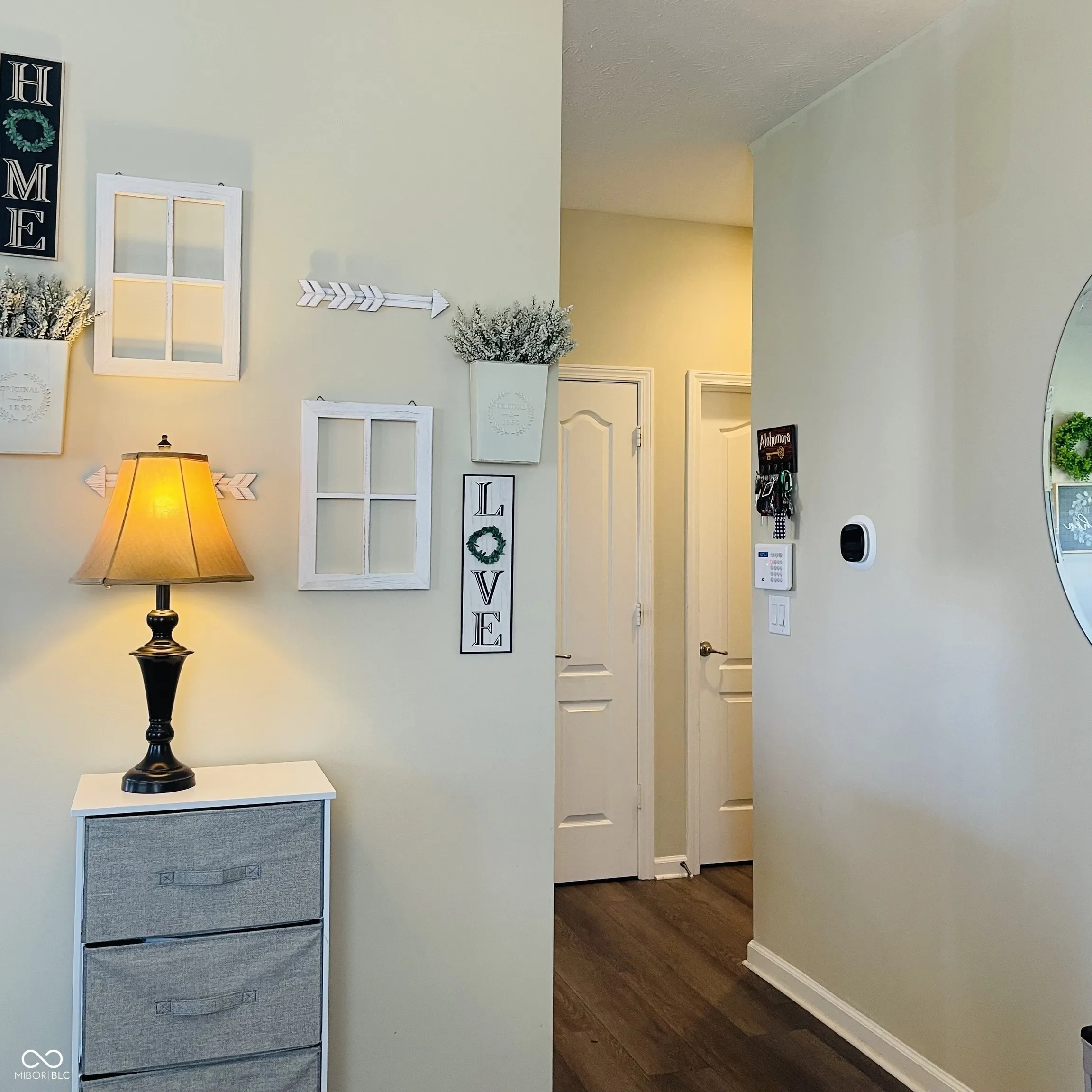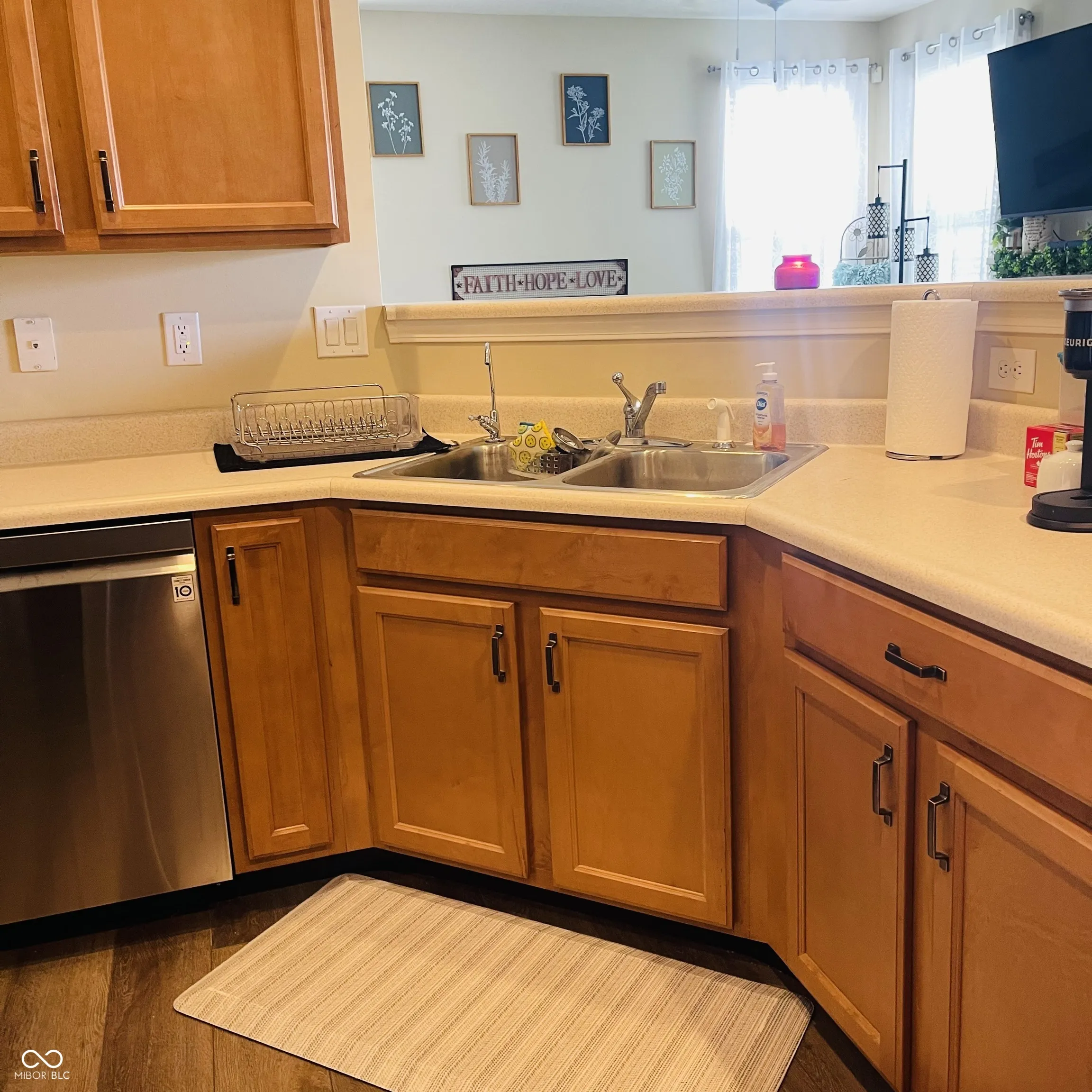 Come see this beautiful, well maintained condo nestled on a corner lot with gorgeous pond view! Meadows of Bainbridge offers a great location within walking distance of popular restaurants and shops. Living seconds from I-65 will make your morning commute a breeze! This home features a finished garage with Safe Racks for extra storage. Enjoy the comfort of a cozy fireplace in the great room, upstairs laundry for added convenience, a spacious loft area and generously sized kitchen complete with ample storage, a pantry and breakfast bar. This lovely home has had several upgrades in the past 5 years including new plush high grade carpet (2024), new dual tank Aqua Systems water softener (2024), luxury vinyl plank flooring throughout lower level and all bathrooms (2021) and new water heater (2021). Enjoy deliciously clean water with your own reverse osmosis tap in your kitchen! All appliances stay with the home and include newly replaced stainless steel french door GE refrigerator with LED lighting and ice maker and slide out freezer door (2022), LG Quadwash dishwasher (2022) and LG Mega Capacity Top Load Washer and Ultra Large Capacity Electric Dryer with Easy Load Door (2023). The expansive master suite offers cathedral ceilings, a walk-in closet, and a luxurious en-suite bath with dual sinks and a brand new tiled shower. A spacious loft area provides the perfect spot for a playroom, home office, or a second living room. Outdoors, unwind on the charming wrap-around covered front porch or entertain guests on the open patio overlooking a large backyard with tranquil waterfront views. A must-see property! Motivated Seller. Schedule your showing today!