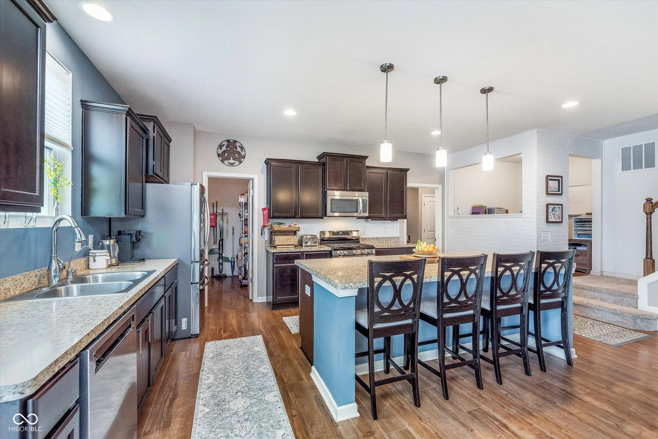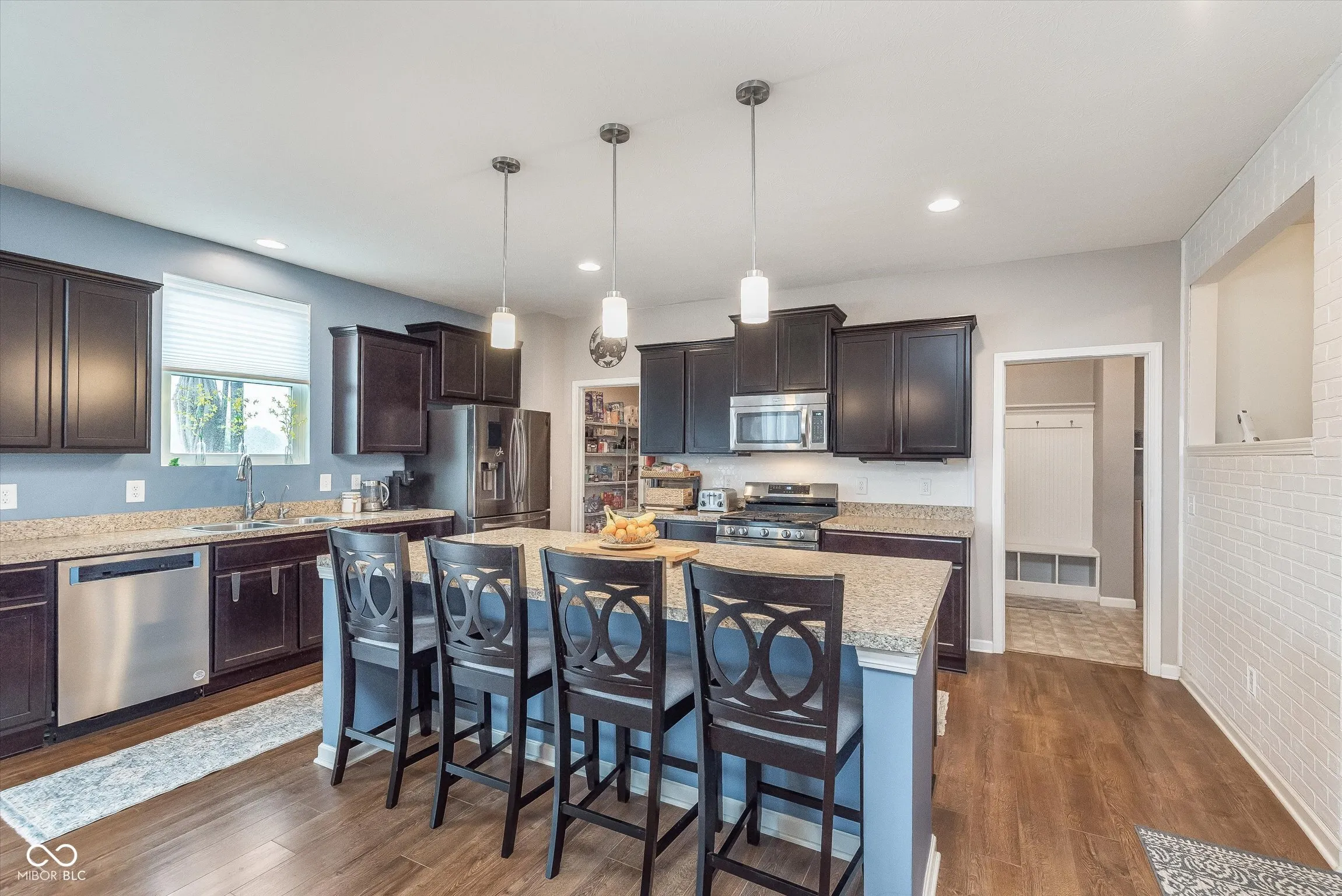 Beautifully updated & lovingly cared for 4BR, 2.5BA home combines modern style with everyday comfort! From the inviting covered front porch to the thoughtful interior design, this home offers space, light & function. Step inside to 10′ ceilings & durable wood laminate floors throughout the main level. Off the foyer, a flex space works great as an Office or potential guest room. The sunlit Great Rm features built-ins & flows seamlessly into the gourmet Kitchen-massive island w/ breakfast bar, abundant cabinetry, SS appliances, gas range & large walk-in pantry. Adjacent breakfast area opens to an oversized patio & fully privacy-fenced backyard with backyard privacy trees (2024) & no neighbors behind you-ideal for entertaining! Mudroom w/ built-in bench & cubbies keeps life organized, plus enjoy the signature Pulte planning center for homework or projects. Upstairs, a spacious loft offers added living space, while the primary suite feels like a private retreat-dual vanities, spa-like tiled shower & huge walk-in closet. 3 add’l BRs, full BA & convenient upstairs laundry complete the 2nd level. Oversized 2-car garage + 3rd bay storage space for all your extras. Prime location-mins to Brownsburg shopping/dining plus Eagle Creek Park & Golf Club & incr.edible Brownsburg Schools. Major updates: Water heater & RO water filter (2021), fridge & gas range (2022), high-eff furnace/AC with transferable warranty & air purifier (2023), exterior paint (2023), DW (2024), new main level carpet (2025).