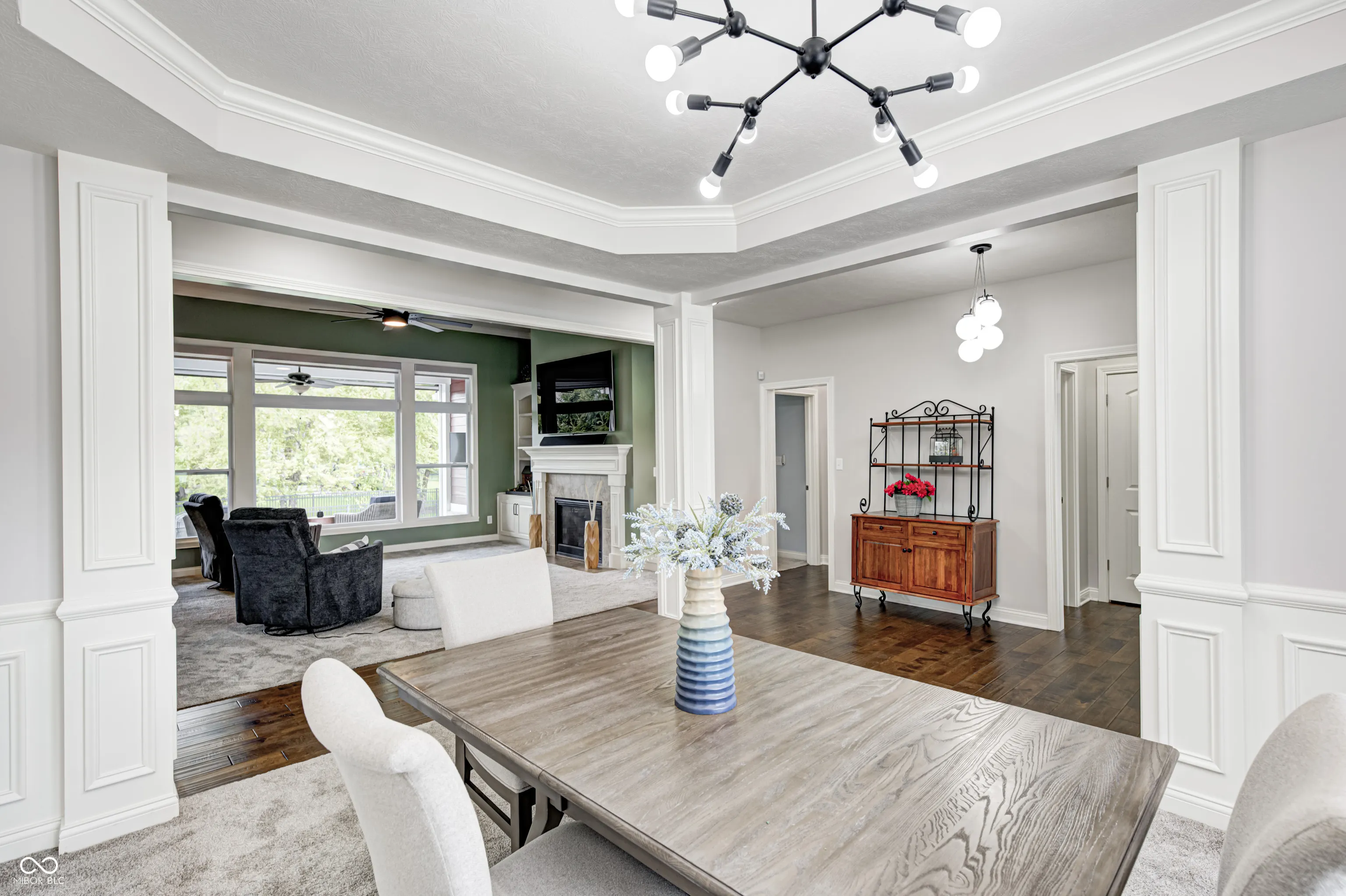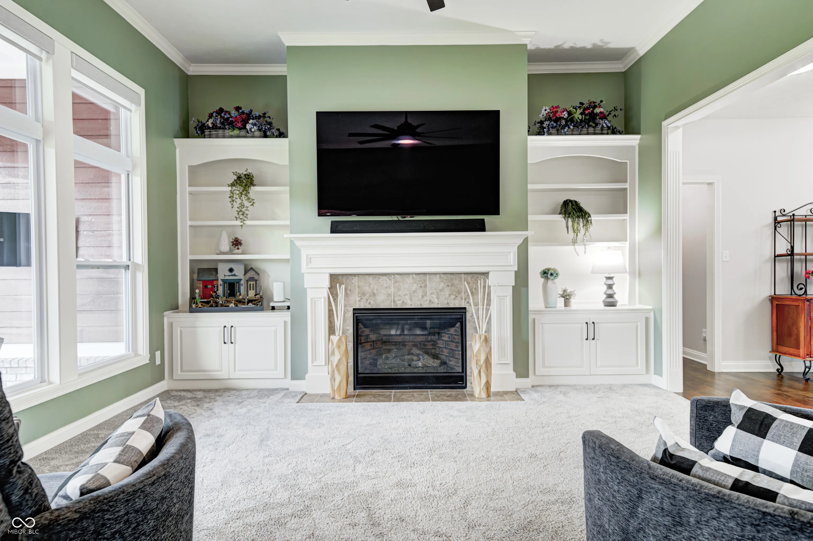 Stunning ranch home with finished basement on a quiet cul-de-sac in Park Place at Sagamore! The great room features a gas fireplace, built-ins, and a wall of windows. The spacious kitchen includes a center island, granite countertops, tiled backsplash, and stainless steel appliances. Enjoy a large breakfast room and formal dining. The primary suite offers a sitting room, custom tiled shower with dual showerheads, double sinks, and a walk-in closet connected to the laundry room. Relax on the covered back porch with mounted TV and retractable screens. Large patio, fully fenced yard, and extra basement storage. Crown molding, wainscoting, and hardwood floors throughout. Optional Sagamore Golf Club membership!