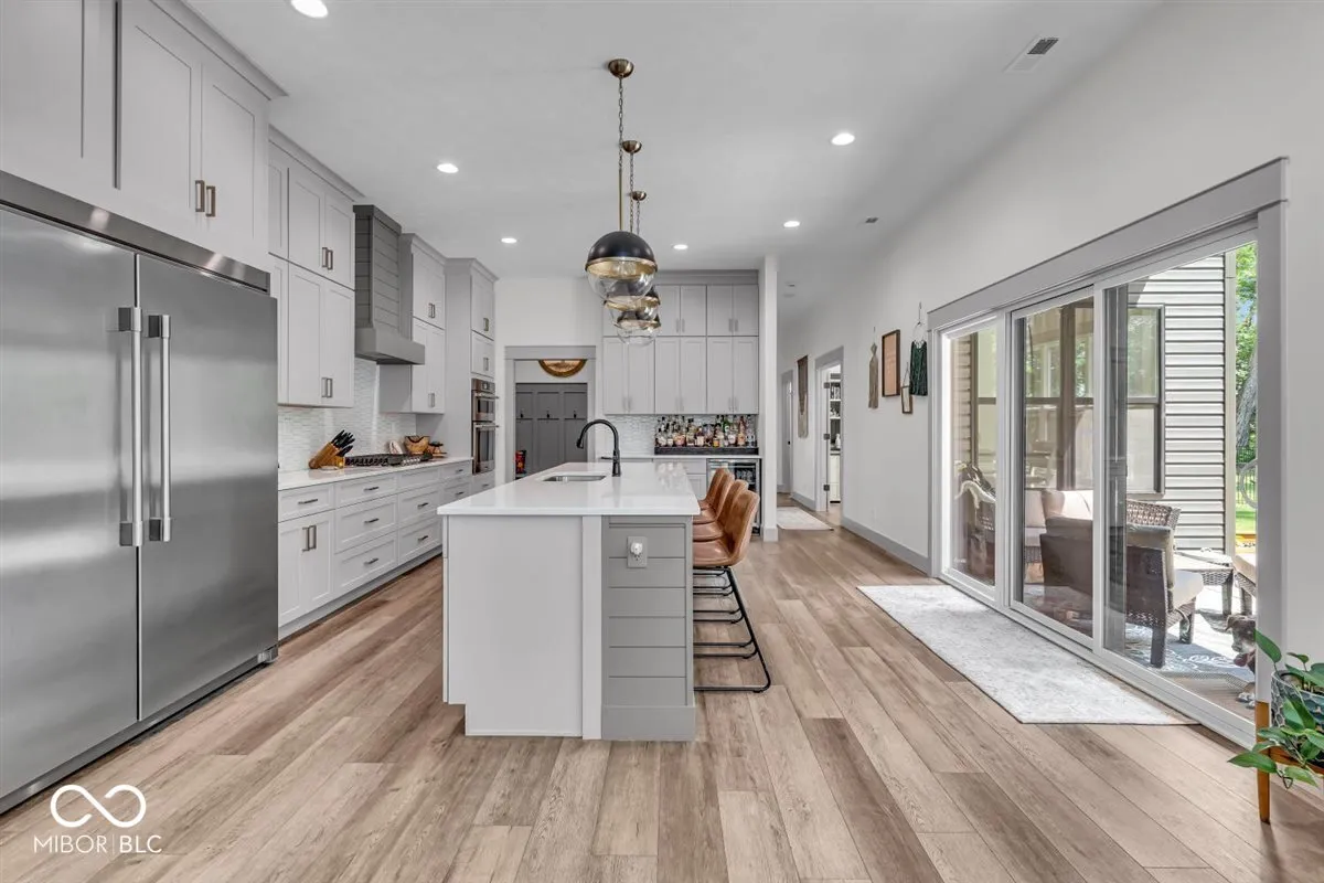 Experience elevated living in this stunning West Lafayette home located in the coveted Arbor Chase neighborhood. 4072 Westmoreland Drive perfectly blends sophisticated style with premium quality. Enter into the expansive great room where soaring ceilings, walls of windows, dramatic modern lighting, and a floor-to-ceiling tiled fireplace create a striking first impression. The chef’s kitchen is designed for both form and function, featuring a 10-foot island, soft-close cabinetry, built-in oven and microwave, oversized refrigerator and freezer, a 5-burner gas cooktop, beverage fridge, and a spacious butler’s pantry. The main level offers flexibility with two generously sized bedrooms or home offices, including a den enhanced with glass doors and elegant wainscoting. A sleek, contemporary staircase leads to a serene primary suite boasting an 8-foot walk-in tiled shower, freestanding soaking tub, and a custom walk-in closet with built-ins. An additional upstairs en suite bedroom ensures comfort and privacy for guests or family. Step outside to your private, tree-lined backyard with dual patios-perfect for entertaining or relaxing. Professionally landscaped with an irrigation system and new privacy fence, this outdoor space is both low-maintenance and serene on one of Arbor Chase’s BEST LOTS! Come discover the exceptional details and refined finishes that set this home apart – inside and out.