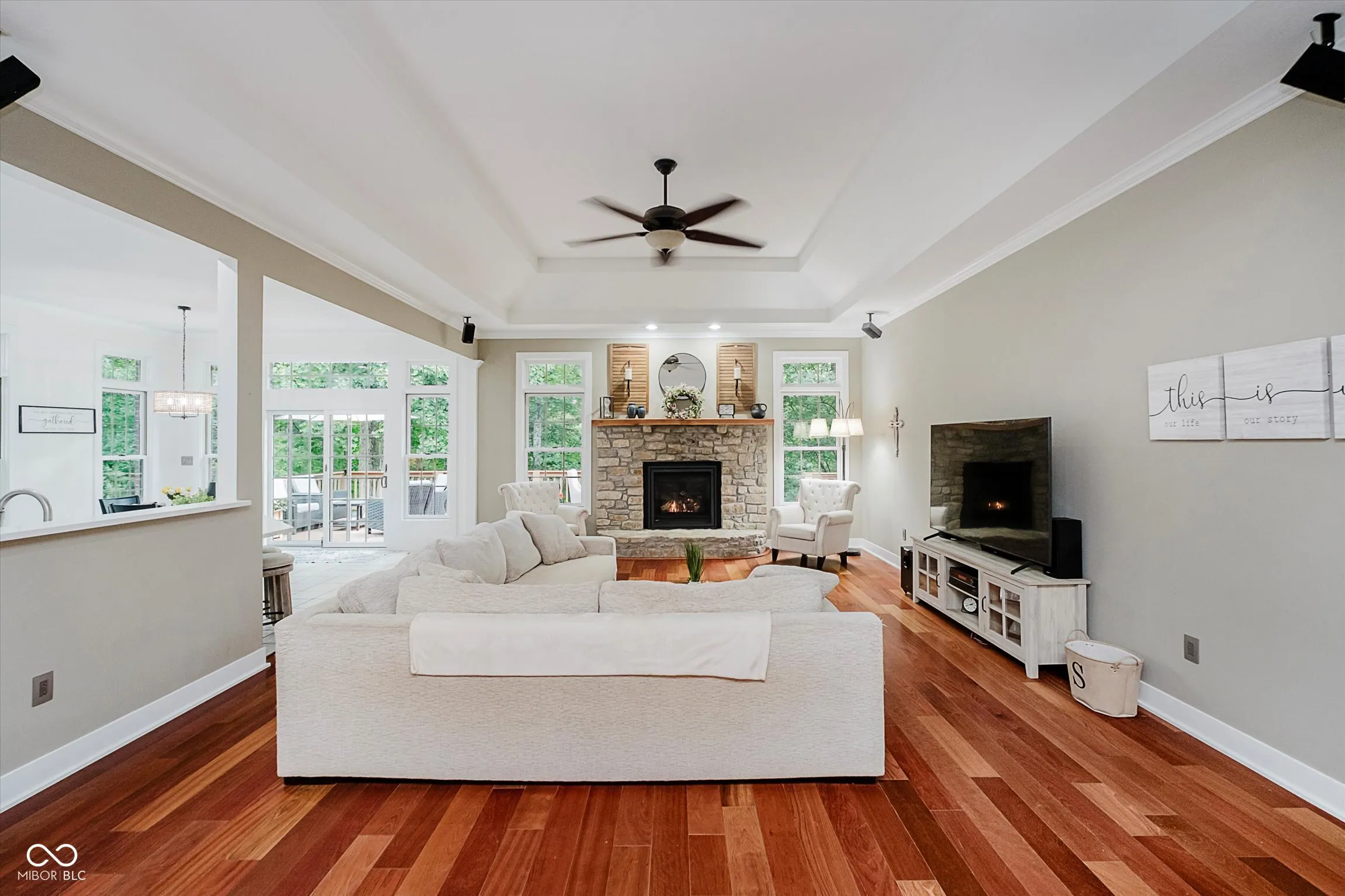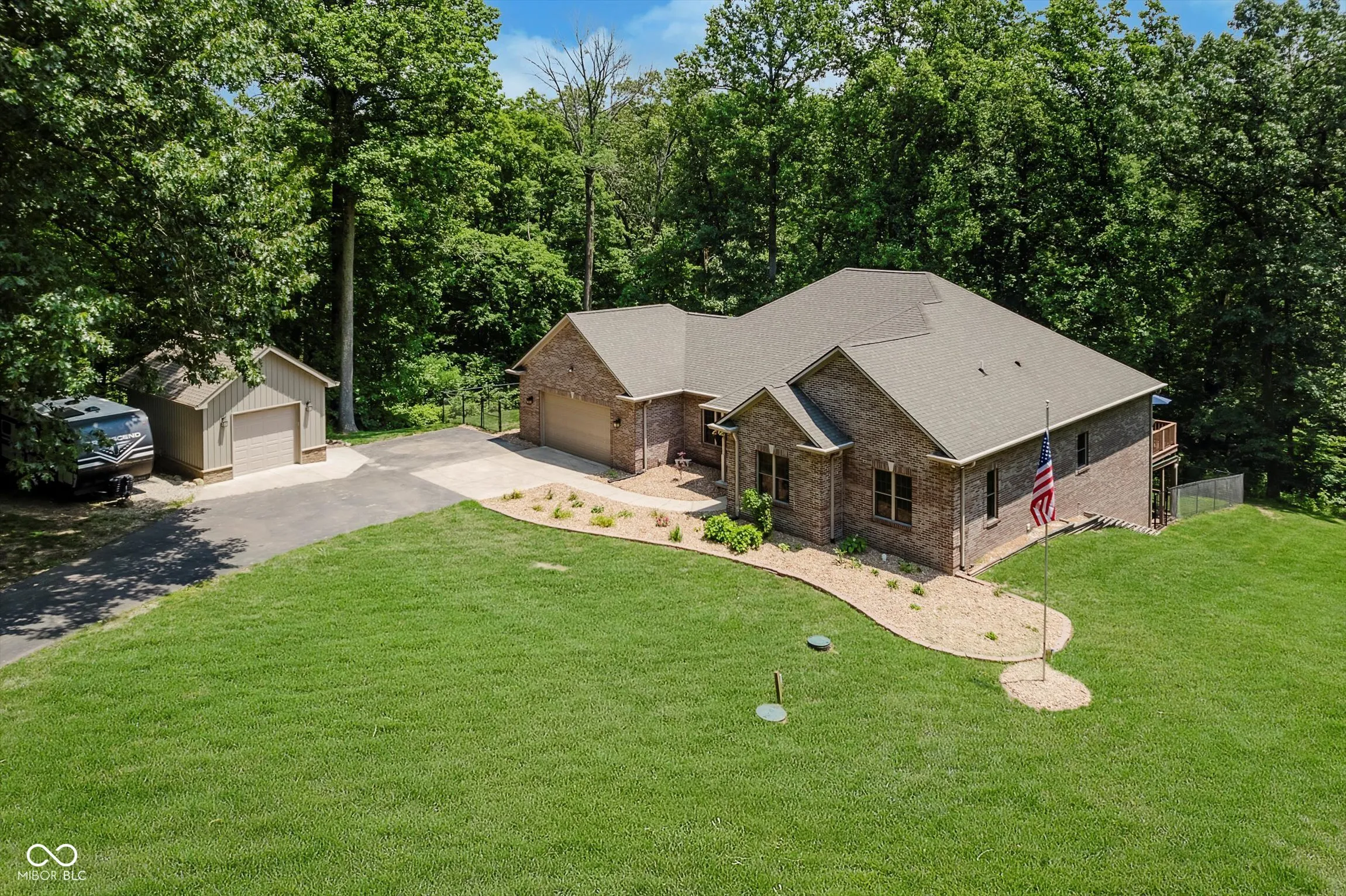 Tucked away on 11.25 wooded acres in Martinsville, this beautifully updated all-brick home offers the perfect blend of privacy, space, and modern comfort. With over 4,000 square feet, the home features 4 bedrooms, 2 full and 2 half bathrooms, a finished walkout basement, and full-length decks on both levels to enjoy the peaceful surroundings. Recent updates include a new furnace, heat pump, water softener, appliances, and sleek quartz countertops in the kitchen and baths. The remodeled primary bathroom boasts a walk-in rain shower, and the detached garage comes equipped with a 30 Amp RV hookup. If you’re looking for a private retreat with room to spread out, entertain, and enjoy nature – this is it.