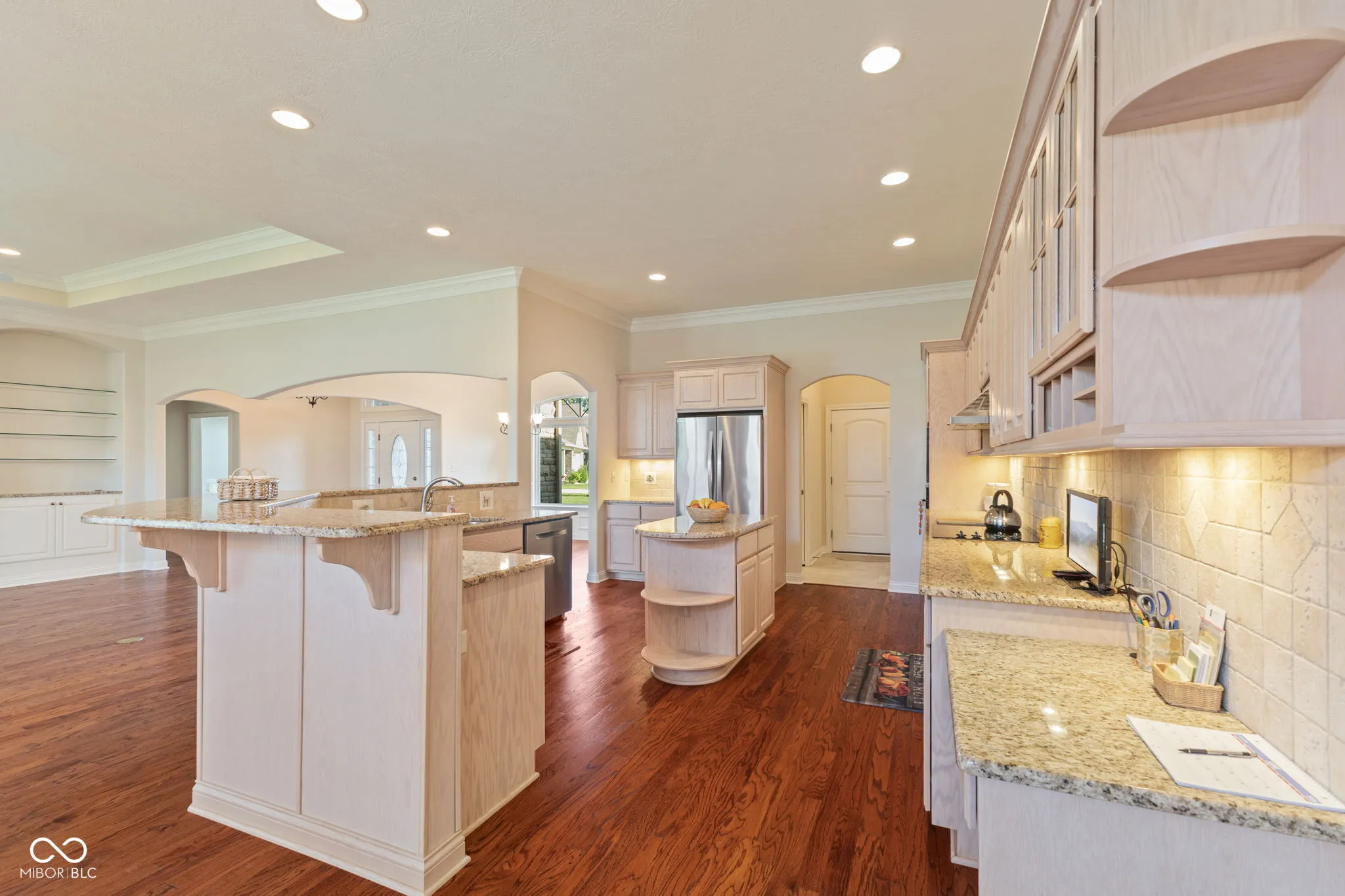 This Larry Good home is an INCREDIBLE opportunity! A custom design with all the finishing touches: Ceiling treatments include raised and tray ceilings that only enhance the trim package throughout the home. An abundance of natural light through the Pella windows highlighting the engineered hardwood flooring in the living areas. Amish cabinets in the kitchen with more cabinets than you can imagine in addition to a HUGE walk-in pantry (7’x6′) with custom adjustable shelving. The stone fireplace in the great room with a raised hearth and flanked by built-ins on each side. The primary suite opens through double glass paneled doors from the sunroom and is astounding. A HUGE Glassed Shower and a wonderful Corner Soaker Tub are yours to enjoy. The closets (custom designed by Innovative of Carmel) will make your heart soar. That’s the thing about this home it gives you — the feeling of peace and tranquility. There’s always more * Finished garage that is 24×24 and is pristine. You’ll love the location at the end of the cul-de-sac.