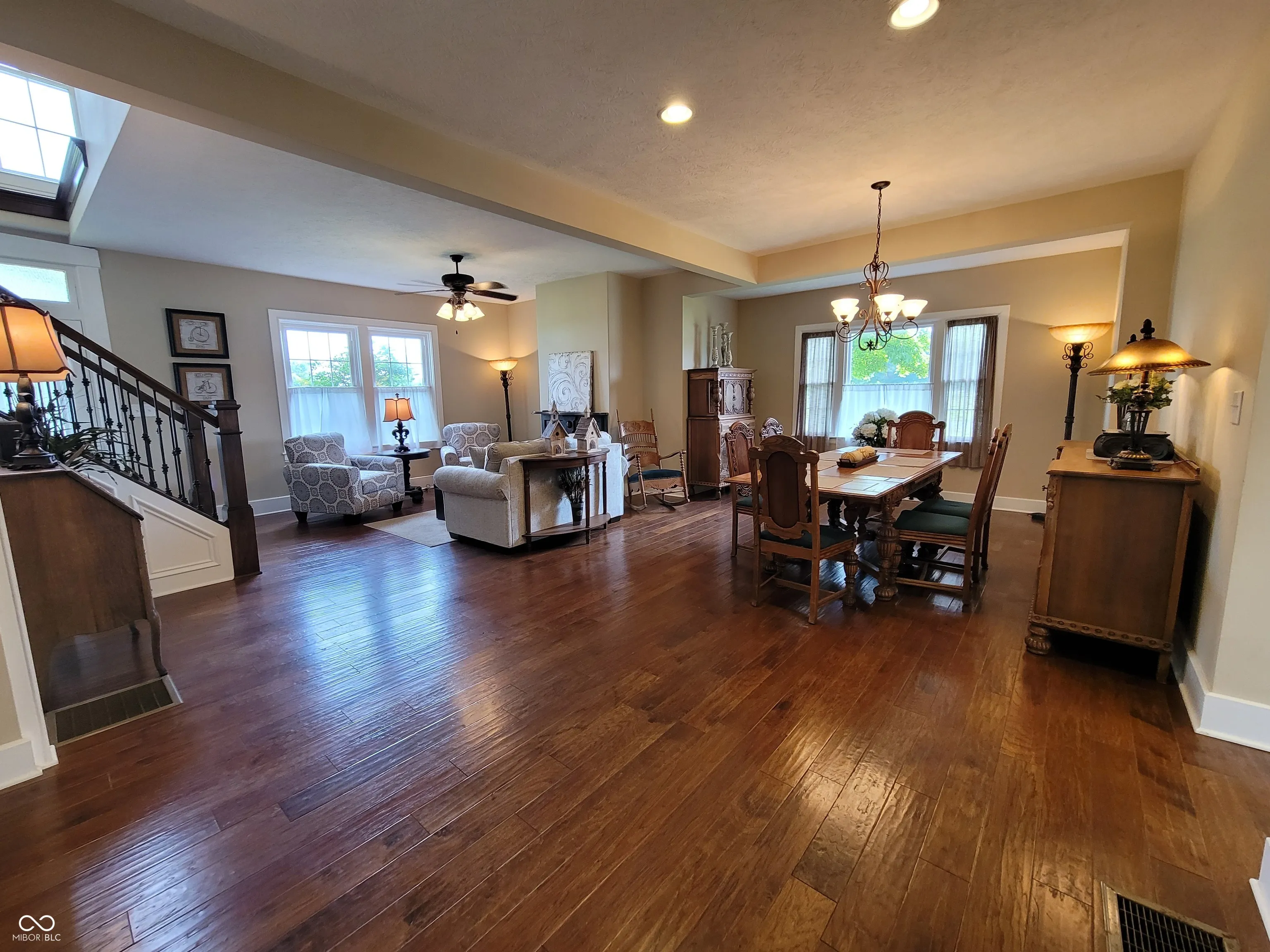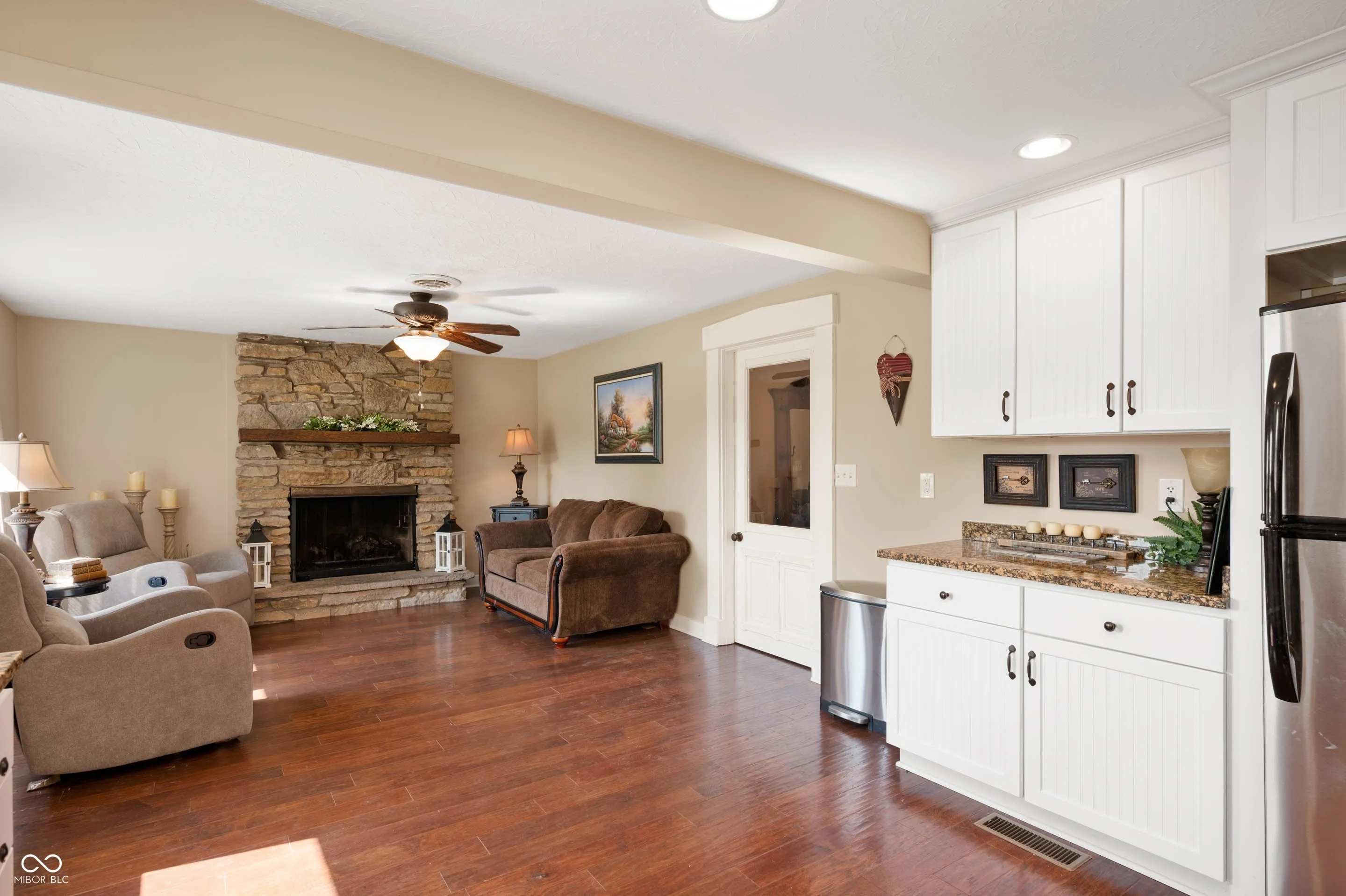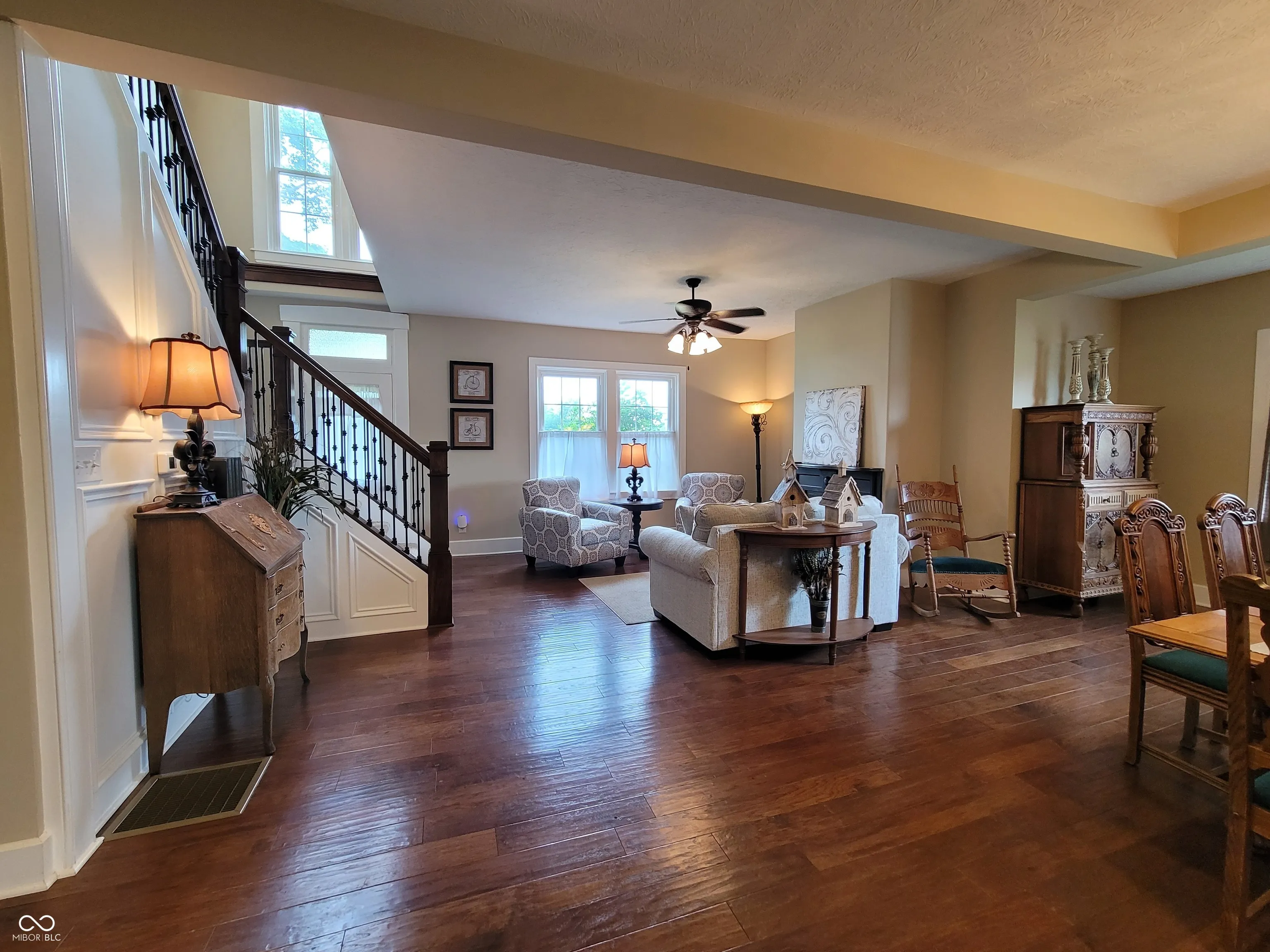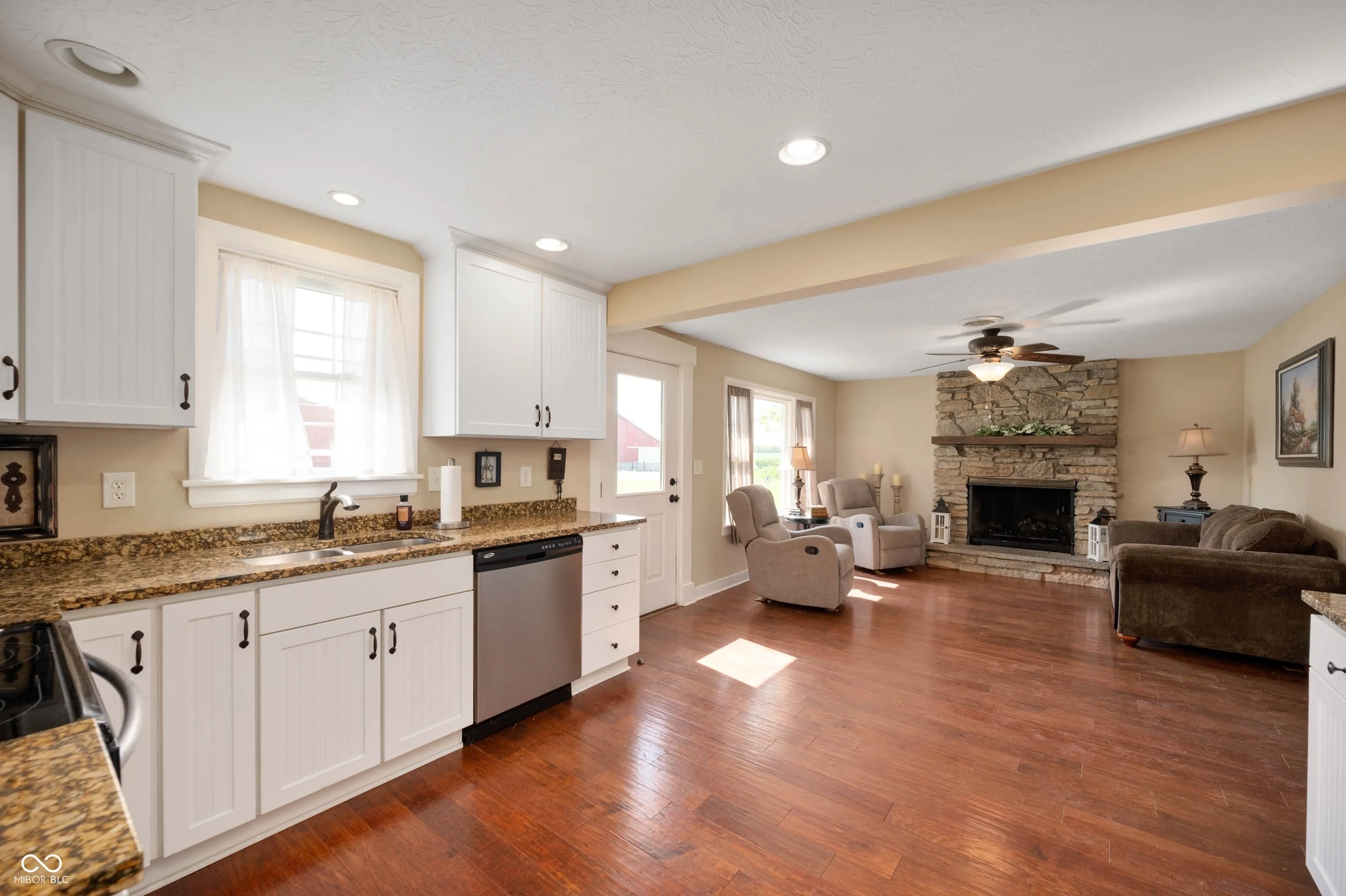 Historic 105.12-Acre Farm with Income and Venue Potential Discover a rare opportunity to own a 105.12-acre working farm nestled in a quiet, serene setting bordered by a neighboring tree farm. This unique property features 96 tillable acres, 5 grain bins, two barns, and a beautifully restored 1865 Civil War-era farmhouse. It combines timeless character with modern updates and offers strong annual income through tillable acreage and grain bin rental income. The fully furnished farmhouse includes carefully selected antiques and preserved architectural details such as original refinished shutters, transom-topped doorways, trim, and restored bed headboards. The main level features hardwood floors, a cozy family room with gas fireplace, new kitchen with granite countertops, stainless steel appliances, a cabinet pantry, mudroom, and a great room combining living and dining areas with a built-in hutch for formal silver and glassware. A grand open staircase with lush carpeting leads upstairs. The home includes two fully updated bathrooms and a main-level primary suite with a sitting room and adjacent laundry. Modern upgrades include new electrical and plumbing systems, new windows, original steel fireplace surround and mantel, and an HVAC system installed in 2018. Exterior improvements feature new Hardy Plank siding, architectural shingles, a private pavered patio, and an oversized garage with workbench. The basement has a new poured concrete floor and provides excellent storage and storm shelter functionality. New well was recently installed. Outbuildings include a large pole barn and an original timber-frame barn-both suitable for use as a wedding or event venue. Whether you’re seeking a peaceful country residence, productive farmland, or a unique venue space, this historic property delivers unmatched charm and potential. Tillable farm ground can be split from house, barns, & bins for a negotiated price. House, barns, and bins, can be sold separately. 45X90 Pole barn.