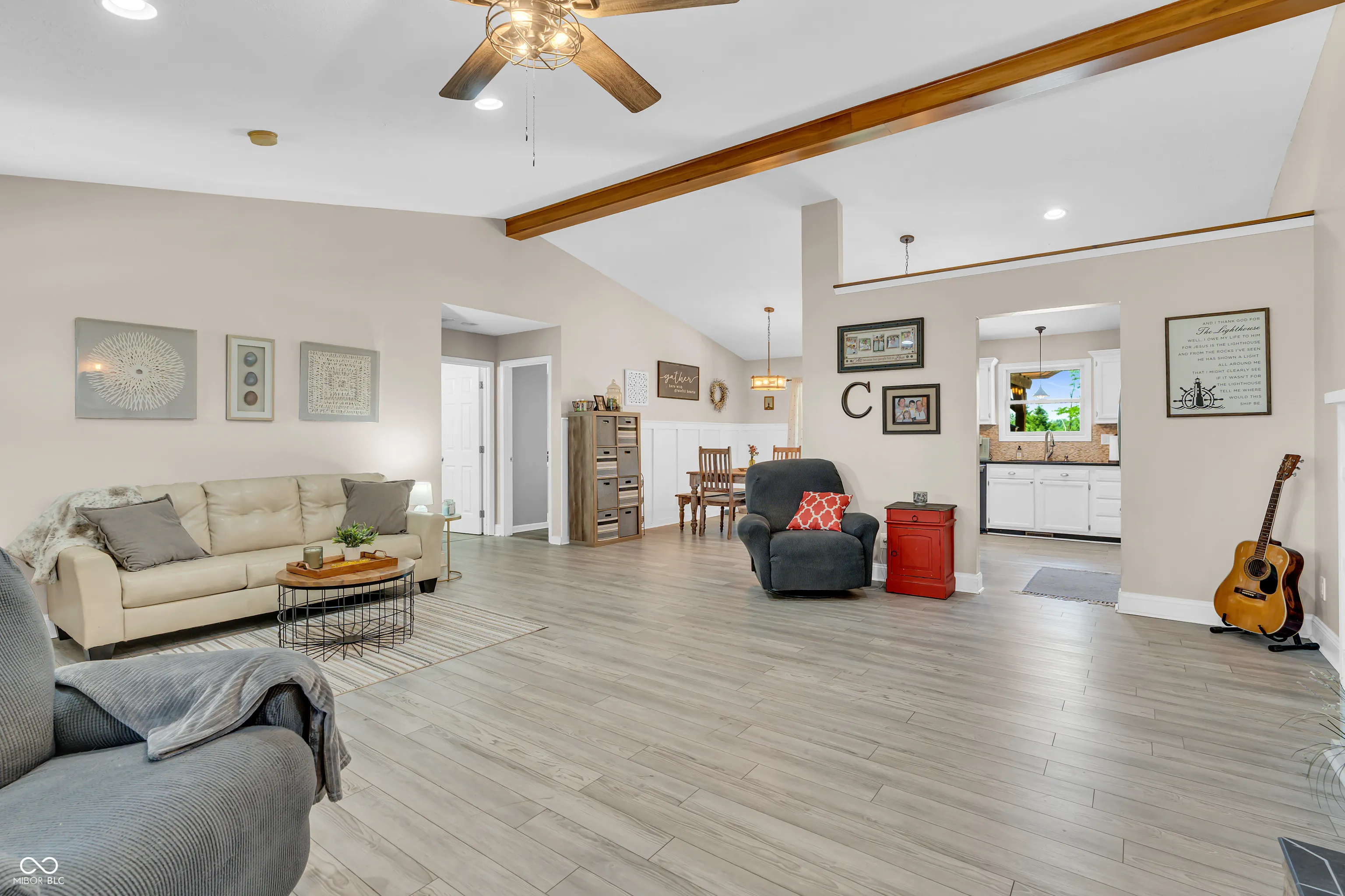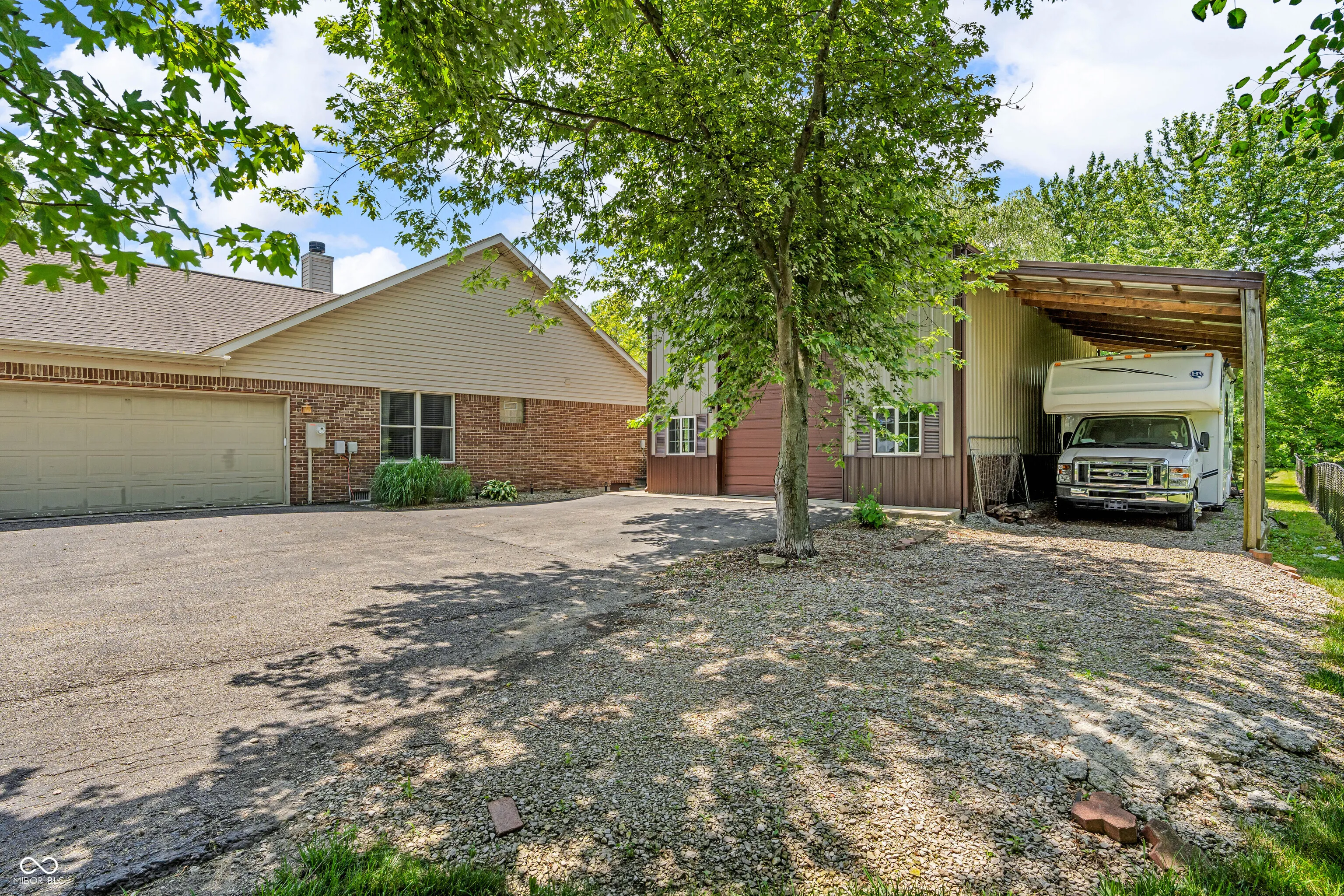 All brick ranch style home nestled on 1.16- acre lot with a country setting on a cul-de-sac for added privacy. This 3BR/2Full BA home sits on over an acre of land with everything you need for both relaxation and entertainment. Inside, you’ll find 1,858 square feet of open-concept living. The formal living room offers a warm and inviting atmosphere, featuring a wood burning stone fireplace (surrounded by built-in shelving) perfect for cozy evenings, while the beamed and vaulted ceilings add architectural interest and a sense of spaciousness. The kitchen is thoughtfully designed with black splash, sleek black metallic steel appliances, island, granite countertops, wainscoting, and plenty of space for cooking your favorite meals. Separate dining area-perfect for family dinners or game night. Retreat to your master suite w/private access to back deck, tray ceiling, crown molding, walk-in closet, double sinks & tub/shower combo. Beyond the interior, an outdoor dining area and pergola create an ideal setting for meals and gatherings. Relax and enjoy the hot tub on the deck, and if you like to host, you’ll love the 18 x 32 in-ground pool with an automatic cover. The 24 x 40 pole barn with concrete floor, propane heat, electricity, loft, bar, and a 40 x 12-foot lean-to for RV parking and hookup complete the reasons to call this home!
