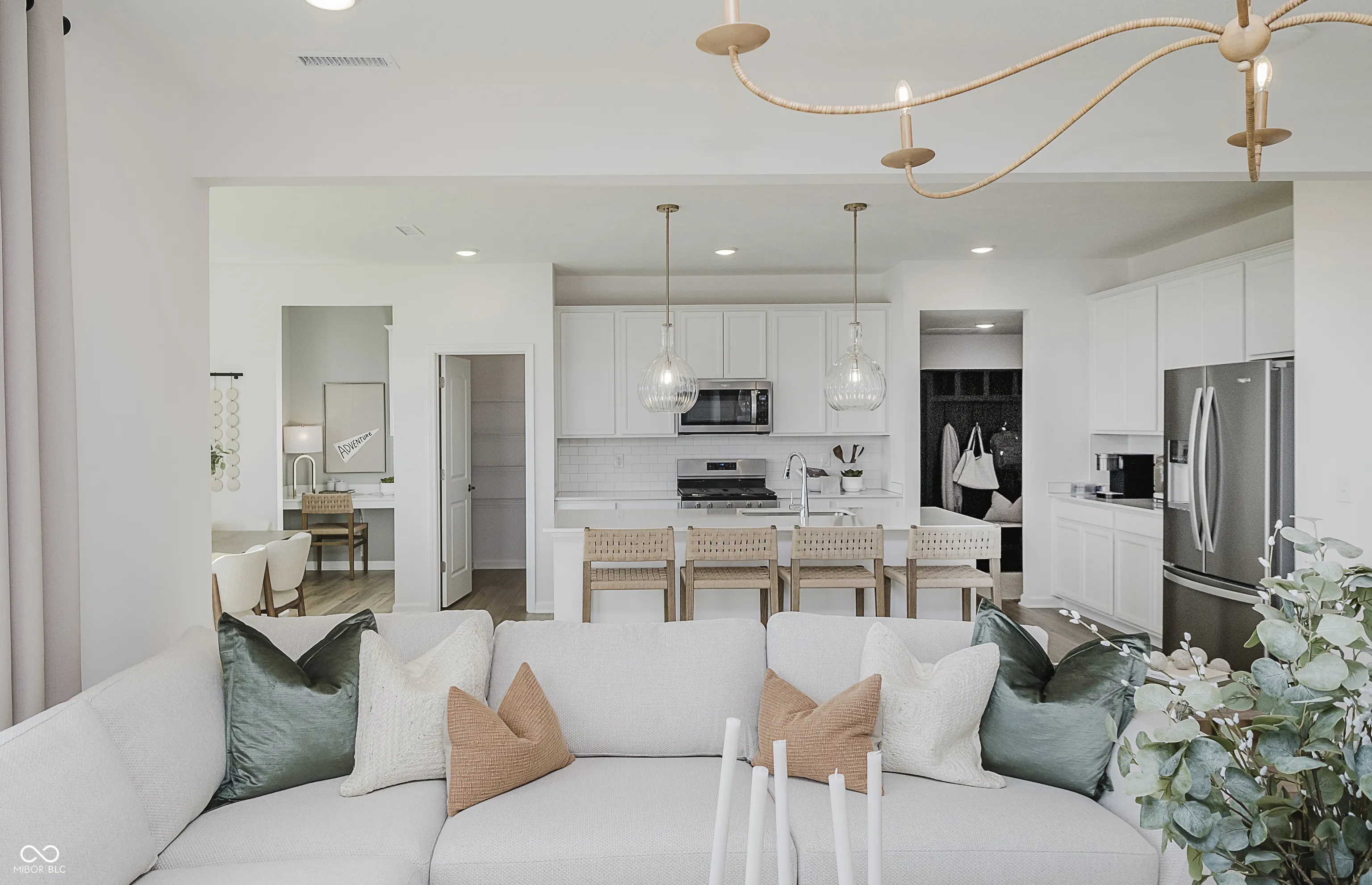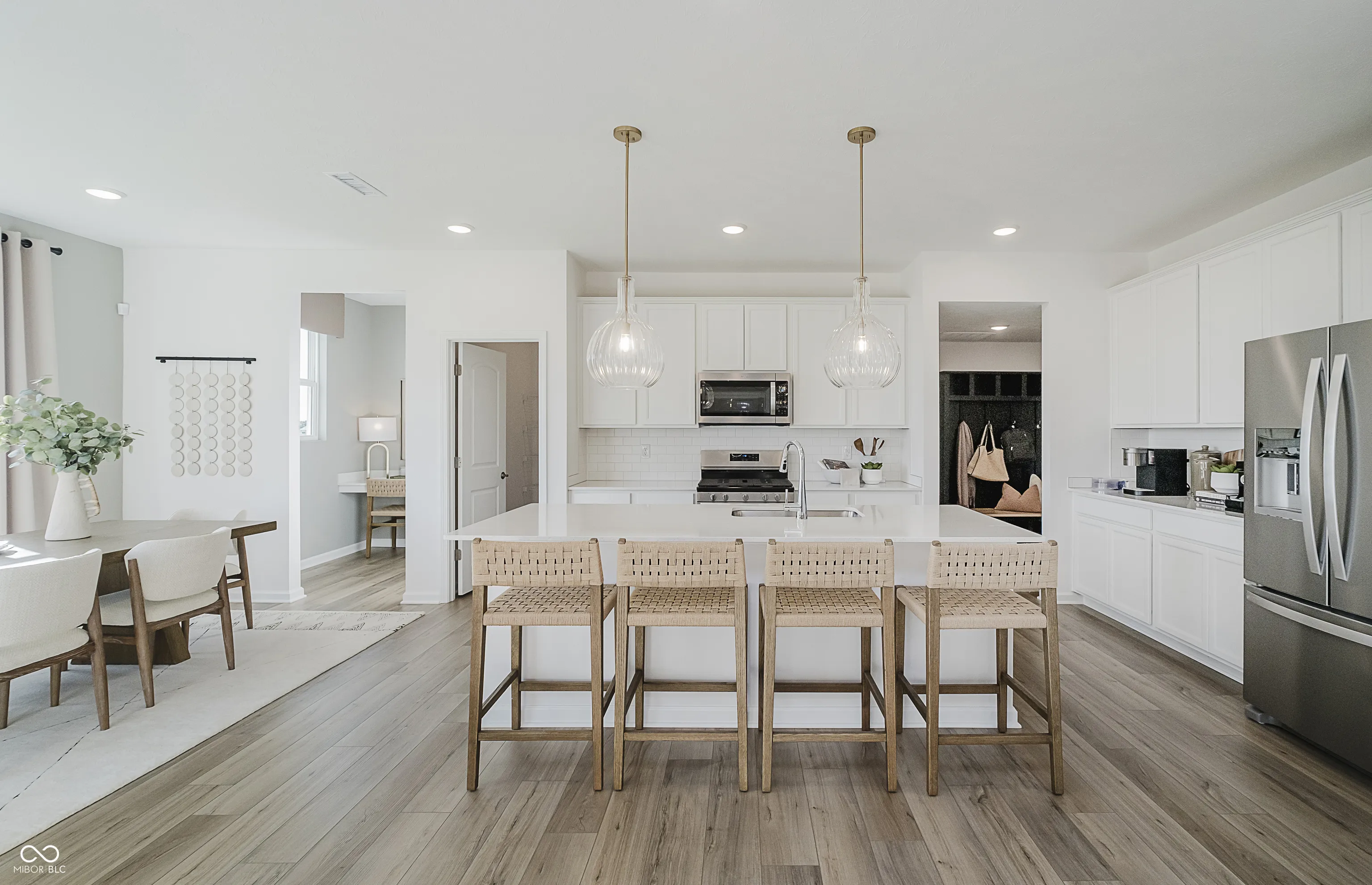Welcome to the Dakota Floorplan by Pulte Homes, nestled in the charming Parkside at Finch Creek Community. This thoughtfully designed home perfectly balances style and functionality. The heart of the home is a chef-inspired kitchen with white cabinetry, Sparkling White quartz countertops, stainless steel gas appliances, and a central layout that seamlessly flows into the cafe dining area and gathering room with fireplace. The main level also features a versatile flex room with doors, offering the perfect space for a home office, playroom, or cozy den. The Pulte Planning Center ensures effortless organization for a busy household. Upstairs, retreat to the luxurious owner’s suite, complete with a spa-inspired bath featuring a shower and an expansive walk-in closet. Three additional bedrooms provide ample space for family or guests, and an upstairs laundry room adds convenience to your daily routine. This home features a spacious three-car garage, providing ample room for vehicles and storage. Enjoy top-tier amenities, including a Community Clubhouse with an Expansive Covered Back Deck with Seating Areas, Community Pool, Half-Court Basketball, Two Pickleball Courts, Fully Equipped Fitness Center, Meeting Room Available for Reservation, Indoor Gathering Space Community Prep Kitchen, and an Outdoor Playground. Just minutes from I-69 and Hamilton Town Center, you’ll have easy access to shopping, dining, and entertainment. Experience the perfect balance of community charm and modern convenience at Parkside at Finch Creek.