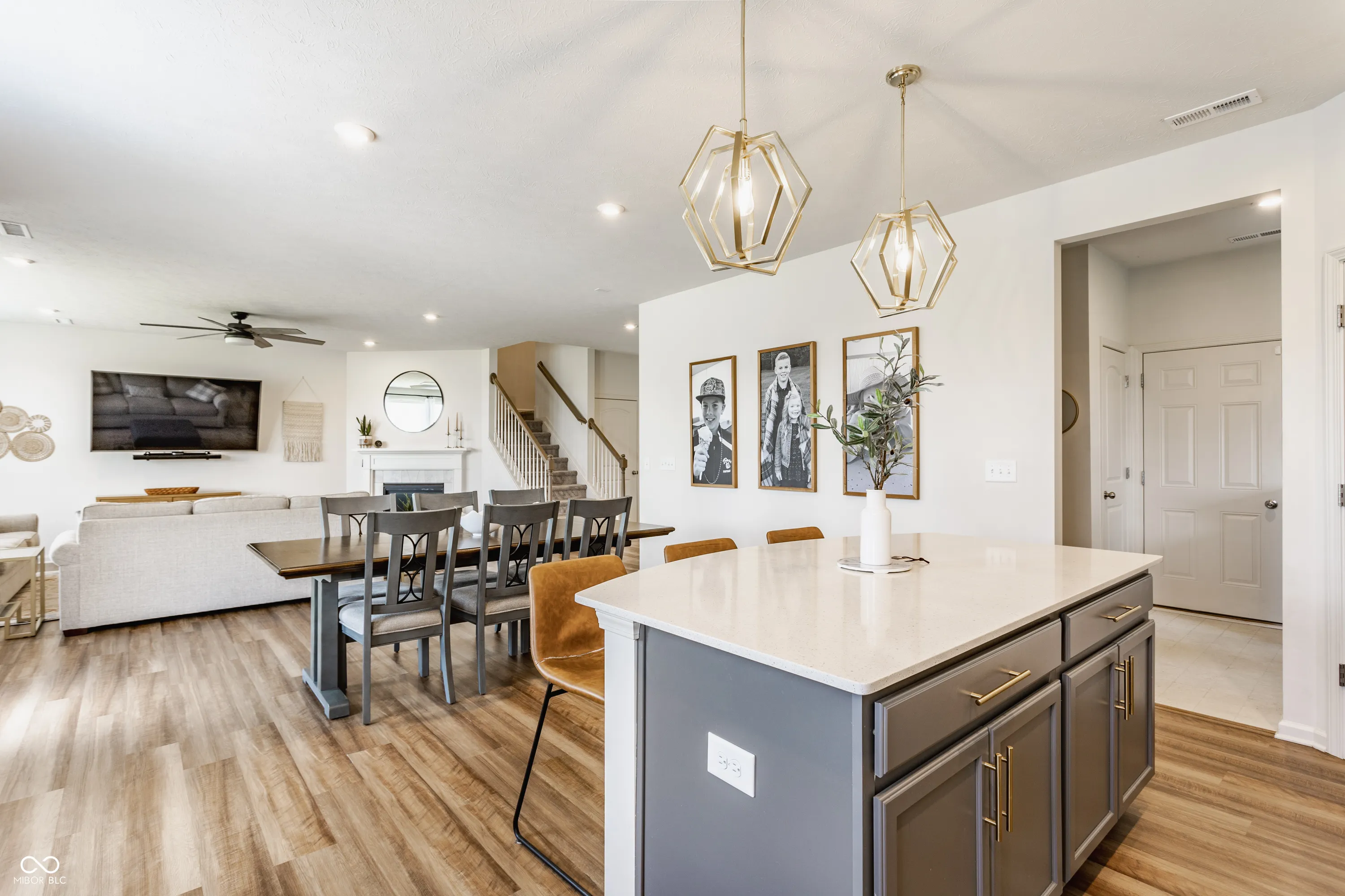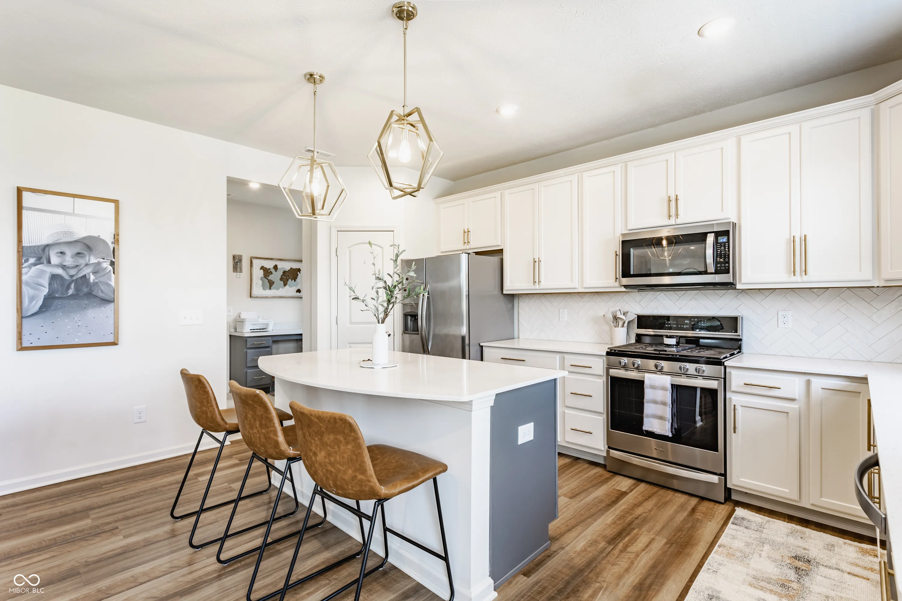 Experience refined living in this beautifully designed home that blends style, functionality, and comfort to enhance every lifestyle. From the moment the door opens, the open-concept main level welcomes with seamless flow and sophisticated finishes. The chef-inspired kitchen is a true showpiece, featuring sleek 42″ white cabinetry, white quartz countertops, a spacious central island, a walk-in pantry, and premium stainless steel appliances-perfect for entertaining or everyday dining. The kitchen flows effortlessly into the cafe dining area and inviting great room, creating a warm, open space ideal for hosting. An oversized patio extends the living space outdoors, thoughtfully designed for entertaining, dining al fresco, or enjoying peaceful evenings under the stars. A versatile main level flex space offers endless potential as an office, playroom, or additional living area. Everyday convenience is elevated by thoughtful additions like a planning center off the garage-ideal for staying organized or tackling homework. On the upper level, the luxurious owner’s suite serves as a private sanctuary with a spa-inspired bath featuring a double vanity with granite countertops, a frameless glass shower, and a generous walk-in closet. Two additional bedrooms-each with their own walk-in closet-offer ample space for family or guests. A bright, open loft provides the perfect setting for a media room, and a centrally located laundry room adds everyday ease. Set within the desirable Belle Arbor community, residents enjoy 28 acres of lush common areas with scenic walking trails, ponds, parks, and playgrounds that foster a vibrant, outdoor-oriented lifestyle. Conveniently located just minutes from shopping, dining, interstates, and more-all within top-rated Brownsburg Schools.