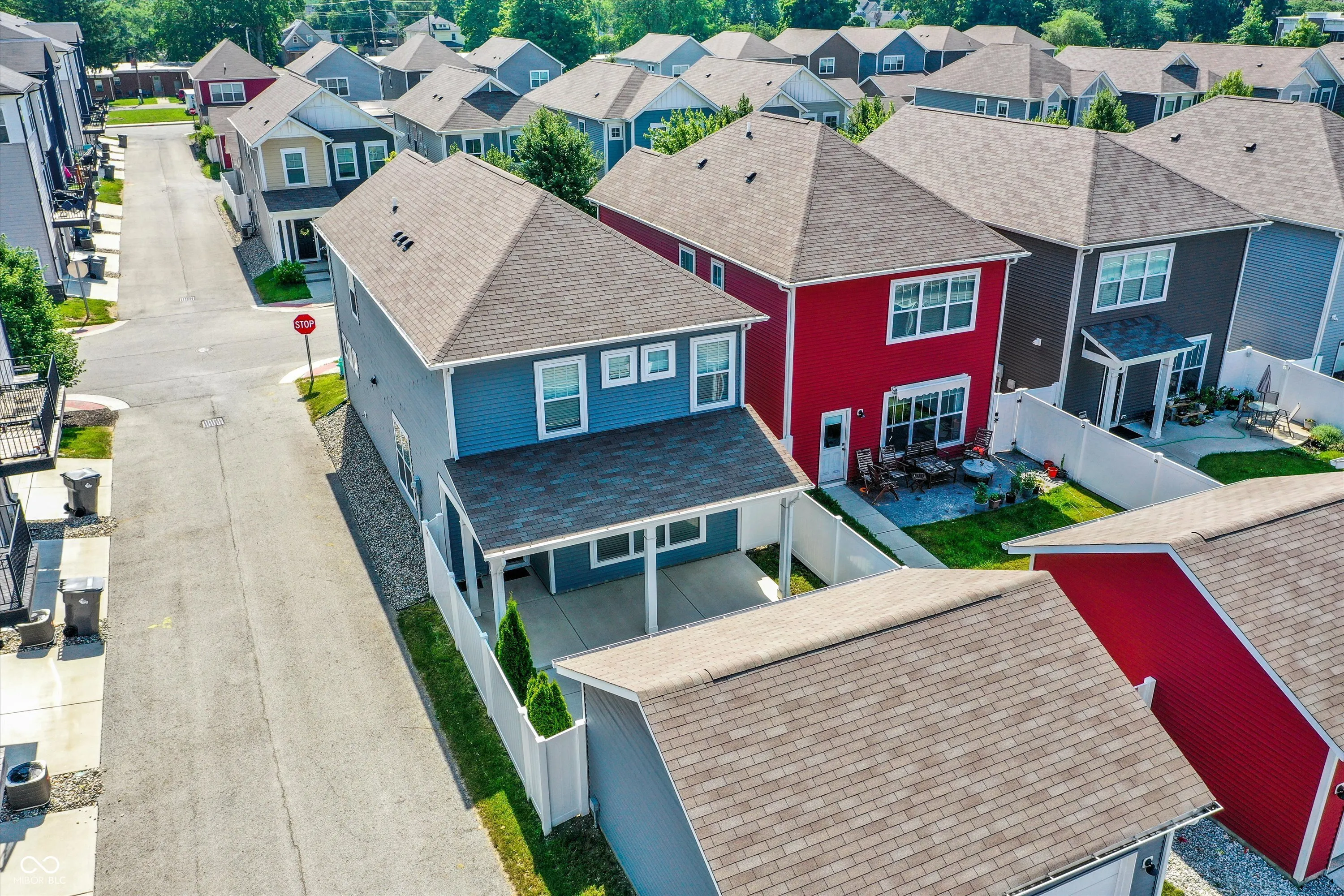 Looking for move-in ready, space and storage, and a convenient location all wrapped into one? This detached townhome on a corner lot in a tucked-away pocket of Indy’s near west side brings it all-close to downtown but away from the noise. Just minutes from the Zoo, Eli Lilly, downtown hospitals, IU Indy, and more! Inside, you’ll love the open-concept main floor with 10-foot ceilings and ample natural light pouring through windows decked out with custom faux wood blinds. The kitchen is a dream-cafe brand gas cooktop with griddle, quartz countertops, single basin sink with an upgraded faucet, matte black hardware, houndstooth backsplash, modern wallpaper in the dining area, double ovens, and a coffee bar with a wine fridge. Plus, every cabinet has a pull-out drawer for additional storage and organization. No carpet anywhere-just clean, easy-to-maintain flooring throughout. Shiplap under the island seating adds that extra cozy touch. You’ll also find a massive walk-in pantry, tons of storage in the bedrooms, halls, and even under the stairs. Upstairs, the spacious primary suite includes double sinks with full-wall penny tile backsplash and a tiled shower. Two more bedrooms, full bath, and laundry (washer & dryer stay!) round out the second floor. The fully fenced backyard offers privacy for grilling, relaxing, or letting pets roam, with easy access to the detached 2-car garage. Keyless locks on both front and back doors, Ecobee thermostat, and Ring cameras (indoor/outdoor/doorbell) are already set up for peace of mind. Bonus perks: upgraded lighting throughout, crown molding on cabinets, wood stairs with stained railings, and a half bath on the main floor. This one’s got all the modern charm, function, and location you’ve been looking for.