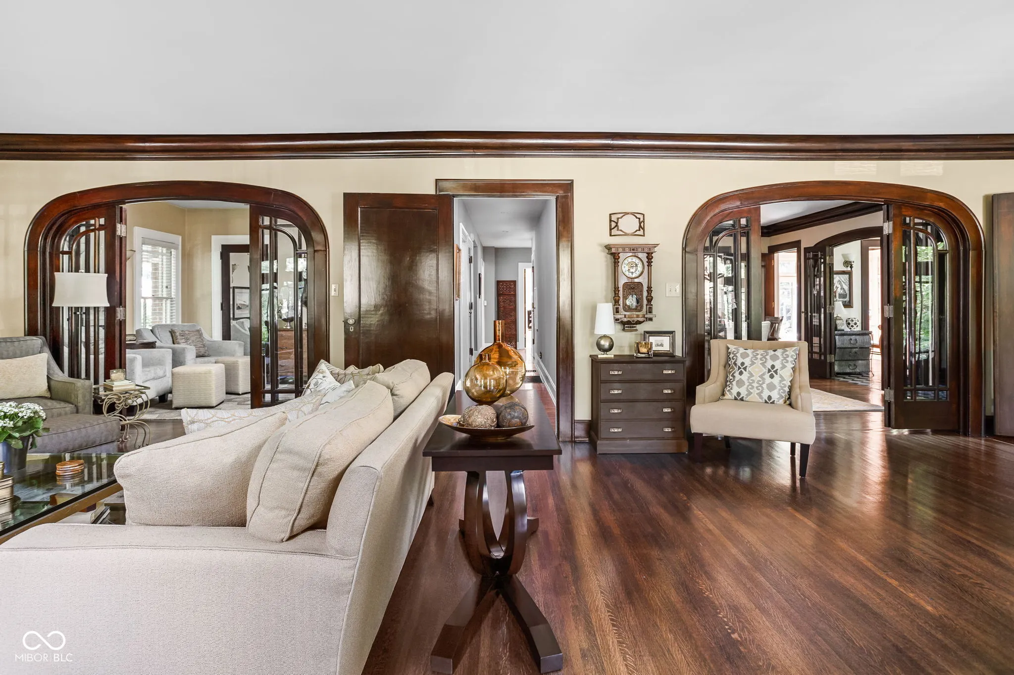 Nestled in historic Oliver Johnson’s Woods-a coveted neighborhood within Meridian-Kessler-this 1920 residence stands as a jewel among Indianapolis homes. That said, the home was originally built for a prominent local jeweler and the property reflects timeless craftsmanship and enduring elegance. From the moment you arrive, you’ll be greeted by landscaping that frames the home and a French tile roof which has been preserved, improved and renovated. Step inside and you will see the dramatic original woodwork, built-ins, French doors and molding. The multi-paned windows are as unique as they are beautiful. Renovations and upgrades have been undertaken on every level of the home. (full list is available) Three bedrooms, 2 full and 2 half baths all with custom lighting and other upgrades. The second level primary suite features raised ceilings, a marble bath, walk-in closet, window seat and ample sitting and reading areas. The classic porte-cochere allows for covered entry at the side. An ornamental pond, original to the home, adds a rare touch, offering both tranquility and a connection to the home’s past. With its blend of architectural heritage and refined outdoor features, this gem offers a remarkable opportunity to own a valuable piece of Indianapolis history.