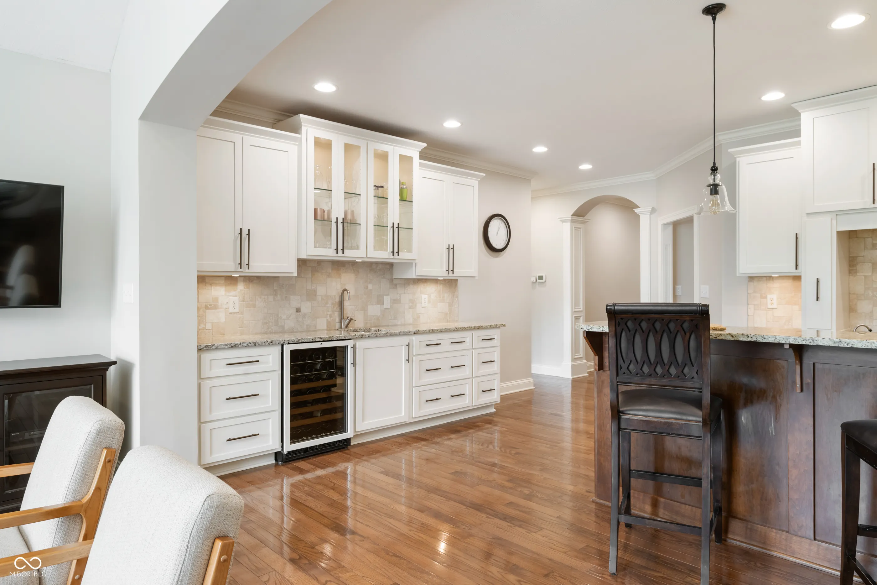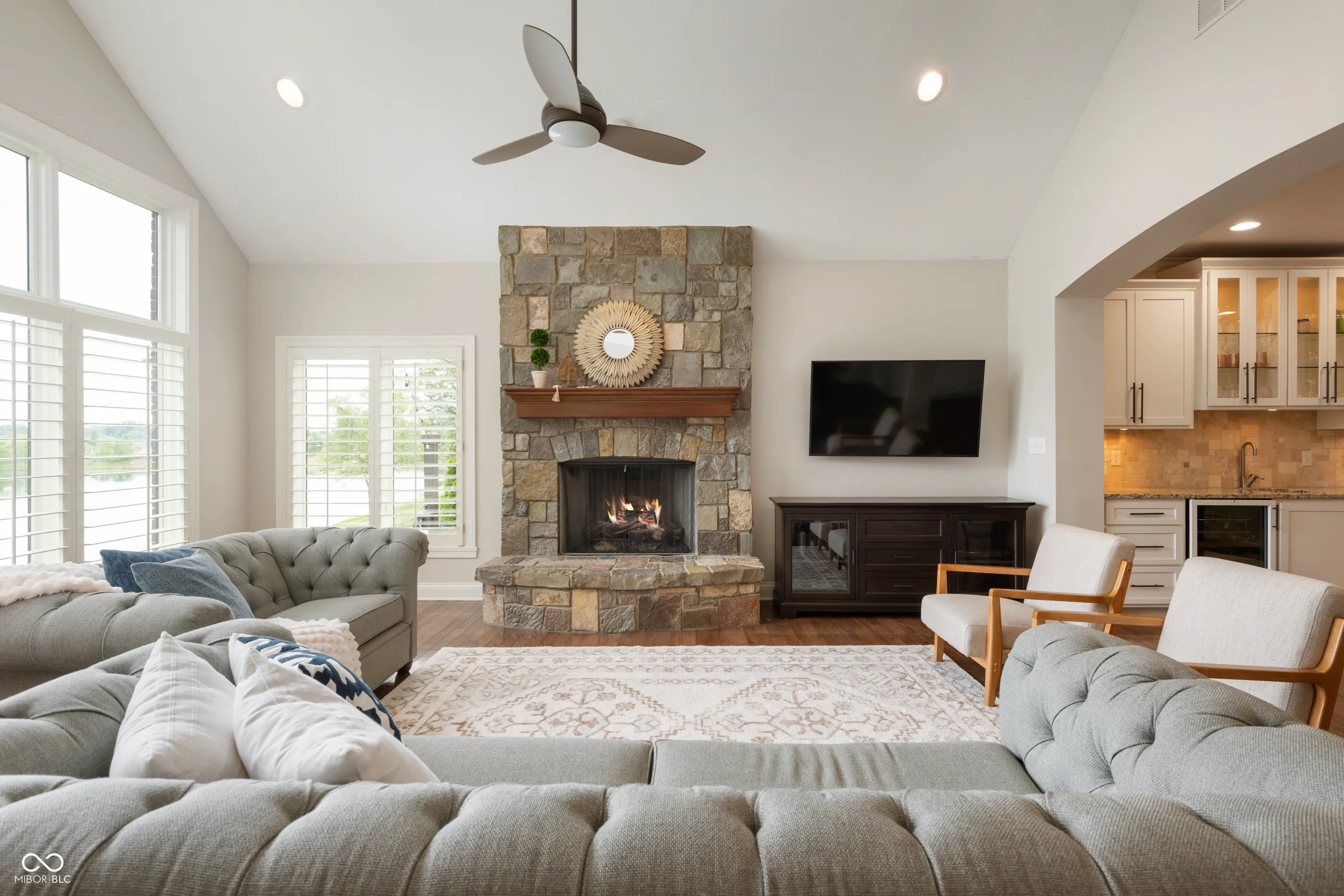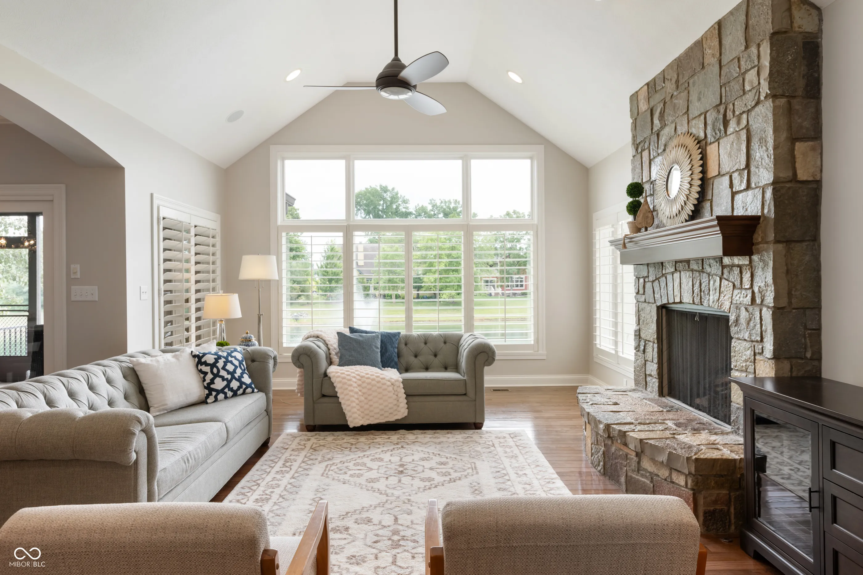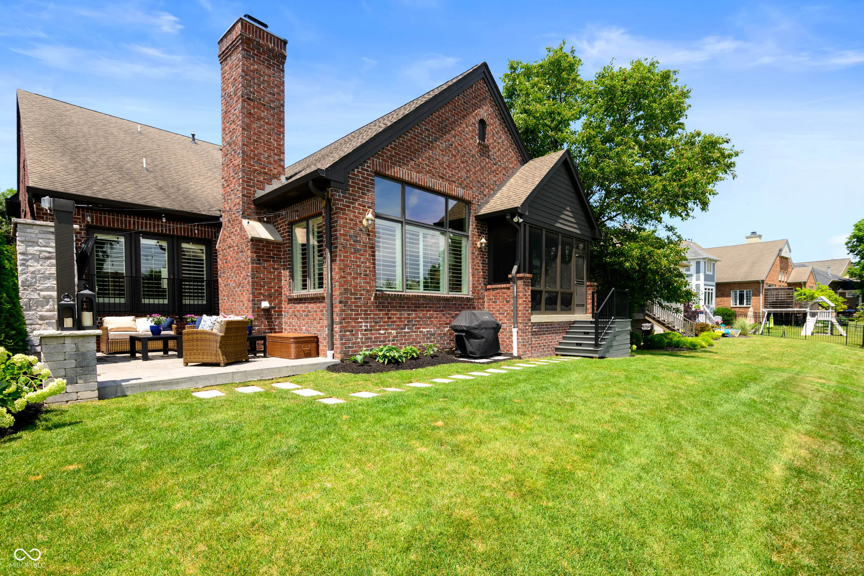 This well maintained, custom all brick home with water view awaits in desirable Stonegate! The heart of the home is anchored by the open concept kitchen which flows seamlessly into the dining & living room areas w/ gas burning fireplace and stone hearth flooded with natural light. Relax on the covered screened in back porch or open air patio overlooking peaceful backyard and serene pond with fountains. Enjoy the convenience of the main level primary bedroom, office and laundry room right off of the 3 car heated attached garage. Upstairs you’ll find two full bathrooms, two traditional bedrooms and a 5th bedroom which also works well as a flex / playroom. The basement is perfect for all ages with custom slide and “secret room” accompanied by a proper wet bar, bedroom and tastefully done full bath + an abundance of storage past the workout area behind the double doors. Brand new HVAC and EV charger stays with the home. Enjoy this popular neighborhood while walking or biking to the nearby elementary school and middle school, pool & restaurant, close to shopping between interstate access and downtown Zionsville is only 8 minutes away!