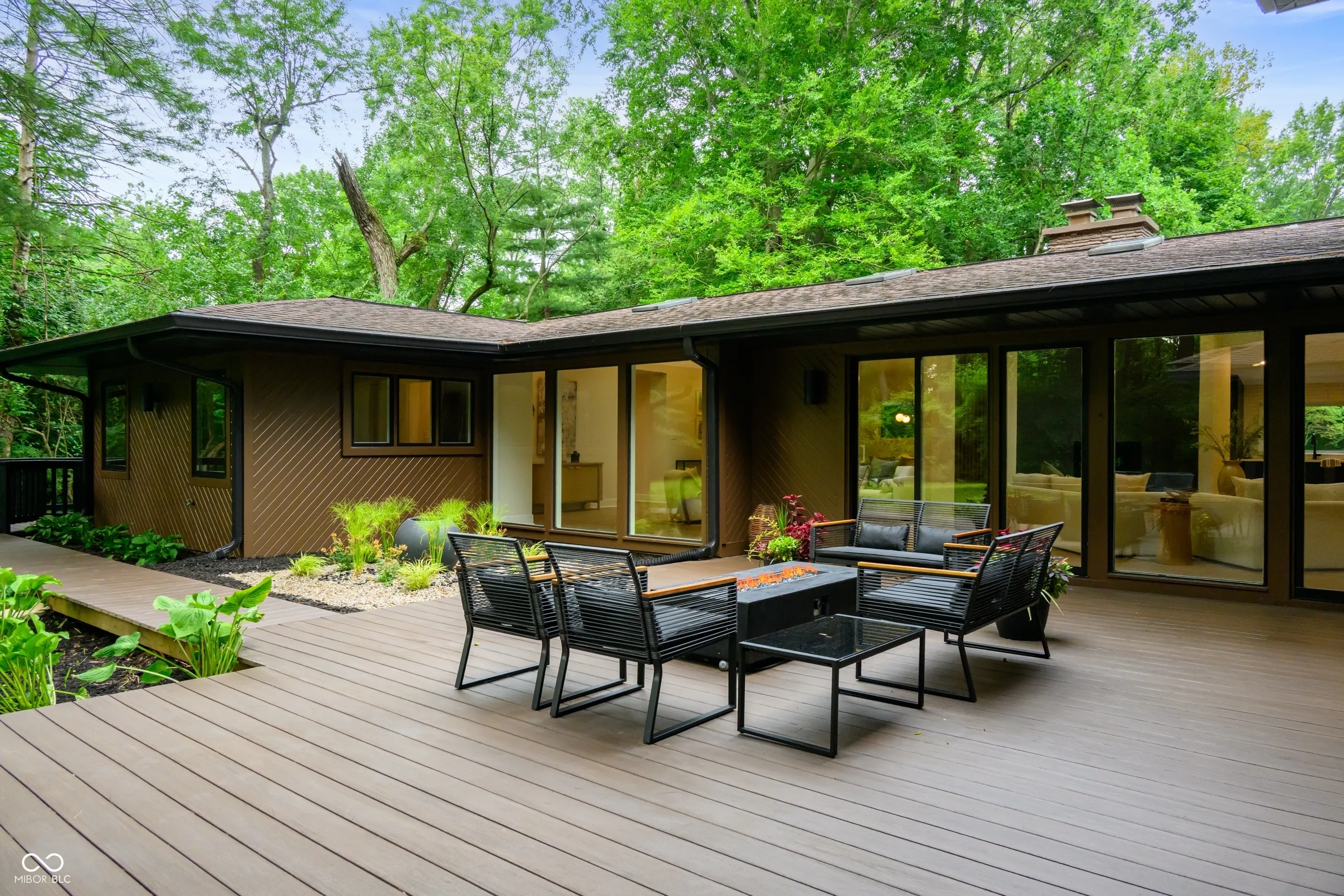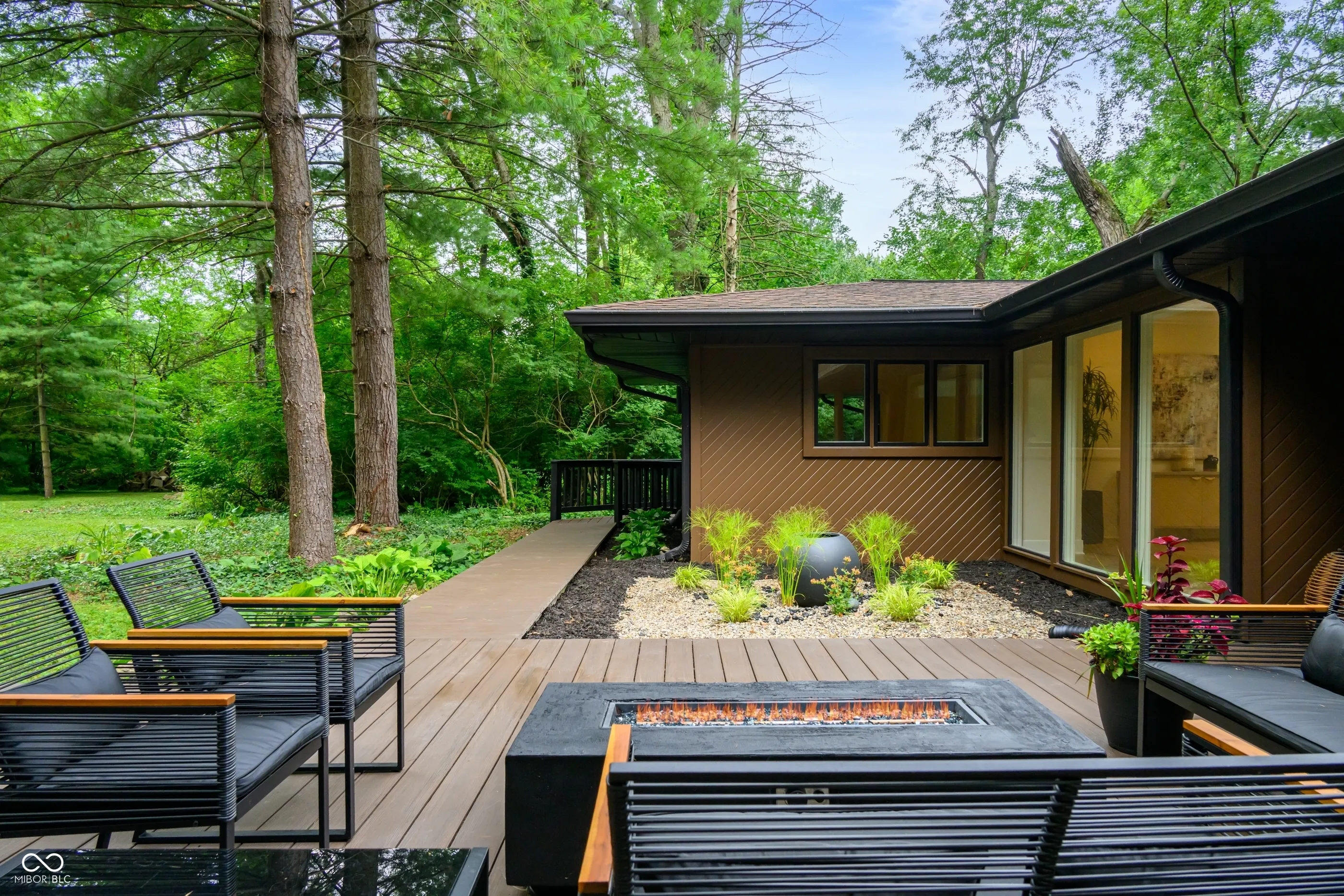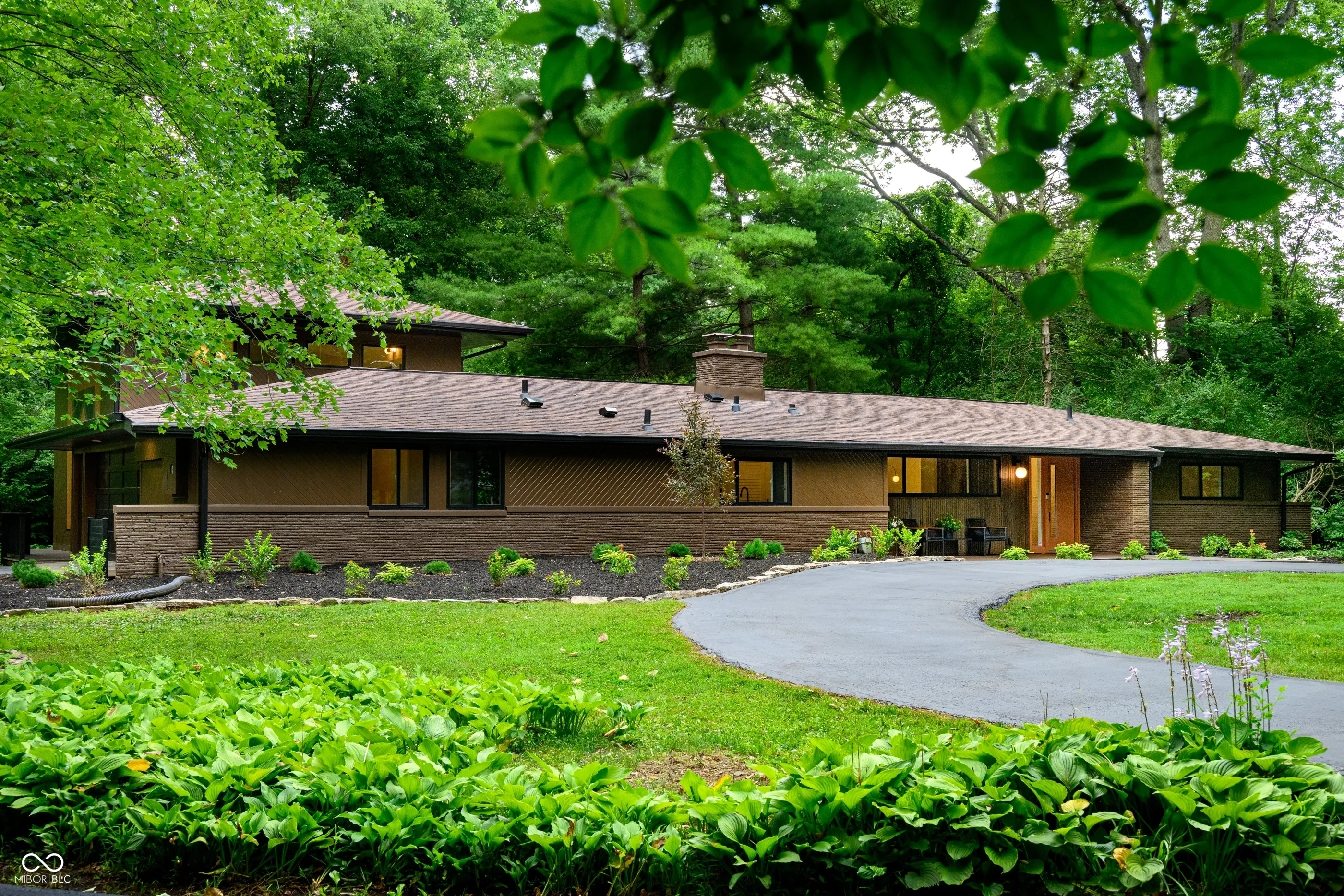 Tucked at the end of a quiet cul-de-sac, this long & low contemporary ranch built in 1965 offers a rare blend of crisp lines & soft comfort. The one-level living experience with a surprise architectural addition blends the serene indoor-outdoor connection. The newly re-designed layout features 3 bedrooms in one wing, 2 with a shared minimalist bath with walk-in shower, and a 3rd with a private ensuite with terrazzo inspired flooring & vanity that nods MCM. The Cube, a light-filled addition that was architect-designed in the late ’90s, now serves as the primary suite. This tranquil & private space includes sleeping & sitting areas, a spa-like ensuite with a wet room vessel tub & shower, double vanity & custom walk-in closet. The floating upper loft with 3 walls of windows, half bath, & 2nd closet is an inspiring space for an office, studio, or gym. The living areas feature floor-to-ceiling windows with a view & access to the rear lawn with wooded privacy, massive composite deck, firepit, & screened garden pavilion-ideal for outdoor dining or quiet evenings with a book. Here, light moves freely. Time slows. And the boundary between inside & out nearly disappears. Where high ceilings & vertical room dividers draw the eye up & the one level, soft-washed pecan-toned floors serve to gently ground us in the dining room & living room that leads to the family room with a gas fireplace. The heart of the home is a modern chef-worthy kitchen with custom cabinetry in onyx & walnut toned finishes, quartz countertops, a six-burner range, double ovens, & SmartThings-enabled refrigerator. The laundry room includes a window, cabinets & counter space. The incredible 1.32 acre lot welcomes with a driveway that circles a lawn surrounded by mature trees & leads to a side-entry garage and tucked away storage shed. Rooted in timeless design, natural textures & neutral tones bring warmth to clean architectural lines. A home where soft modernism and quiet sophistication live in balance.