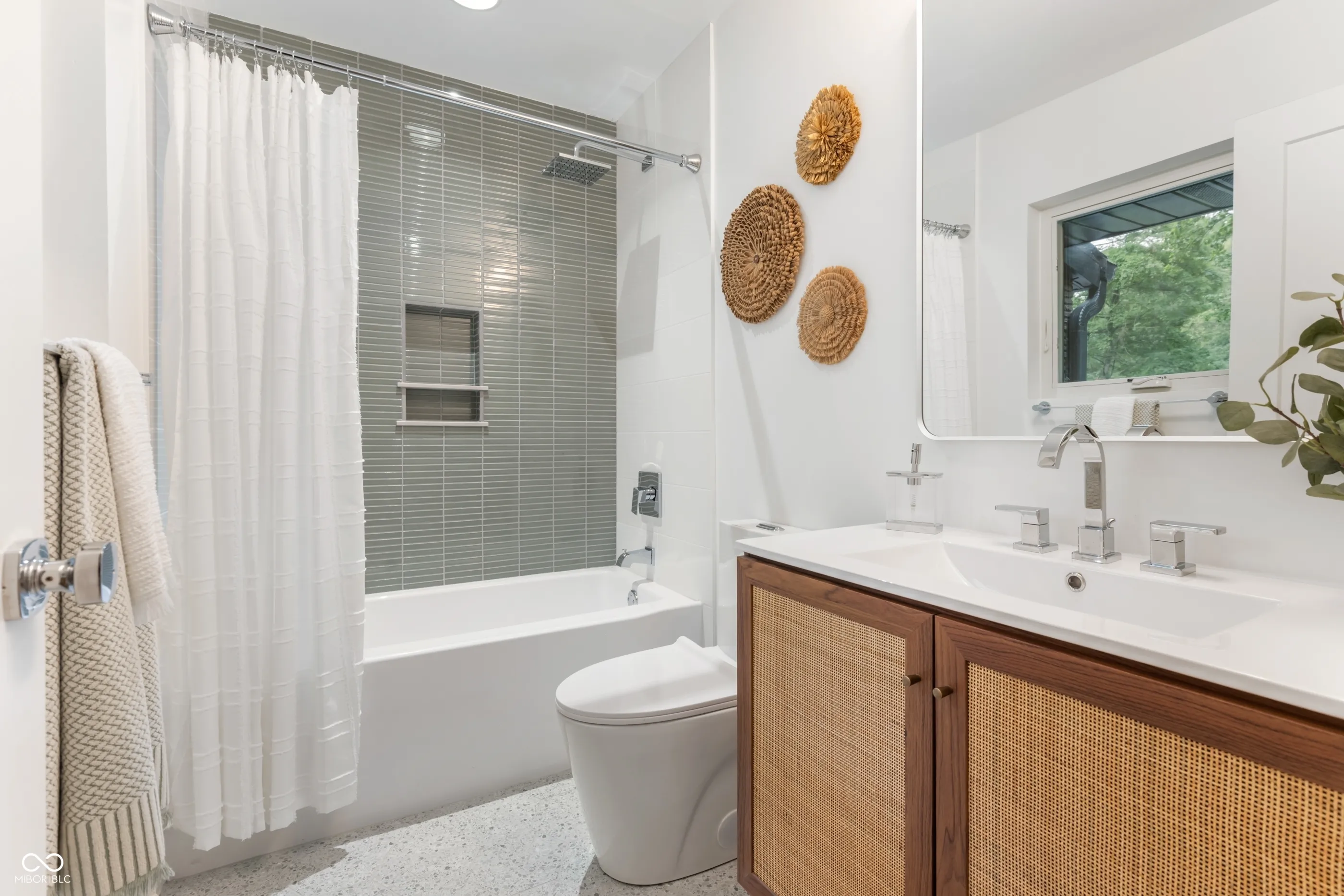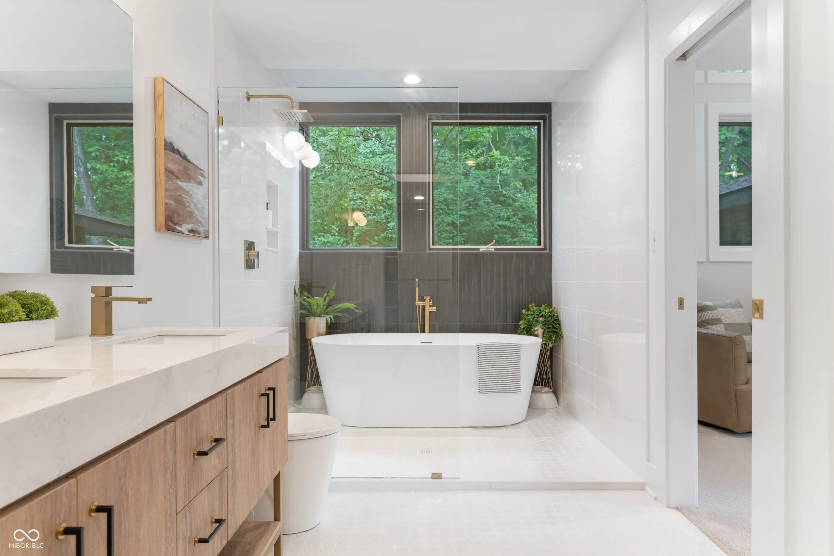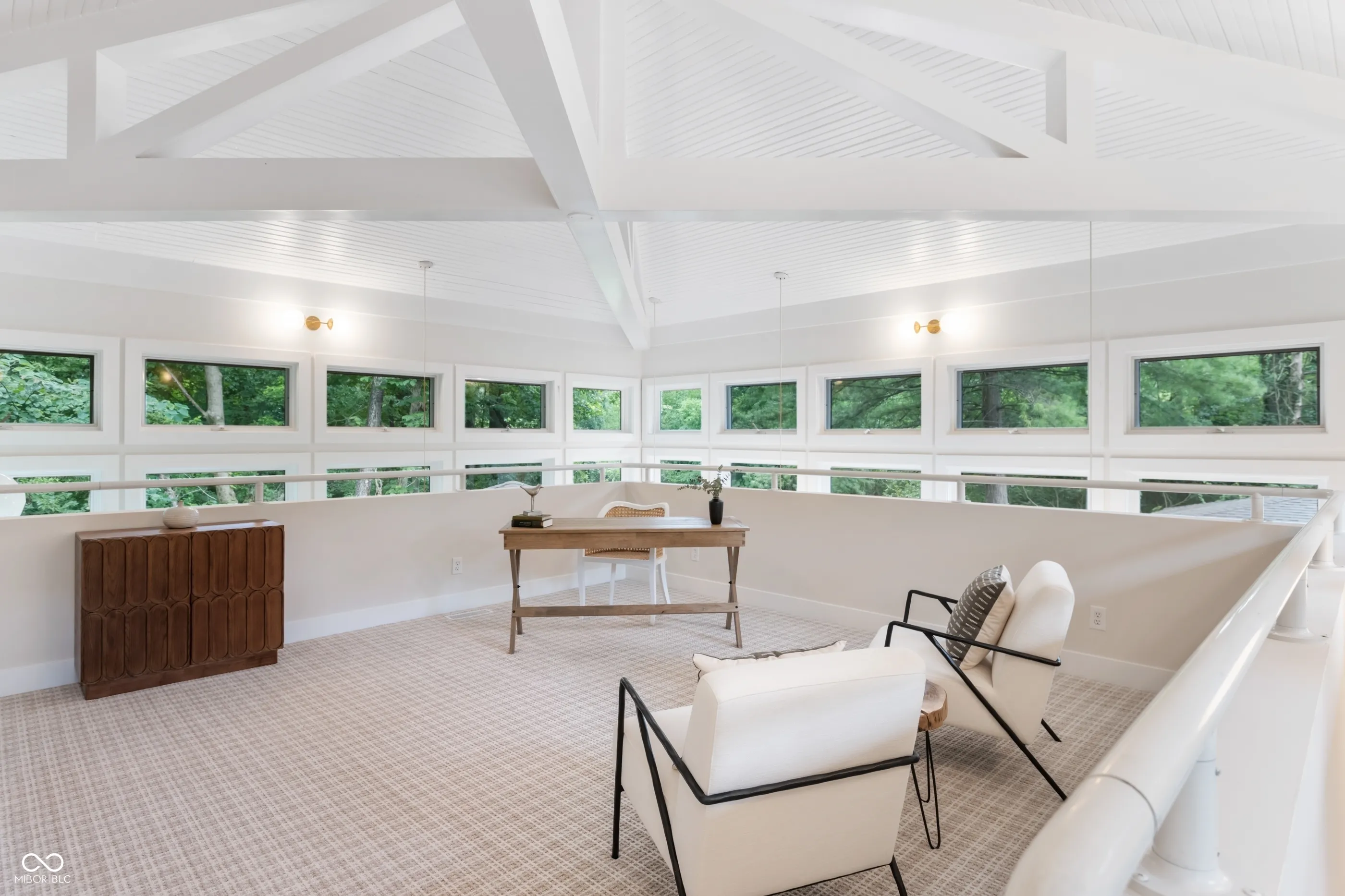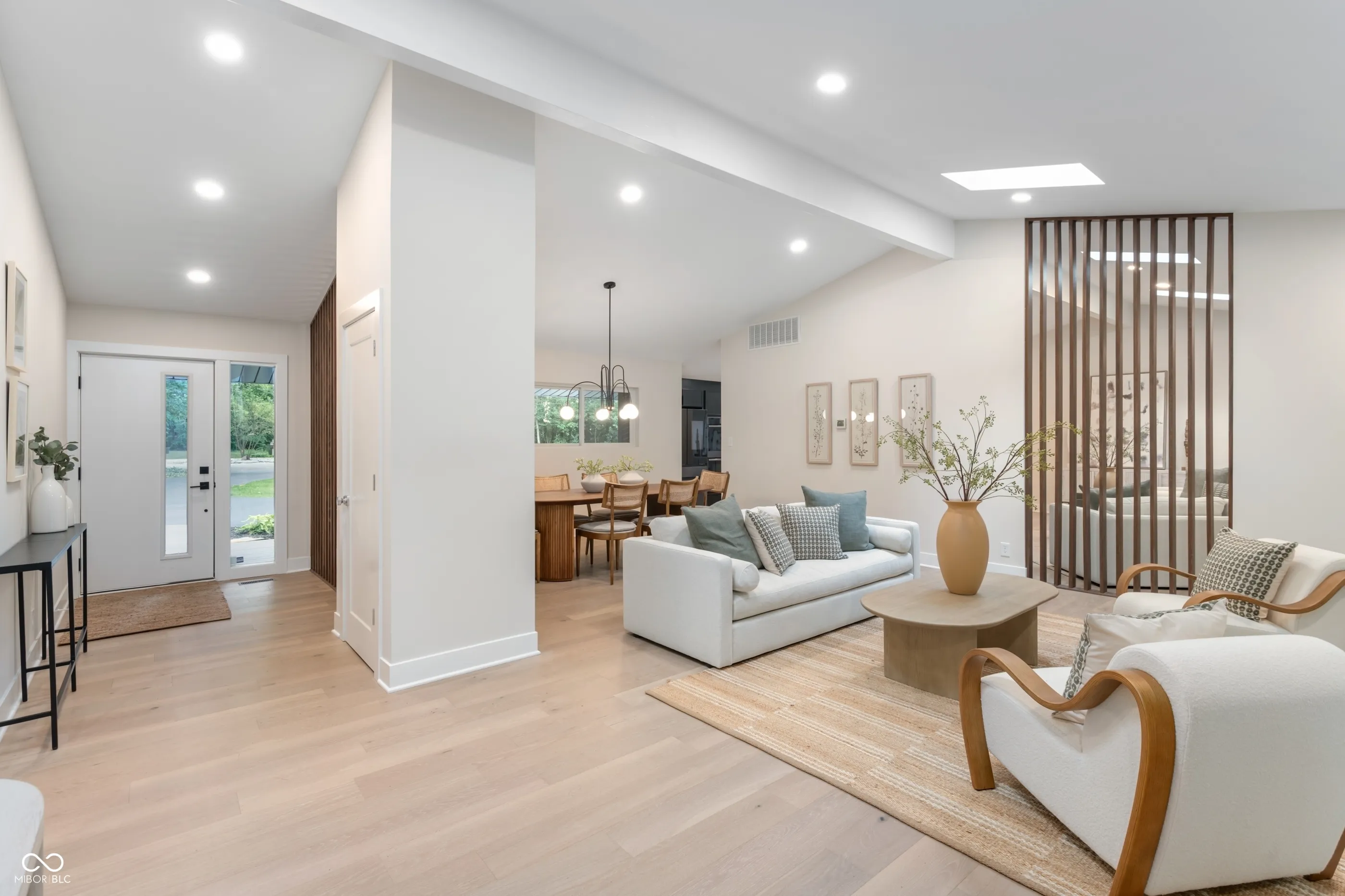 Tucked at the end of a quiet cul-de-sac, this long & low contemporary ranch built in 1965 offers a rare blend of crisp lines & soft comfort. The one-level living experience with a surprise architectural addition blends the serene indoor-outdoor connection. The newly re-designed layout features 3 bedrooms in one wing, 2 with a shared minimalist bath with walk-in shower, and a 3rd with a private ensuite with terrazzo inspired flooring & vanity that nods MCM. The Cube, a light-filled addition that was architect-designed in the late ’90s, now serves as the primary suite. This tranquil & private space includes sleeping & sitting areas, a spa-like ensuite with a wet room vessel tub & shower, double vanity & custom walk-in closet. The floating upper loft with 3 walls of windows, half bath, & 2nd closet is an inspiring space for an office, studio, or gym. The living areas feature floor-to-ceiling windows with a view & access to the rear lawn with wooded privacy, massive composite deck, firepit, & screened garden pavilion-ideal for outdoor dining or quiet evenings with a book. Here, light moves freely. Time slows. And the boundary between inside & out nearly disappears. Where high ceilings & vertical room dividers draw the eye up & the one level, soft-washed pecan-toned floors serve to gently ground us in the dining room & living room that leads to the family room with a gas fireplace. The heart of the home is a modern chef-worthy kitchen with custom cabinetry in onyx & walnut toned finishes, quartz countertops, a six-burner range, double ovens, & SmartThings-enabled refrigerator. The laundry room includes a window, cabinets & counter space. The incredible 1.32 acre lot welcomes with a driveway that circles a lawn surrounded by mature trees & leads to a side-entry garage and tucked away storage shed. Rooted in timeless design, natural textures & neutral tones bring warmth to clean architectural lines. A home where soft modernism and quiet sophistication live in balance.