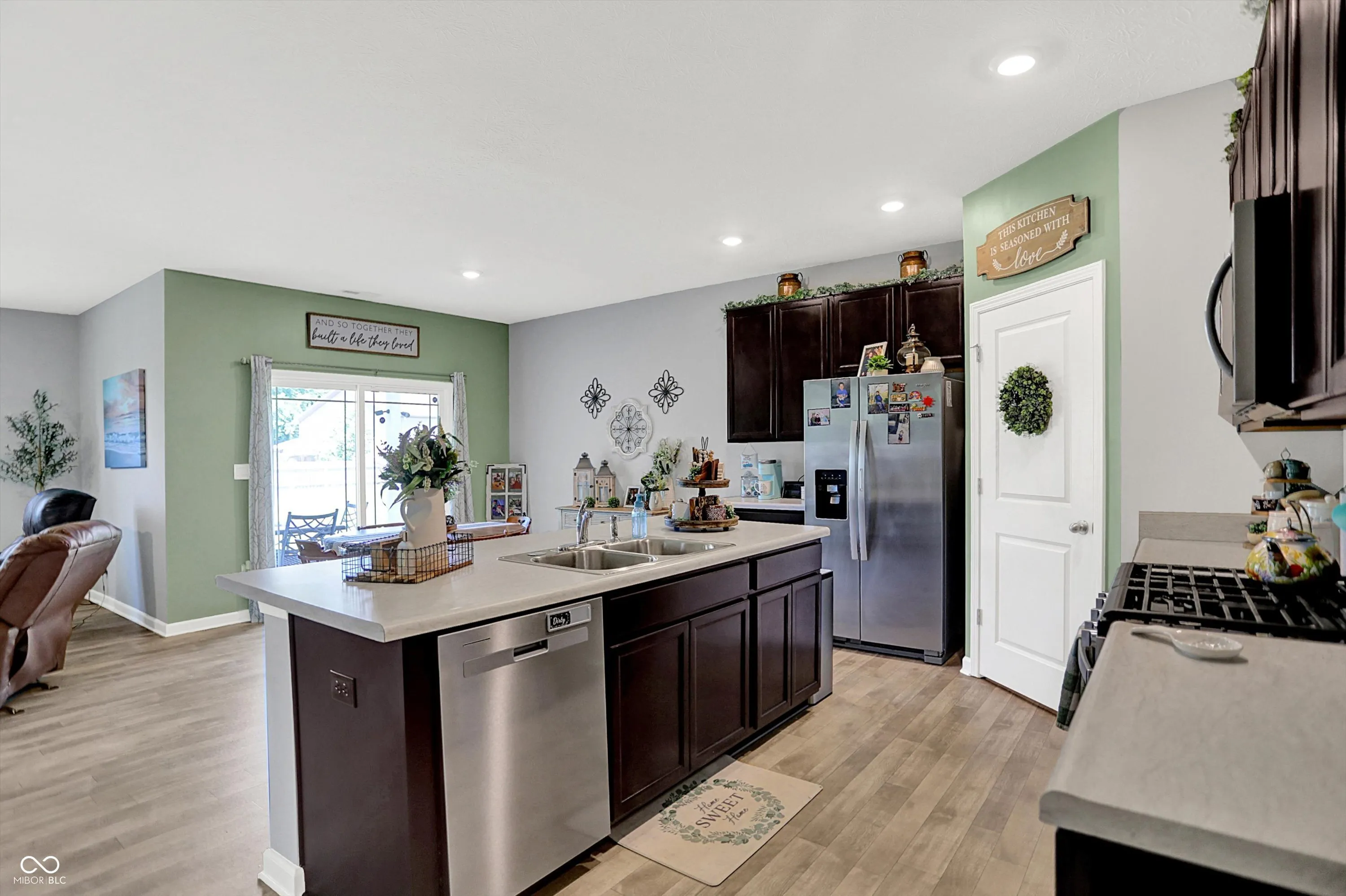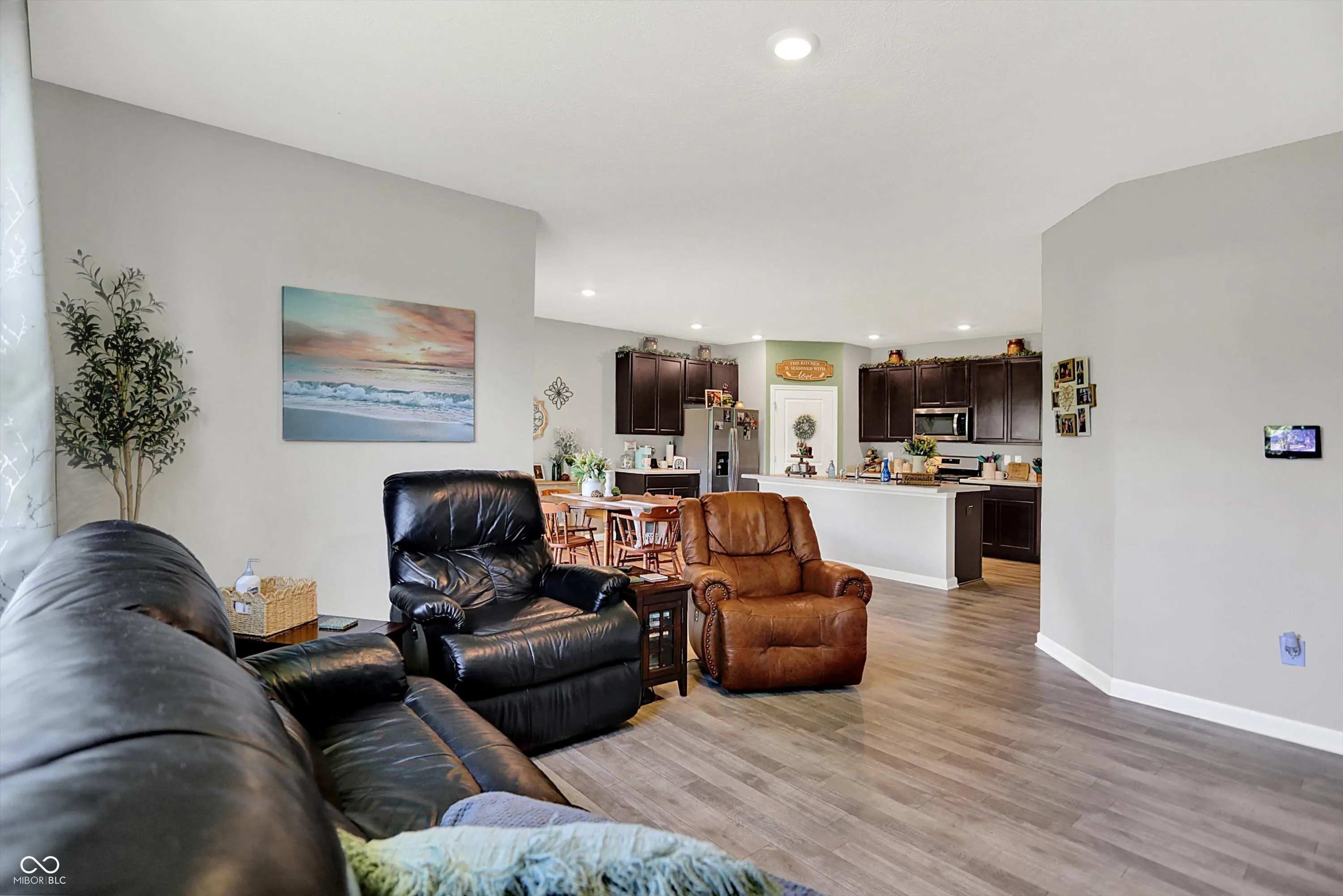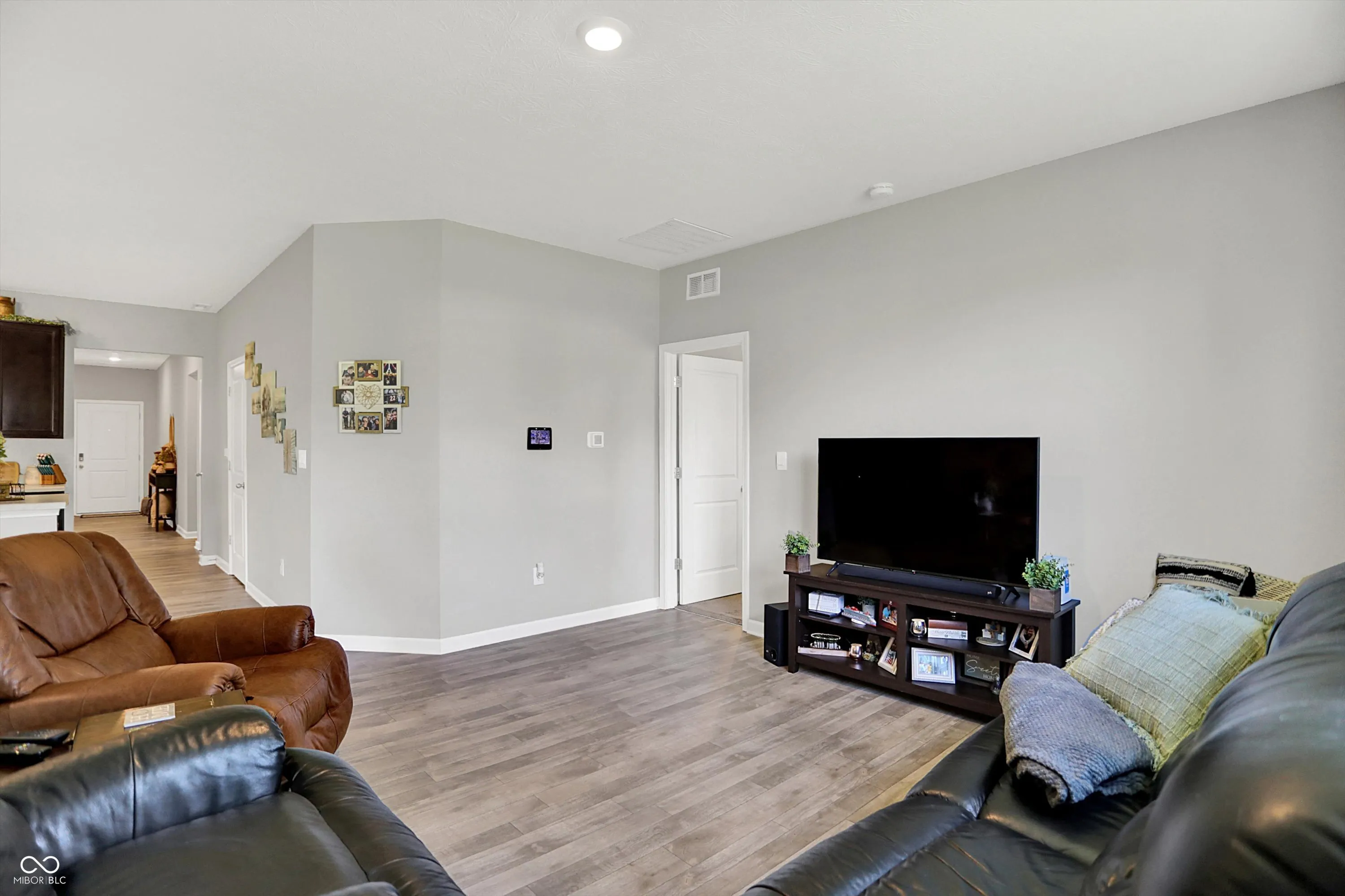 Welcome to this beautifully maintained Chatham Ranch, built by premier Indianapolis builder D.R. Horton in 2022. Located in Franklin Township on the southeast side of Indianapolis, this spacious 1,771 sq ft ranch-style home offers a peaceful country feel with all the modern conveniences just minutes away. Inside, you’ll find a thoughtfully designed open floor plan with solid surface flooring throughout the main areas and cozy carpet in the bedrooms. The kitchen is a showstopper, featuring a large built-in island perfect for entertaining, beautiful cabinetry, stainless steel appliances, and a generous walk-in pantry. The 4 bedroom home boasts a split floor plan including 3 large bedrooms in the front, with the primary suite offering a luxury bath, double quartz vanities, a large walk-in closet, as a peaceful retreat from the rest of the home. Enjoy quiet mornings or relaxing evenings on the covered patio, surrounded by a neighborhood that blends serenity with convenience. Easy access to I-74 and I-465, along with nearby retail, grocery stores, parks, and walking trails, makes this home ideal for a growing family or anyone looking to live close to everything. Two full bathrooms, 9-foot ceilings, and an abundance of closet space enhance the functionality and comfort. Additional highlights include a 2-car attached garage, Hardie Plank cement siding for durability, America’s Smart Home Technology (included), and a spacious utility room with gas HVAC, water heater, and extra room for storage. This is modern suburban living at its best!