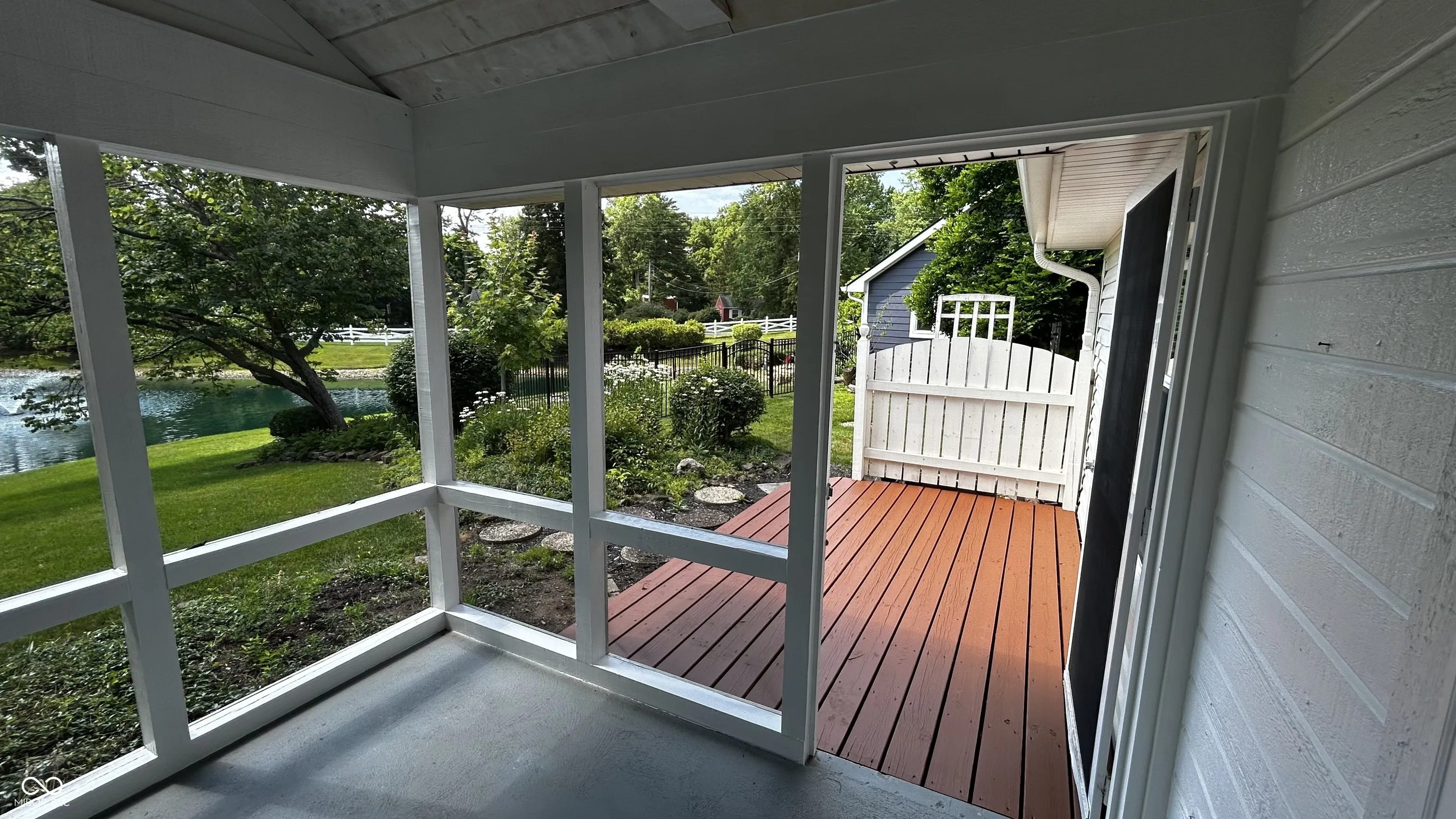 Nestled at 2083 Kerns CT, CARMEL, IN, this attractive single-family residence in Hamilton County presents a wonderful opportunity to own well maintained home in Walden Pond. The property is in great condition and eagerly awaits its new owner. The home features a new state of the art geothermal heating/cooling system, stainless appliances and newer roof. The living room offers a bright and airy atmosphere, enhanced by a vaulted ceiling. Imagine relaxing in this comfortable space with a water front view, where natural light dances across the room, creating a warm and inviting ambiance. The kitchen is thoughtfully designed with both style and functionality in mind. Shaker cabinets provide ample storage and new quartz counter tops add a touch of modern elegance. The kitchen bar/peninsula create a functional space for meal preparation and casual dining. The bathroom is designed for both convenience and luxury, featuring a double vanity that provides plenty of space for your morning routine. The tiled walk-in shower adds a touch of spa-like indulgence, making it a perfect retreat. Beyond the interior, you can enjoy the outdoors from the porch, or unwind in the screened-in sunroom, offering a peaceful spot to soak in the beauty of the surrounding water view. Backyard pond and landscaping offer a nice and peaceful retreat all year long. The property also includes a practical laundry room and a walk-in closet. With 1380 square feet of living area set upon a generous 9148 square foot lot, this two-bedroom home, built in 1988, offers a blend of comfort and charm.