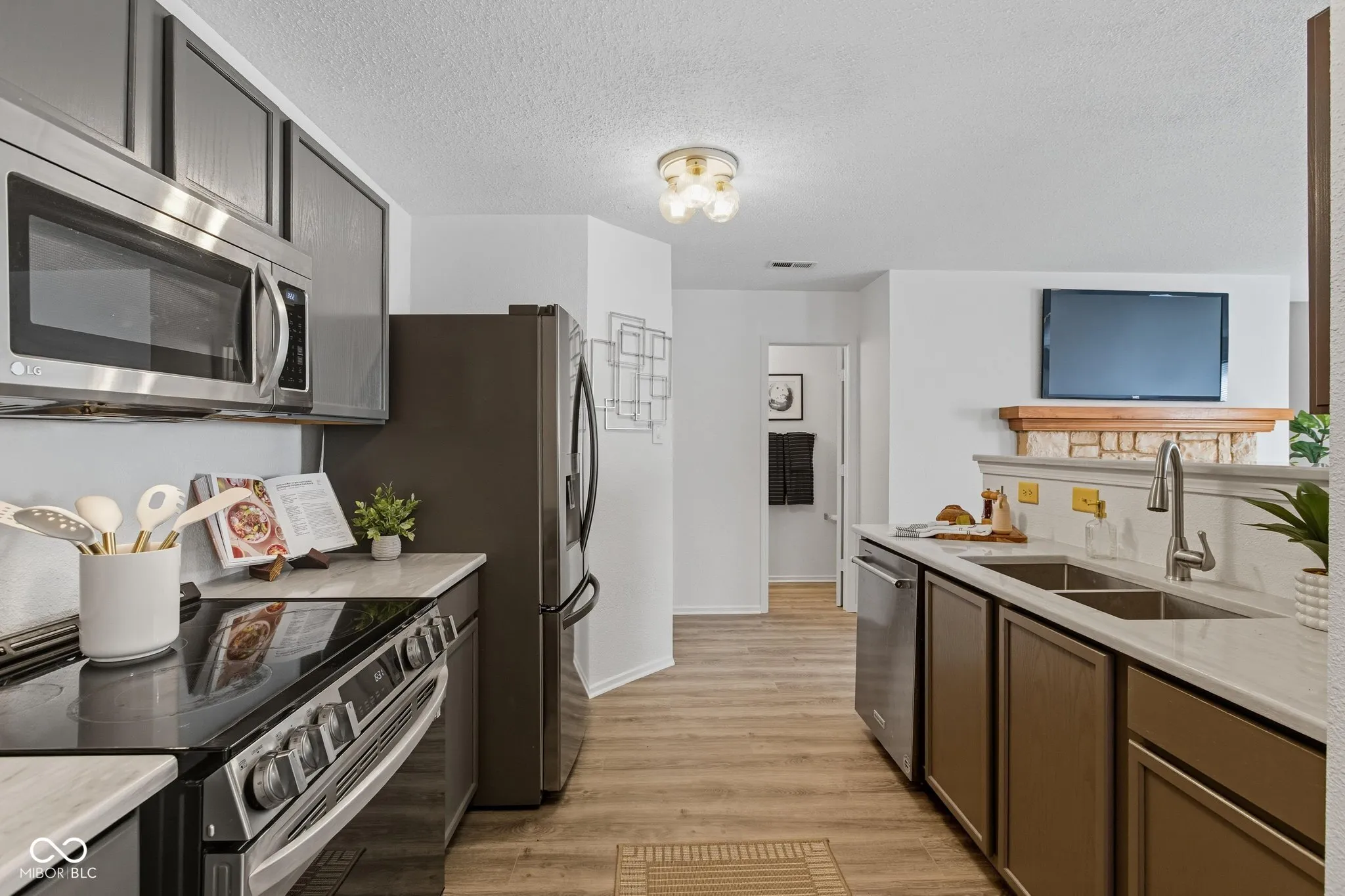 Welcome to this updated 3-bedroom, 2.5-bath home filled with thoughtful upgrades and modern finishes. The main level showcases brand new luxury vinyl plank flooring, fresh paint and stylish fixtures throughout. The stunning kitchen features newer stainless steel appliances, updated cabinetry, brand new quartz countertops, and a large walk-in pantry, along with a designated dining area. The family room offers a stone fireplace with an additional seating area, perfect for relaxing or entertaining. Upstairs, you’ll find new paint and brand new carpets, a spacious loft, perfect for a home office or additional living space. The level also features a generous primary suite with a private ensuite boasting dual sinks, along with two additional bedrooms and another full bath. Outside, enjoy a welcoming front porch, rear entry 2-car garage, and a prime location close to parks, dining, and shopping. With its modern updates and inviting layout, this home is truly move in ready! Water Softener 2025, HVAC 2 years, Water Heater 2 Years, Roof 3 Years