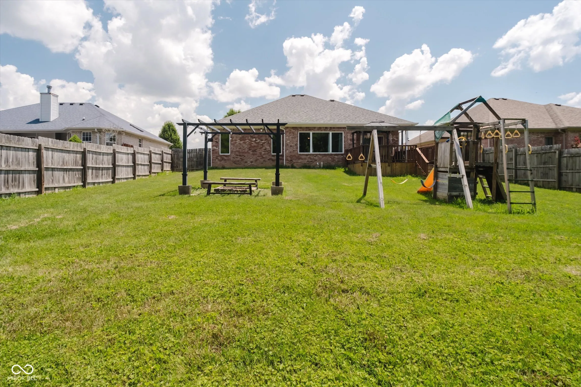 Welcome home to 123 Trinity Way, a charming 3-bedroom, 2-bathroom brick ranch in Mooresville. This one-owner home offers 1737 square feet of comfortable living space and features a welcoming covered front porch. Step inside and discover beautiful hardwood floors that flow seamlessly into the expansive great room, perfect for gatherings. The well-appointed kitchen is a chef’s delight, boasting quality 42″ wood cabinetry, abundant counter space, and newer stainless steel appliances, all while overlooking the dining area and great room – ideal for effortless entertaining. Relax and unwind in the master suite, featuring dual sinks, a large shower, and an impressive walk-in closet. Both additional bedrooms offer generous proportions and excellent closet space. Enjoy your morning coffee or an evening read in the wonderful sunroom, providing serene views of the large, fenced backyard. The exterior truly shines with a large deck for entertaining and a convenient mini-barn for extra storage. The finished garage includes a utility sink and service door for added convenience. Peace of mind comes with the brand-new mechanicals! This home features a gas furnace, AC unit, and gas water heater all less than a year old, ensuring comfort and efficiency for years to come. The dimensional shingle roof is approximately 9 years old. This prime location is just blocks from the renowned Pioneer Park, offering trails, a pool, ball diamonds, and a playground for endless outdoor enjoyment.