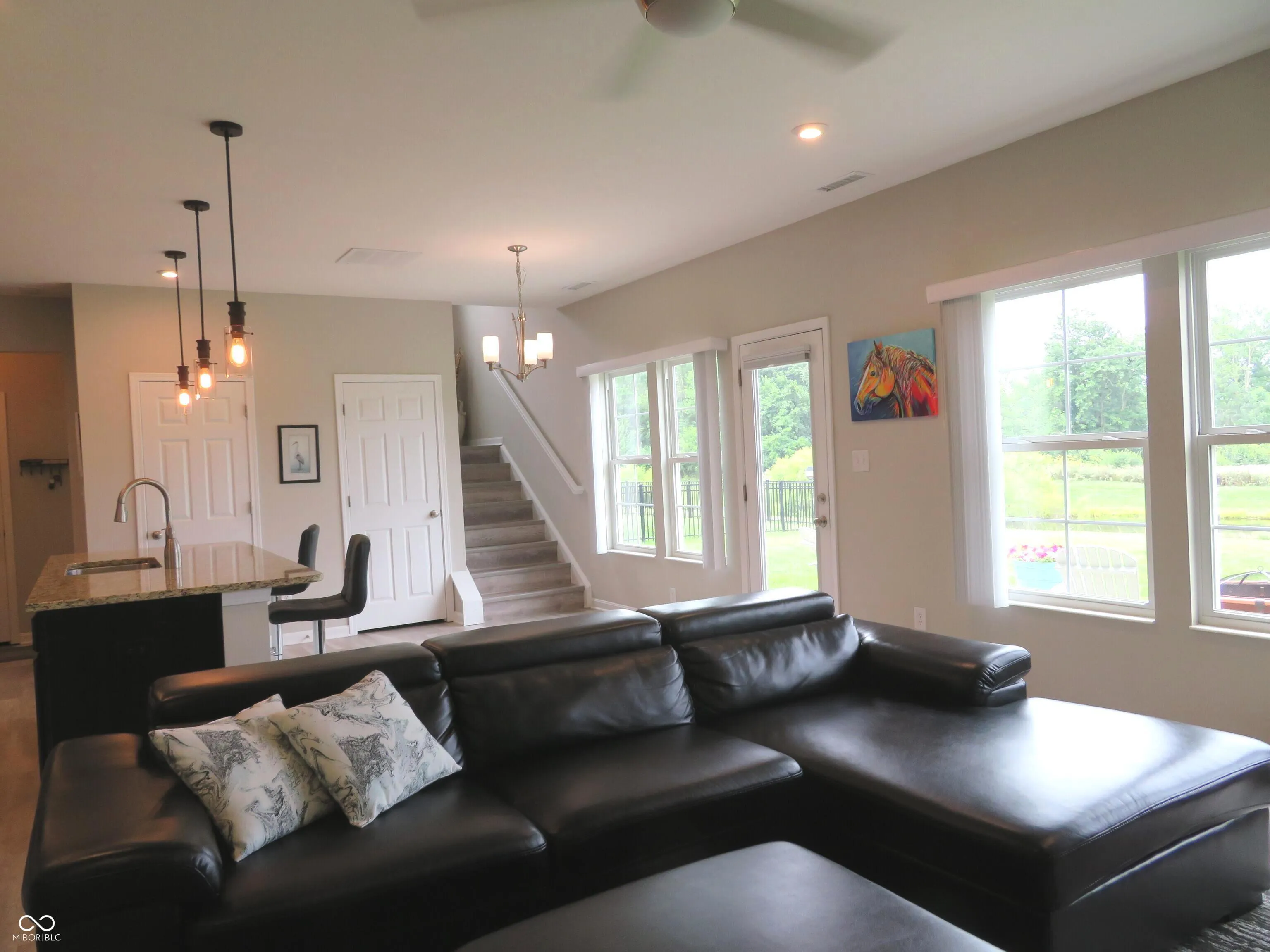 Don’t miss this one!!! A picture perfect home that shows like brand new! Meticulously maintained and spotless! 4 Bedrooms, 2 1/2 baths, office (off entry) and open concept kitchen and living space makes this a great home for any number in the household! LVP flooring through-out the main level, stairs, and upper level hallway makes cleaning traffic areas a breeze, carpet in bedrooms for extra comfort. You will appreciate the added upgrades: speakers in the living area, added bump out for storage in the garage, upgraded stainless kitchen appliances, quartz slab counters (not man made), tile backsplash, pantry, huge island with sink, even the Ring doorbell will stay! Private rear yard with large patio overlooking the pond with nature galore! Natural wild life area with trees filled with birds, even a blue Heron! Imagine relaxing on the patio after a long day and having this as your view!!! Easy to show, easier to love! While visiting the neighborhood notices all the neighborhood amenities! Pool, soccer fields, playgrounds, and 3 miles of trails! There is something for everyone to enjoy!!