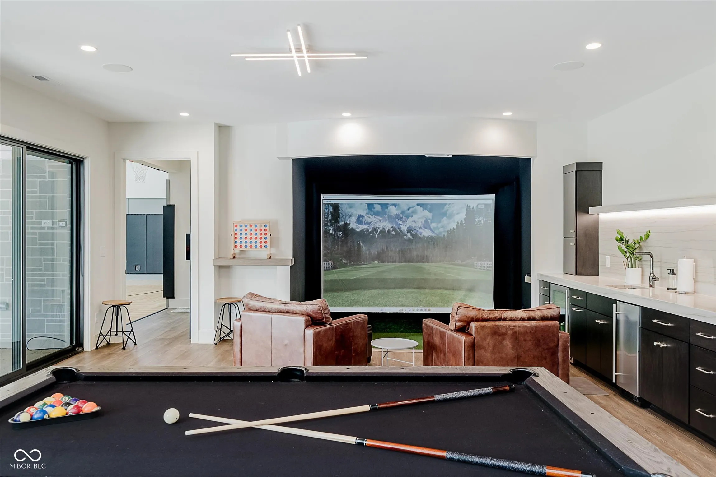 Step into luxury in this stunning Carrington Homes custom estate located in the sought-after Chatham Hills community. This former Home-A-Rama home blends coastal elegance with high-end living, offering unparalleled amenities and impeccable design. With a direct view of Hole 15 on the Pete Dye-designed golf course, this one-of-a-kind home features 5-star lifestyle upgrades throughout. As you enter, you’re greeted by a spacious entryway with gorgeous double doors and 12ft ceilings. The open concept layout creates the perfect space for entertaining with a designer kitchen, waterfall countertops, butler’s pantry, temperature-controlled wine room, and stunning great room (with 20 ft ceilings!). The main floor primary suite offers a serene retreat with spa-like finishes, a private fireplace, a generous walk-in closet, and an attached private laundry room. On the second level, you’ll find three additional bedrooms with en-suite bathrooms and walk-in closets, providing ample space for storage and customization. Entertain with ease in the finished walk-out basement featuring a guest suite, wet bar, ice maker, home theater, golf simulator, exercise room, and an indoor basketball court – a rare and standout feature! Ready to enjoy the outdoors? Step outside to enjoy the heated outdoor pool, outdoor dining space, gazebo, and beautifully landscaped surroundings – designed for year-round relaxation and fun. On the main level, you can take advantage of the covered lanai and outdoor kitchen – including a built-in gas grill, fireplace, heaters, and motorized shades. This home offers a truly rare opportunity to own one of the most distinctive and thoughtfully designed properties in Chatham Hills!