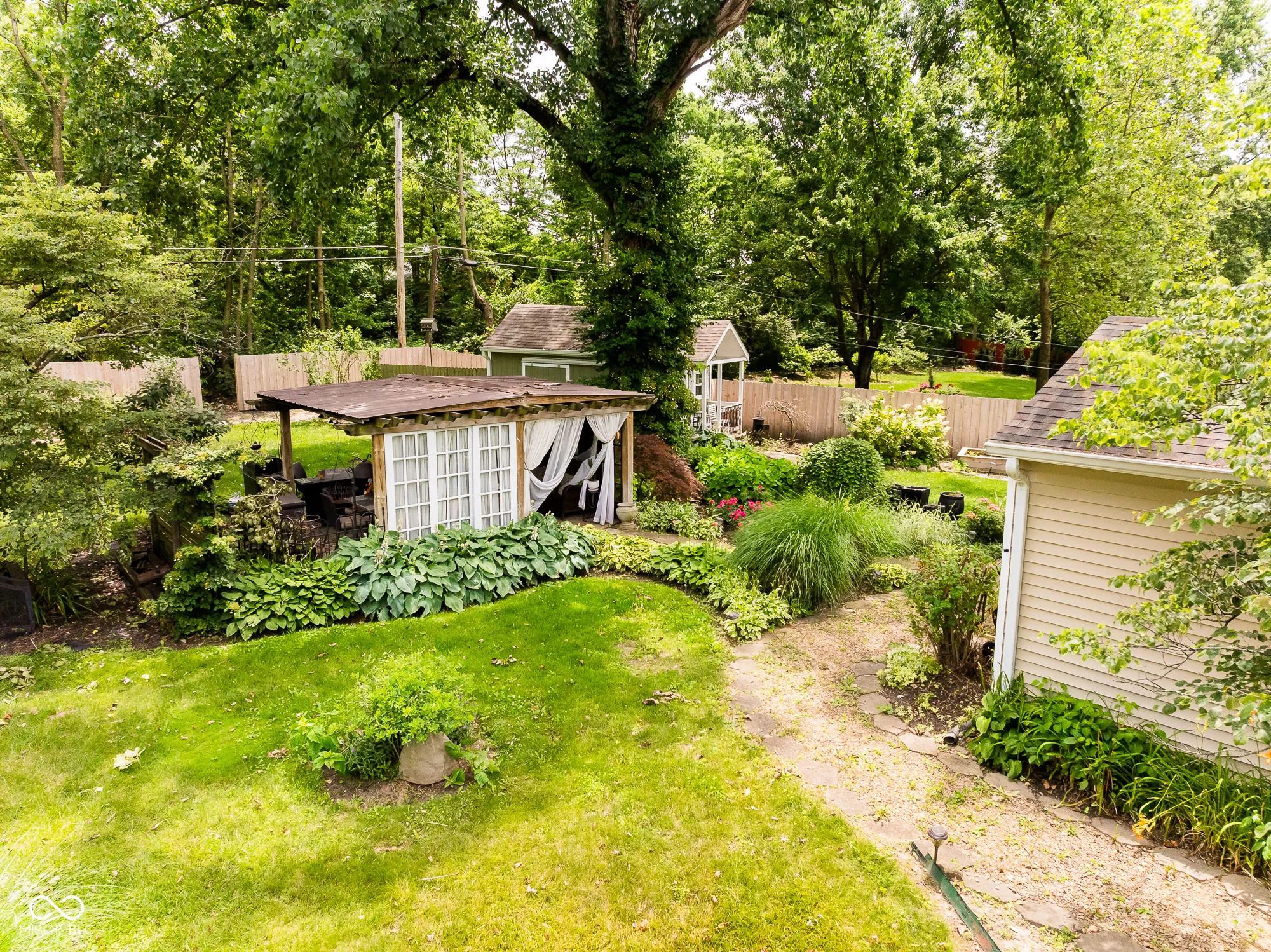 OPEN SUNDAY 1-3! Welcome to this charming move-in ready 2-bedroom, 2-bath ranch home that’s a dream come true for anyone with a green thumb or a love for entertaining. Located in the mature and quiet Windemere neighborhood. Step inside this home to find beautiful hardwood floors & an inviting living space that flows seamlessly into a dining room & CHEF kitchen with stainless steel appliances-all included! Enjoy peace of mind with recent updates like new PEX plumbing throughout, a roof that’s only seven years old, an HVAC system (installed May 2022), and a brand new private well, while still benefiting from municipal sewer service. Washer & dryer also stay with the home & a garage refrigerator stays! Outside, the possibilities are endless and was the joy of the owner. The fenced backyard is a true oasis with large, mature trees providing shade and privacy. Electric service runs to both the cozy she-shed and the pergola-perfect for relaxing evenings, gatherings with friends, or cultivating your favorite plants. The home also features a mud room for an easy transition from outdoor chores to indoor relaxing. Nature lovers & active homeowners will love that this property backs directly up to the Nickel Plate Trail, offering miles of scenic walking & biking just steps from your back door. An attached one-car garage adds extra convenience & storage. This home combines comfort, updates, & outdoor living in one delightful package-come see how easily it could be yours! They say a picture says a thousand words BUT this home needs to tour to see its beauty! HOME IS GOING TO BE OPEN MOST SUNDAYS UNTIL SOLD!