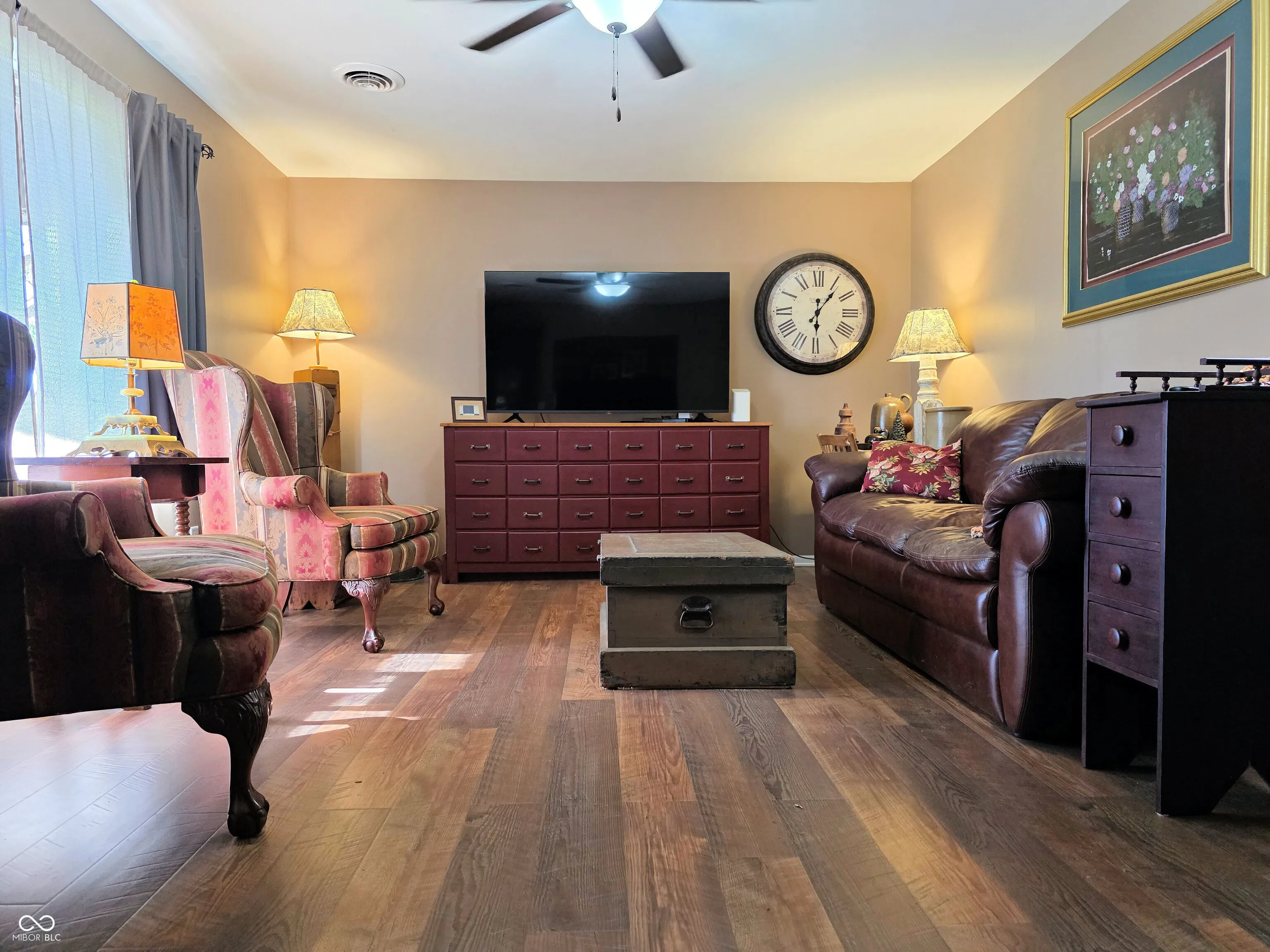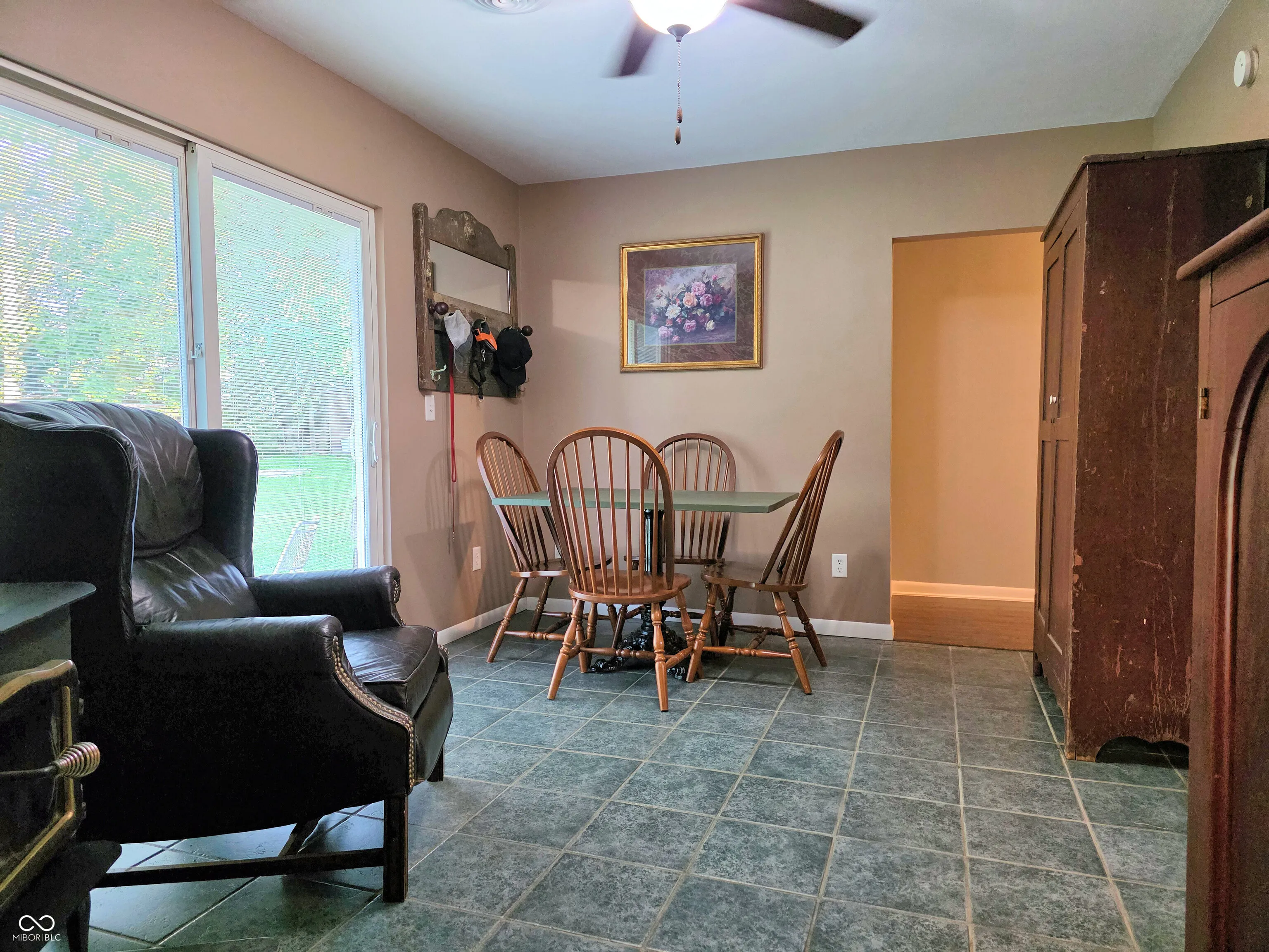 Tucked among mature trees on 1.25 park-like acres, this charming 1960s ranch offers a peaceful, natural setting just minutes from Columbus. With a rustic exterior of Brown County stone and wood, the home blends beautifully into its surroundings. A clean, lightly wooded area with a firepit invites outdoor gatherings, while the spacious backyard provides room to relax or play. Inside, you’ll find 1,327 square feet of well-maintained living space that feels even more expansive thanks to a functional layout and abundant natural light. The home is furnished with mostly large-scale furniture (as seen in photos), offering great perspective on just how much room you’ll have. The inviting dining area features a sliding glass door to the backyard, and the cozy wood stove is both functional and atmospheric for chilly evenings. The kitchen is updated with newer stainless steel appliances and hard flooring flows throughout the home – beautiful, low-maintenance, and allergy-friendly. There are three freshly painted bedrooms and two full baths, including a primary suite with a new tub, surround, and fixtures. Double-hung vinyl windows provide energy efficiency and easy cleaning. Storage and hobby space abound with a large attached 2-car garage, an oversized detached 1-car garage with spacious attic storage above, a yard barn (less than 3 years old), and an additional shed perfect for lawn gear or seasonal decor. Located just off State Road 46 East in Newbern, this property offers the feel of country living with the convenience of a short, easy drive to Columbus. It’s a rare opportunity to own a home in such a naturally beautiful setting – don’t miss it!