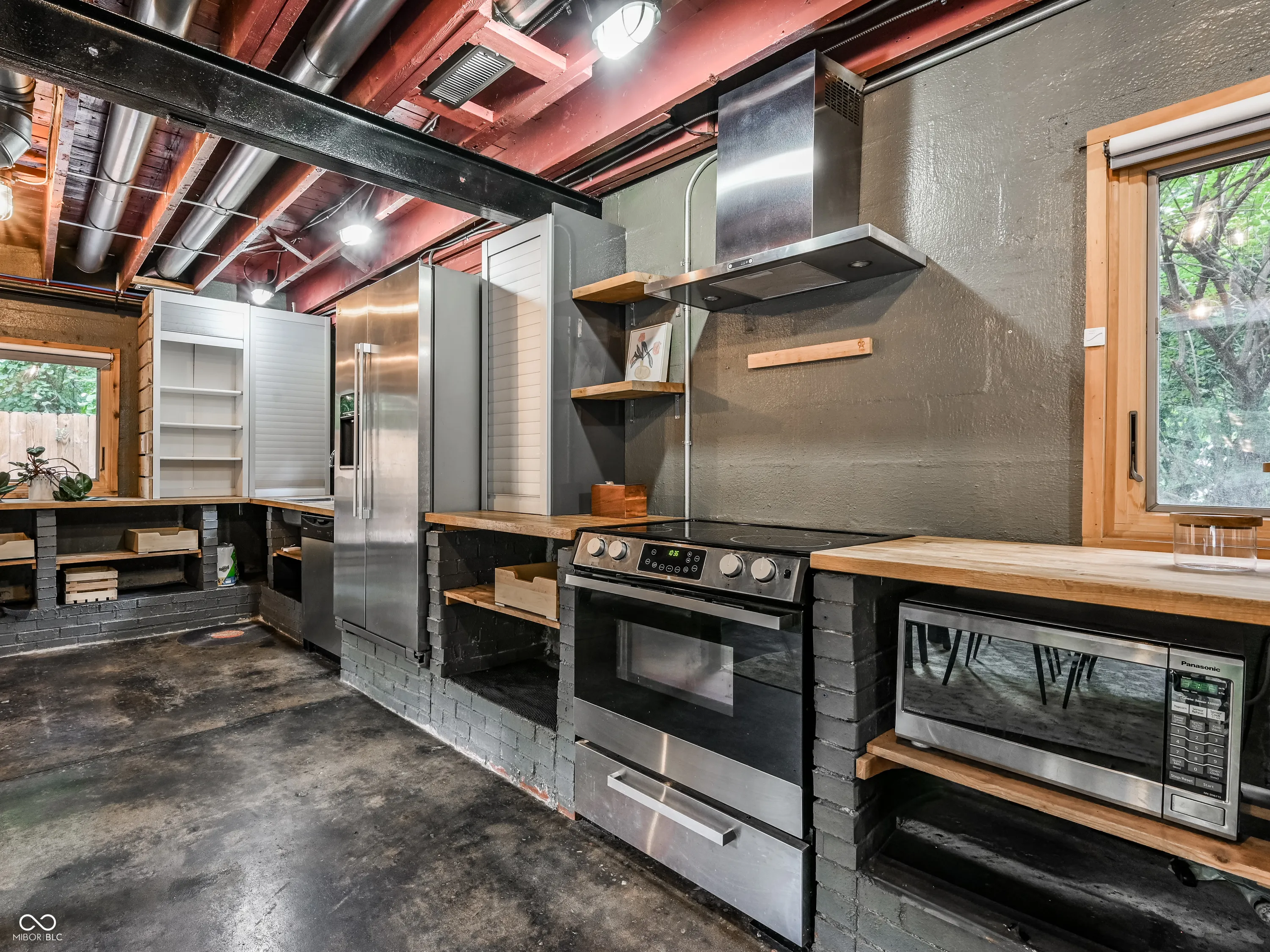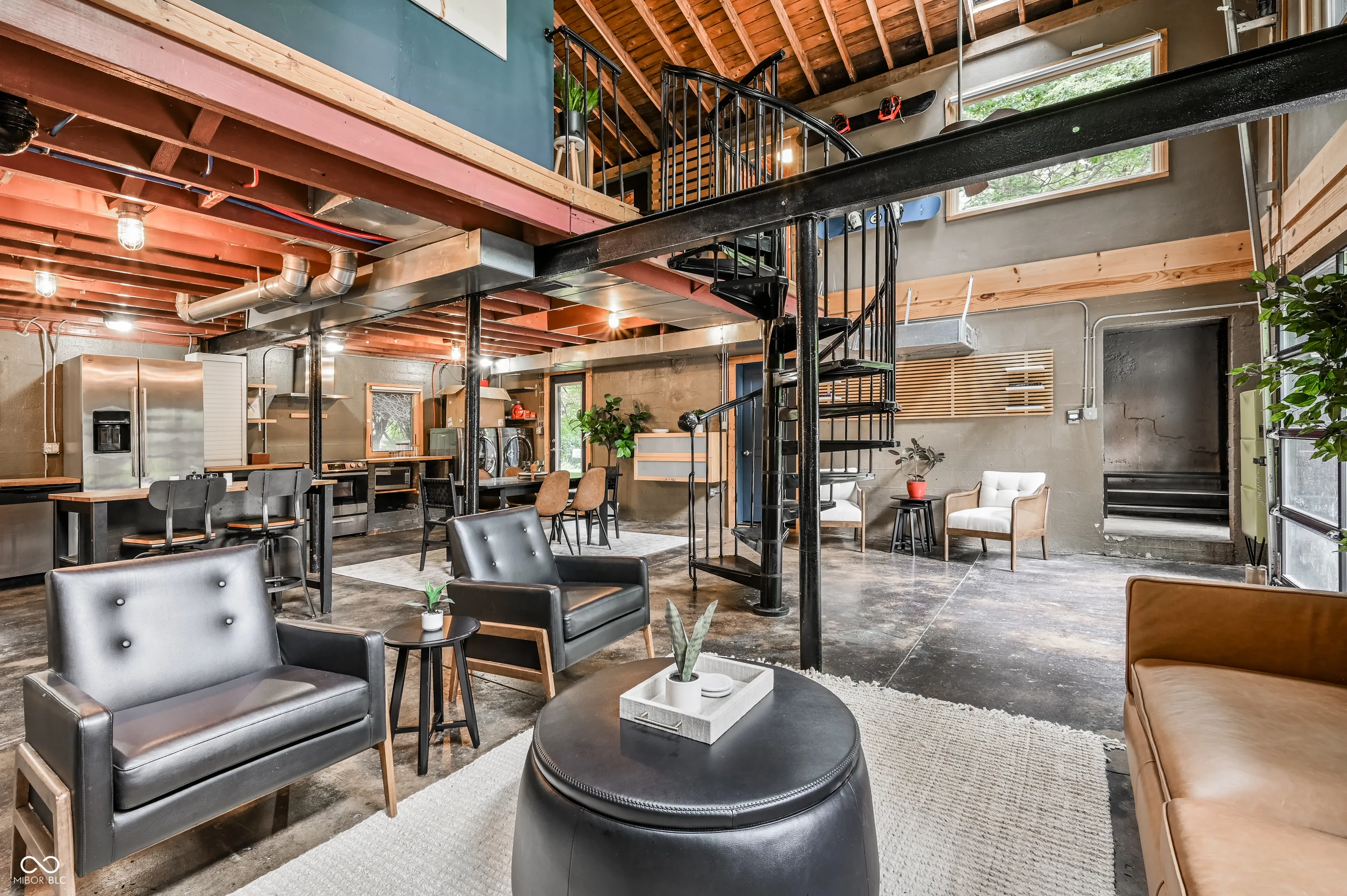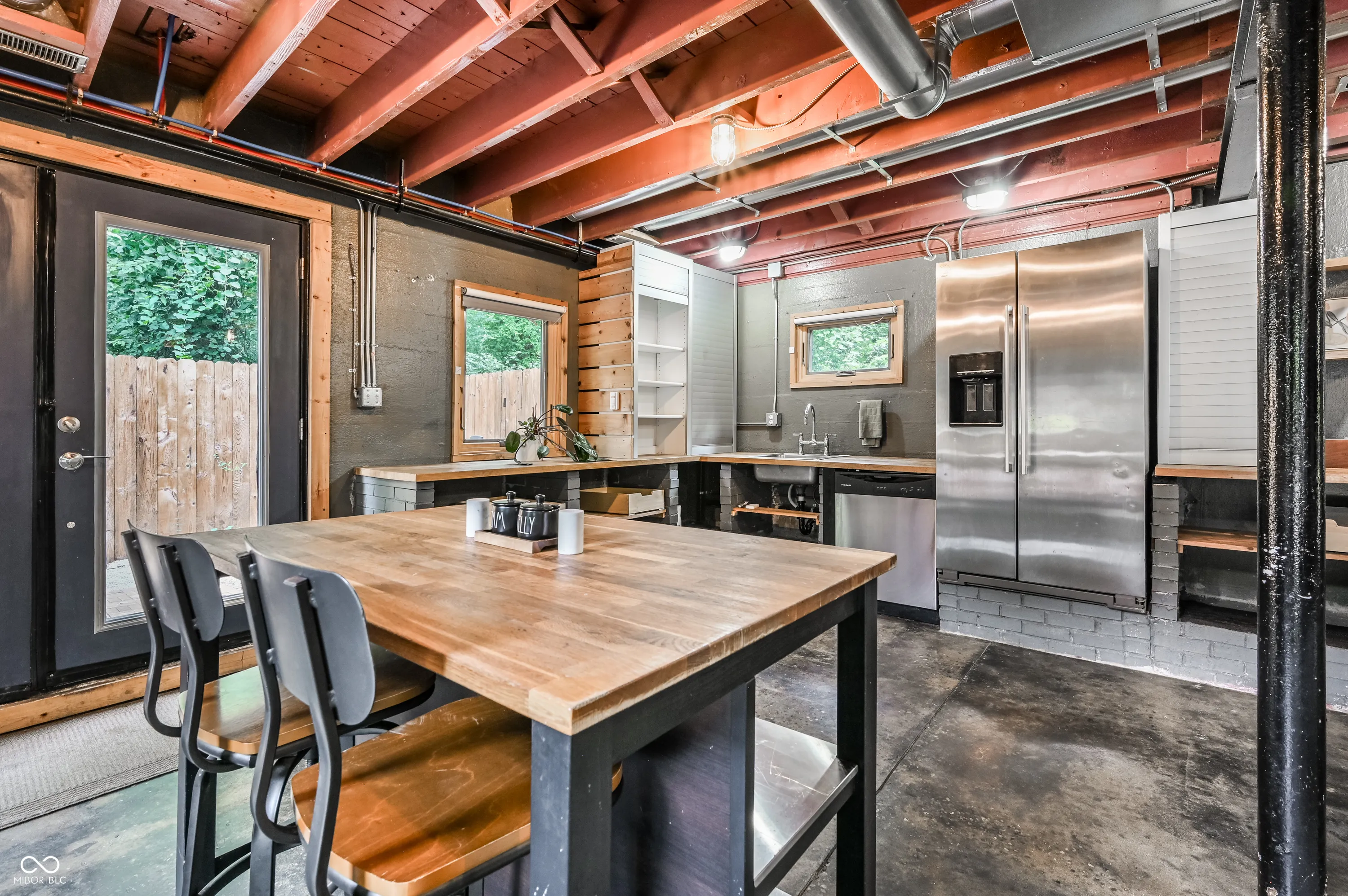 The great philosopher Huey Lewis once said, “it’s hip to be square”. It turns out he was talking about this house! Welcome to one of the coolest houses that has ever touched the earth in Ravenswood, just north of Broad Ripple. This 2 bed 1 bath is more open than a Waffle House! Step inside and be smacked in the face with an open concept that people only dream of. The crisp nature of the concrete floors makes you feel a sense of calm as you look around into your stylistic oasis. This house has so much natural light that Sun King might have to change their name. With a sitting area, living room, dining and kitchen all perfectly tucked into their own spaces this house feels better than a Swedish massage. Step on up the spiral staircase and get a good view of ceilings so high Snoop Dog can’t help but respect it. The loft bedroom has plenty of space for a king and anything else your heart desires. Next to the loft bedroom is an extra room that can easily be bedroom number two or an office that your mouse jiggler can be hard at work. Just when you think things couldn’t get any better take a look out the window and see a half acre that is complete with a shipping container that can be storage or converted to whatever reddit tells you is best. Step outside and let the grass touch your toes as you dream about starting a garden, adding a pickleball court or finally becoming a cult leader and having a private space to meet. This house is truly one of a kind. Not many places are completely tucked away and walking distance to the heart of Broad Ripple. Come and check this bad boy out.