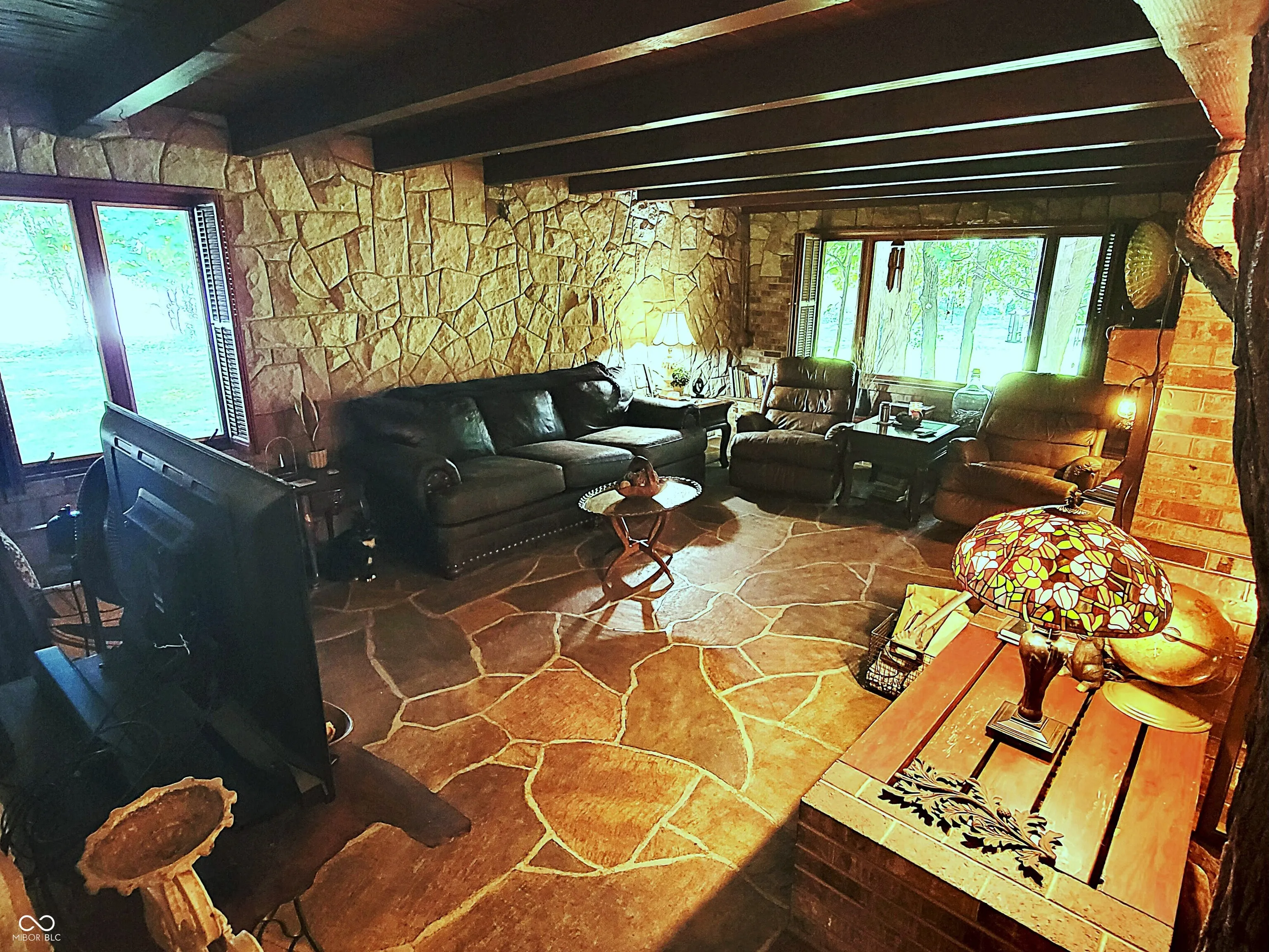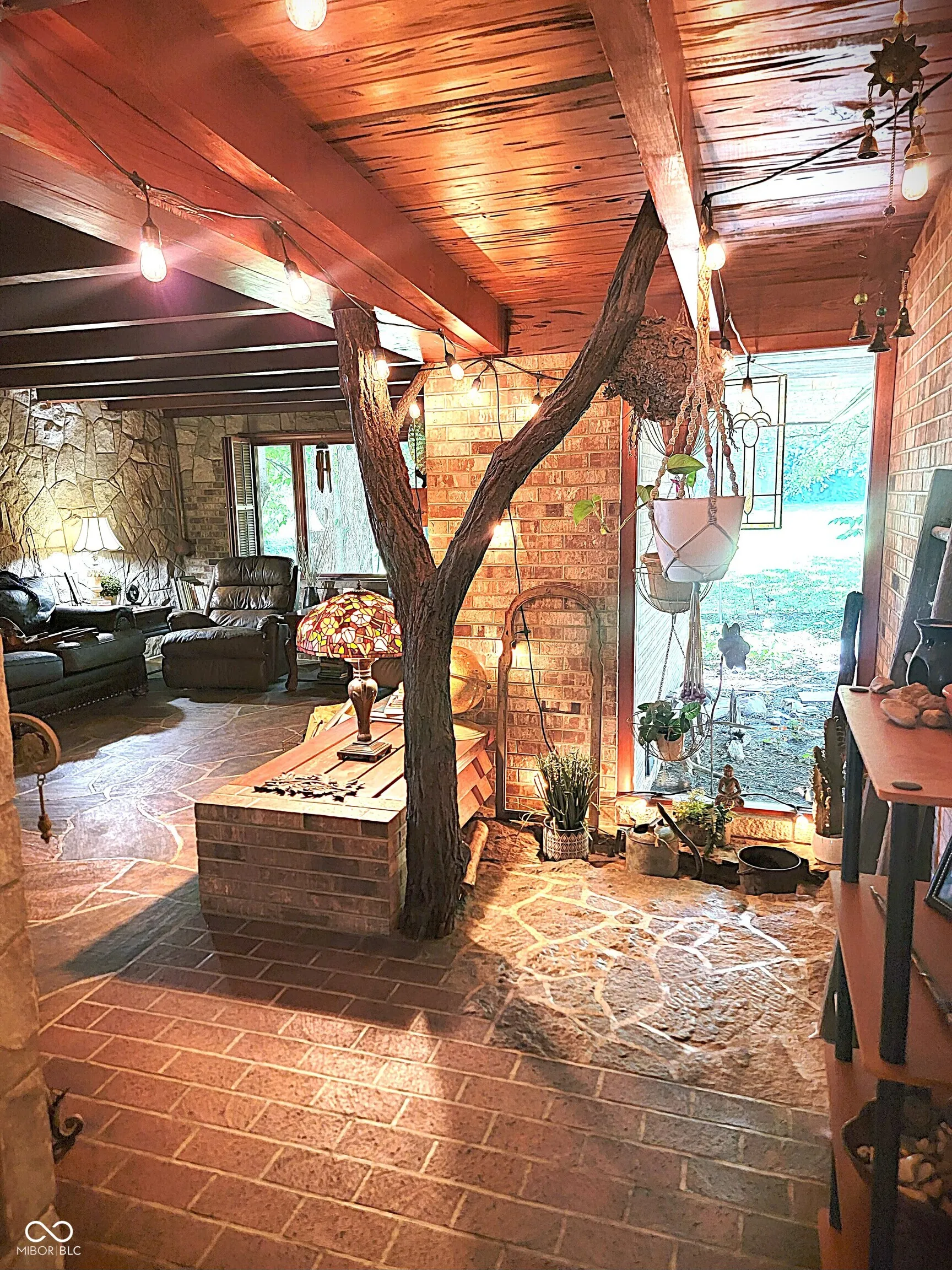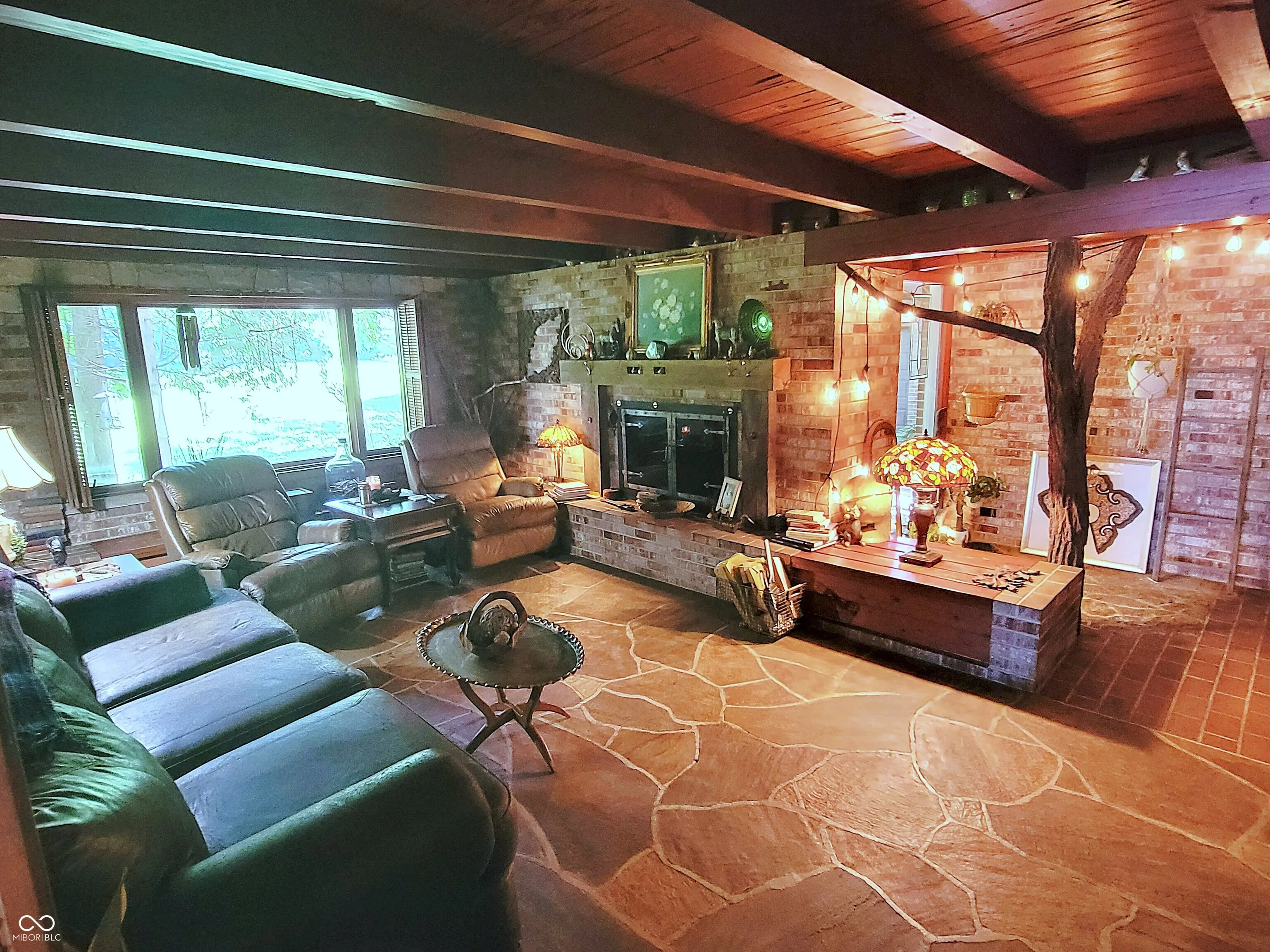 Wow, this property is a must see! Franklin Lloyd Wright Prairie “inspired” 3 bed/1.5 bath ranch property on a little over an acre on the southeast side of Crawfordsville, IN, which is something no one sees in the town limits. This makes an awesome entertaining area for family events and also extra space for a huge garden. Nature was incorporated inside the interior as well as the exterior. Interior boasts natural wood, stone, and brick with some elements of outside wood inside. Owners do have a wildflower garden plot growing beautifully. Well-maintained landscaped surrounding giving one of feeling like they are living in the country. The property is lined with trees and bushes giving a homeowner privacy in the backyard. The home definitely shows pride of ownership! There are 2-1 car attached garages but one of the garages are insulated, finished, heated and cooled and used as extra living space which is considered as a bonus room. The other attached garage at the rear of the house is great for outside equipment, motorcycle/bike storage or even extra storage space for whatever your needs are. This home is so well insulated that heating and cooling is very efficient. Seller have only had to use 1 window AC to cool the entire home as they use some fans to help circulate the air. The wood fireplace is amazing during winter months as it keeps the home cozy, in addition to the hot water radiator heating system that is well-maintained and very cost efficient. On the exterior of the fireplace area, there is door that you can put your wood through to go inside the home and also an ash cleanout is easily accessible on the exterior as well. The entire home was built with brick that has been very well sealed. Natural skylights were added to the bathroom and the dining room area to help bring in more natural light besides all the other natural light that beams inside this home. So much to mention! Must see! Will pass for all loan types and appraise at list price, per appraisal.