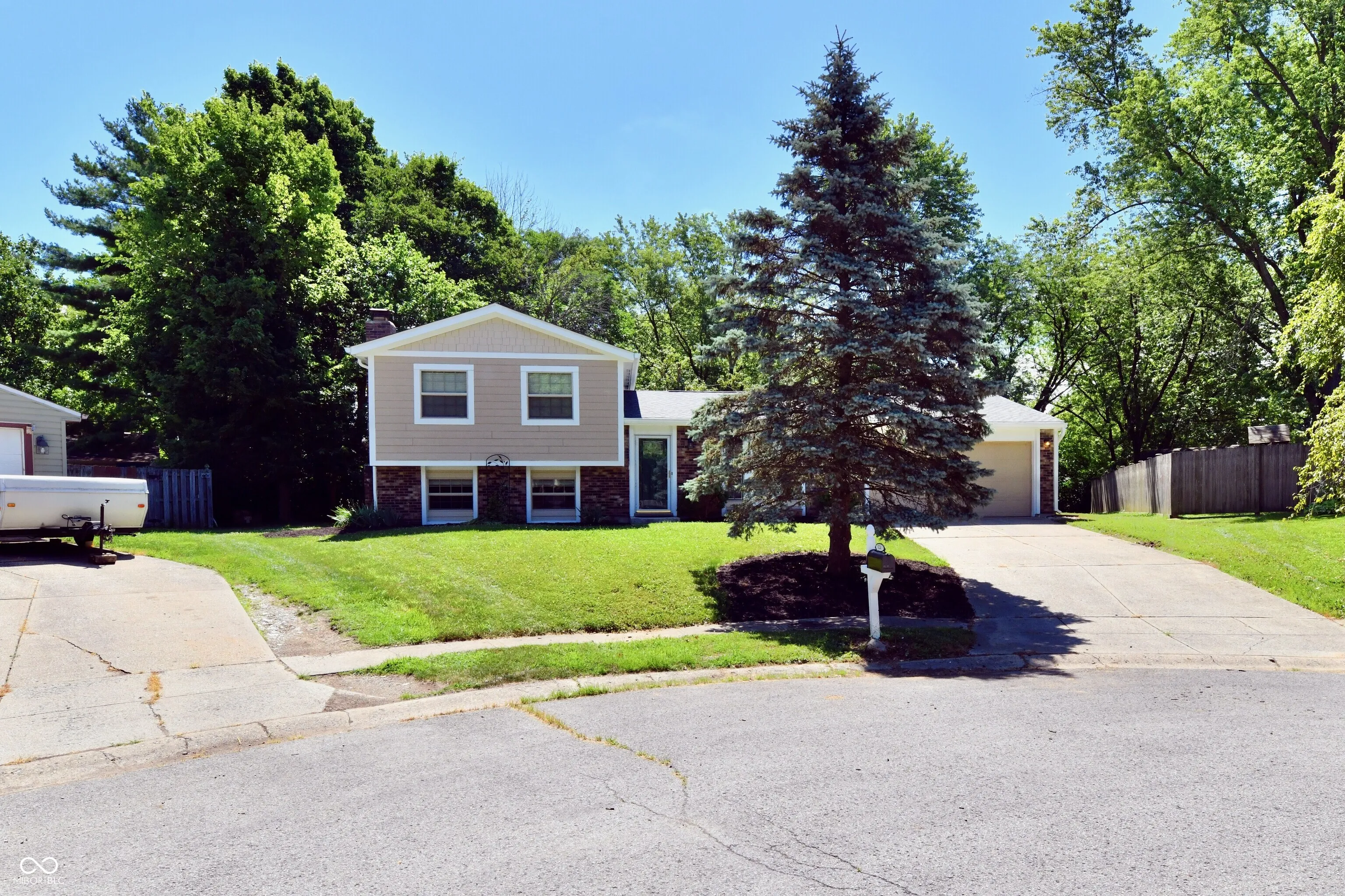 Amazing tri-level with ground floor master suite with a fireplace! Located in Sunblest Farms on a cul-de-sac, and NO HOA!!!. Nice kitchen / dining room, and large laundry room with coat rack and shoe storage. Family room is casual with ample sunlight. Fresh interior paint and main lever has new LVP flooring. Enjoy the large, backyard with shade trees, storage shed and plenty of space to entertain on the deck. Award winning schools, quick access to 116th Street and everything Fishers has to offer. Walkable to restaurants and retail. Don’t wait . . . this home is a gem!