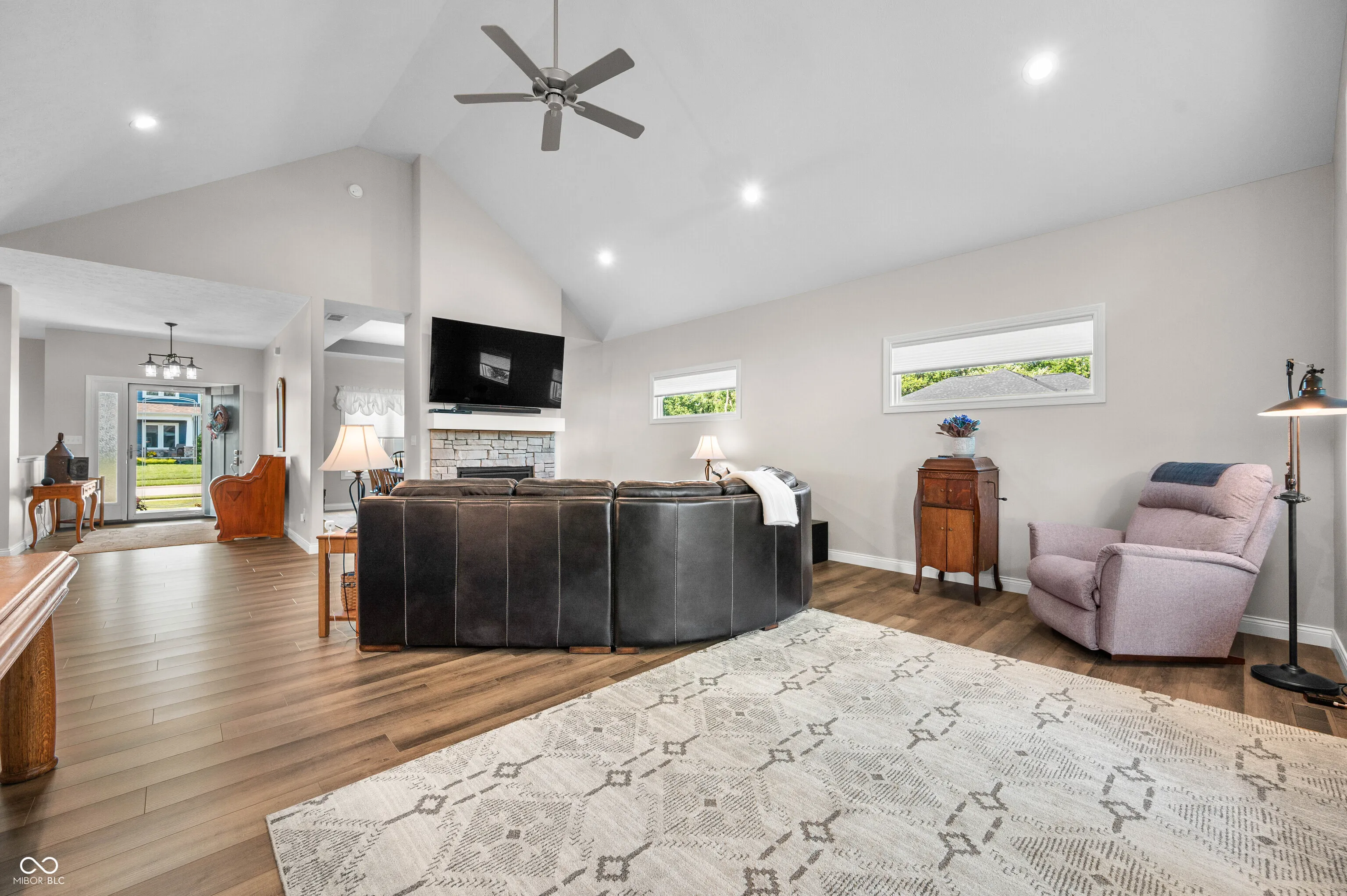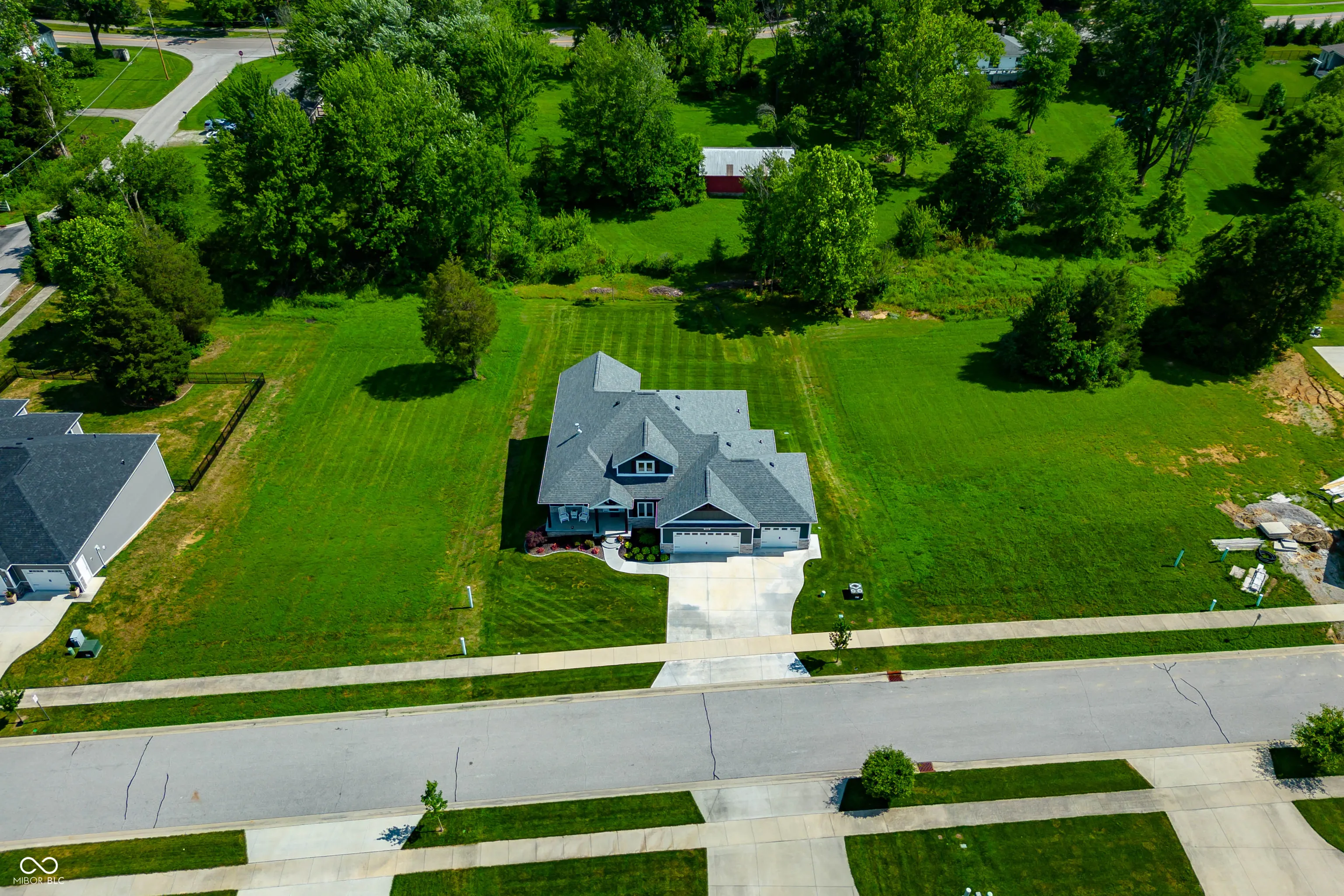 Built in 2022 by Spoon Construction, this home is ready to make your own. Step inside and be greeted by a bright open concept living space featuring a gourmet kitchen with custom cabinets, granite counters, SS appliances, a center island, and a huge walk-in pantry (with California closets shelving) and a separate nook for making your morning coffee. The large family room and formal dining room are separated by a 2-sided fireplace, perfect for those cozy nights. The covered screened deck is the ideal place to relax and boasts a gas firepit table to take off the chill during those fall evenings. The primary suite features a tiled walk-in shower, separate stand-alone bathtub, and a large walk-in closet with shelving by California closets. Finishing up the main level is a laundry room with a wall mounted ironing board, wall cabinets and sink, along with another full bathroom, and an oversized 3 car garage with epoxy flooring and utility sink. The fully finished walk-out lower level consists of a large rec room with rough-in plumbing for a bar area, a separate office, two further bedrooms, a full bathroom, large mechanical room, and a bonus room that could be ideal for a theater room. Walking out from the lower level you are met with a covered patio area and large backyard. This is a must-see home.