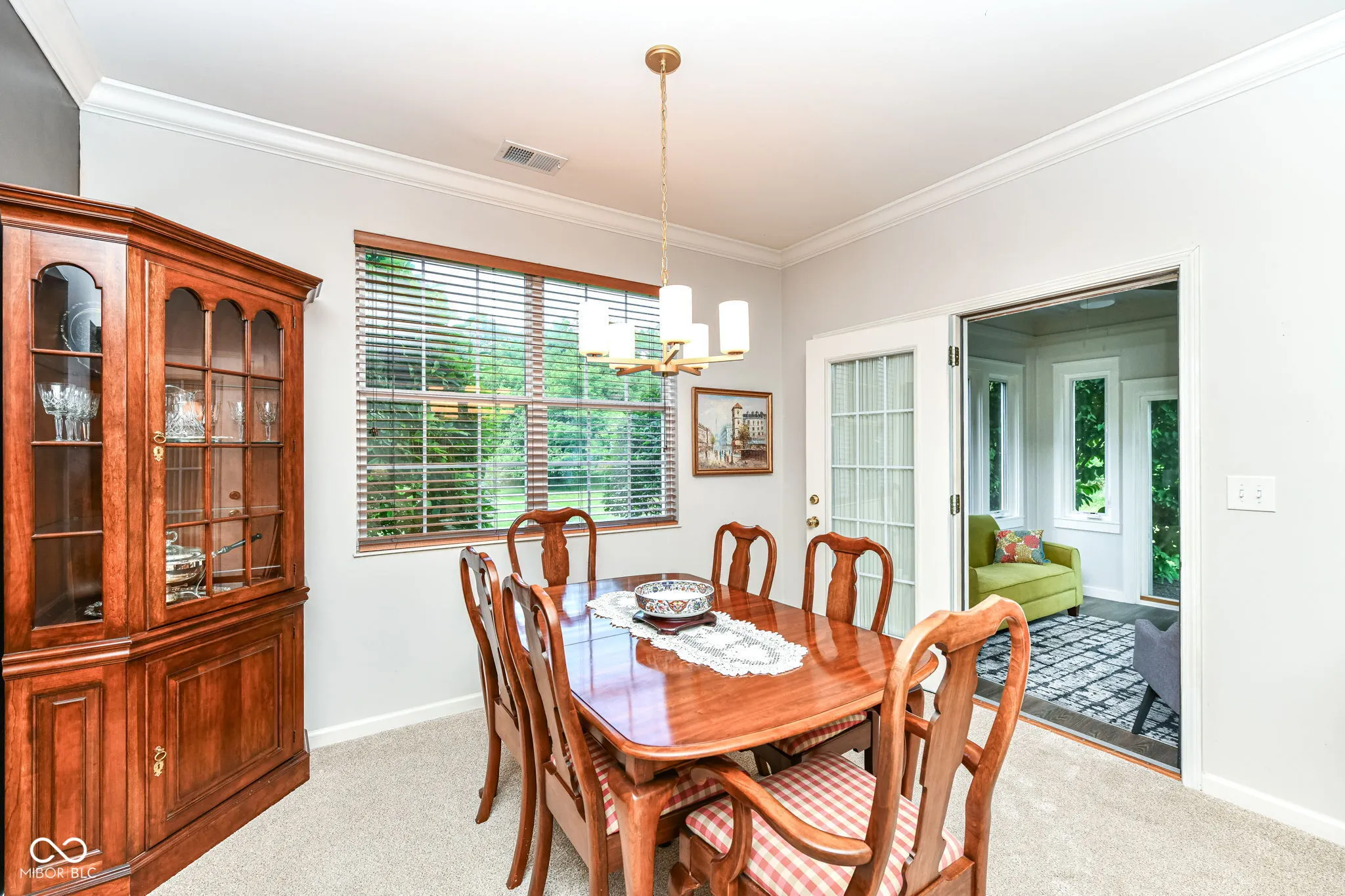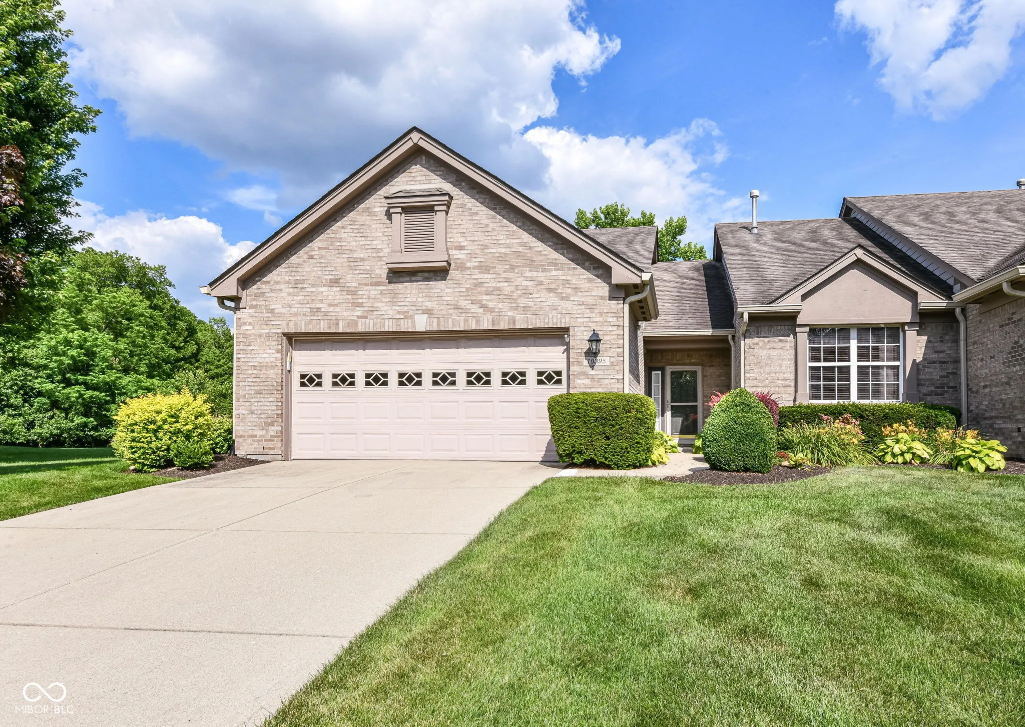 Welcome to this lovely super clean very well maintained maintenance free condo in the sought after section of Muir Woods. This end unit has tons of natural light and privacy. Private green space in the back, with a tree farm behind, and green space on the side make this a prime unit in the community. The sunroom is bright and light and the perfect spot to relax. This kitchen is AMAZING, so cute! Just look at the appliances – gorgeous! Wonderful countertops and the wallpaper is everything! Perfect eat in kitchen space and large pantry. Laundry room is off the kitchen and the garage, nice spot for a “drop zone” with newly added cabinets for extra storage. BOTH bathrooms have been improved including new beautiful flooring, vanities and countertops. Several new and updated light fixtures. So much style in this home! Muir Woods has easy access to the interstate. Close to tons of restaurants, shopping and activities. Community amenities include pool, tennis and exercise.