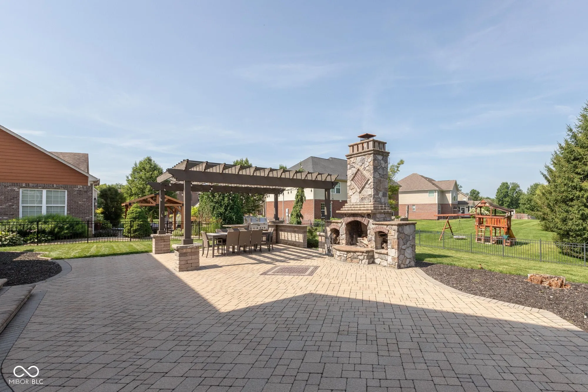 Welcome to this stunning, immaculately maintained 4-bedroom, 2.5-bath home boasting over 5,500 square feet of thoughtfully designed living space. From the moment you arrive, you’ll be captivated by the curb appeal, complete with a covered front patio and newer exterior paint. Step inside to find a dedicated office with elegant glass French doors and custom built-ins, beautifully remodeled in 2023. The gorgeous great room impresses with soaring ceilings, a cozy fireplace, and expansive windows that flood the space with natural light. The gourmet kitchen, remodeled in 2021, is a chef’s dream, featuring a spacious island with seating, double ovens, stainless steel appliances, abundant cabinetry, and a sunny breakfast nook. A formal dining room offers the perfect space for hosting holidays or dinner parties, while a main-level sunroom provides a cozy retreat year-round. Upstairs, you’ll find an enormous bonus room four generously sized bedrooms, including a luxurious primary suite with a spa-like bathroom, completely remodeled in 2024, featuring a soaking tub, glass walk-in shower, dual vanities, and a massive walk-in closet. A full bath serves the additional bedrooms with ease and was also remodeled in 2024. The lower level offers endless possibilities for a home theater, fitness studio, or game room, and plenty of storage. Recent upgrades include a new water heater in 2024 and a water softener installed in 2025. Another showstopper is the fully fenced backyard oasis, complete with a beautiful pergola, built-in outdoor fireplace, patio, and a 4-car garage. It’s an entertainer’s dream and the perfect setting to enjoy cozy Indiana evenings. This home combines timeless elegance with practical luxury. Don’t miss your opportunity to make it yours!