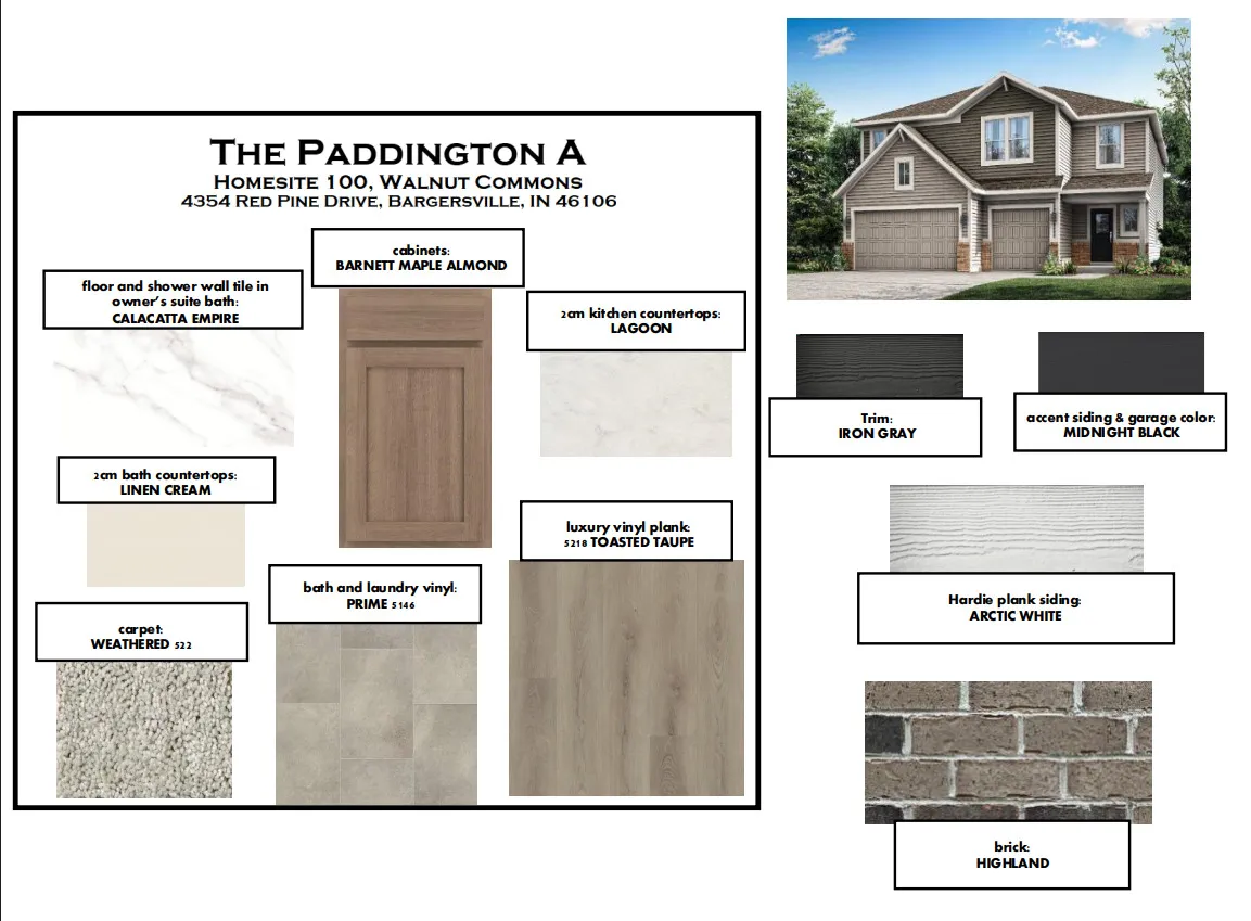 Walnut Commons is a community offering new single-family homes, coming soon to Bargersville, IN. Residents are just moments from local attractions and amenities, including Hickory Stick Golf Club, Independence Park and Indy Paintball Battleground. The Mallow Run Winery and Taxman Brewing Company are just a short drive away, providing a taste of local wines and beers. Students will attend Walnut Grove Elementary, Center Grove Middle School Central and Center Grove High School. Welcome to the Paddington! This beautifully designed home features an inviting main floor with open sightlines that seamlessly connect the great room, kitchen, dining area, and morning room – a layout that’s perfect for entertaining or enjoying everyday moments with family and friends. Just off the dining area, a cozy study with double doors offers the ideal space for work or quiet relaxation. Nearby, a first-floor bedroom with an attached full bath ensures comfort and privacy for overnight guests. Upstairs, you’re greeted by a spacious loft overlooking the stunning two-story foyer. The second floor also includes three generously sized secondary bedrooms, a shared hall bath, and a conveniently located laundry room to help simplify daily routines. The owner’s suite is a luxurious retreat, complete with his and her closets and an oversized, beautifully tiled bath where you can truly unwind. An attached three-car garage offers ample space for both parking and storage, adding to the home’s practicality. And to top it all off, this home is perfectly situated on a large homesite that backs to peaceful greenspace and a scenic pond – the perfect backdrop for relaxing, entertaining, or simply enjoying the view.*Photos/Tour of model may show features not selected in home.