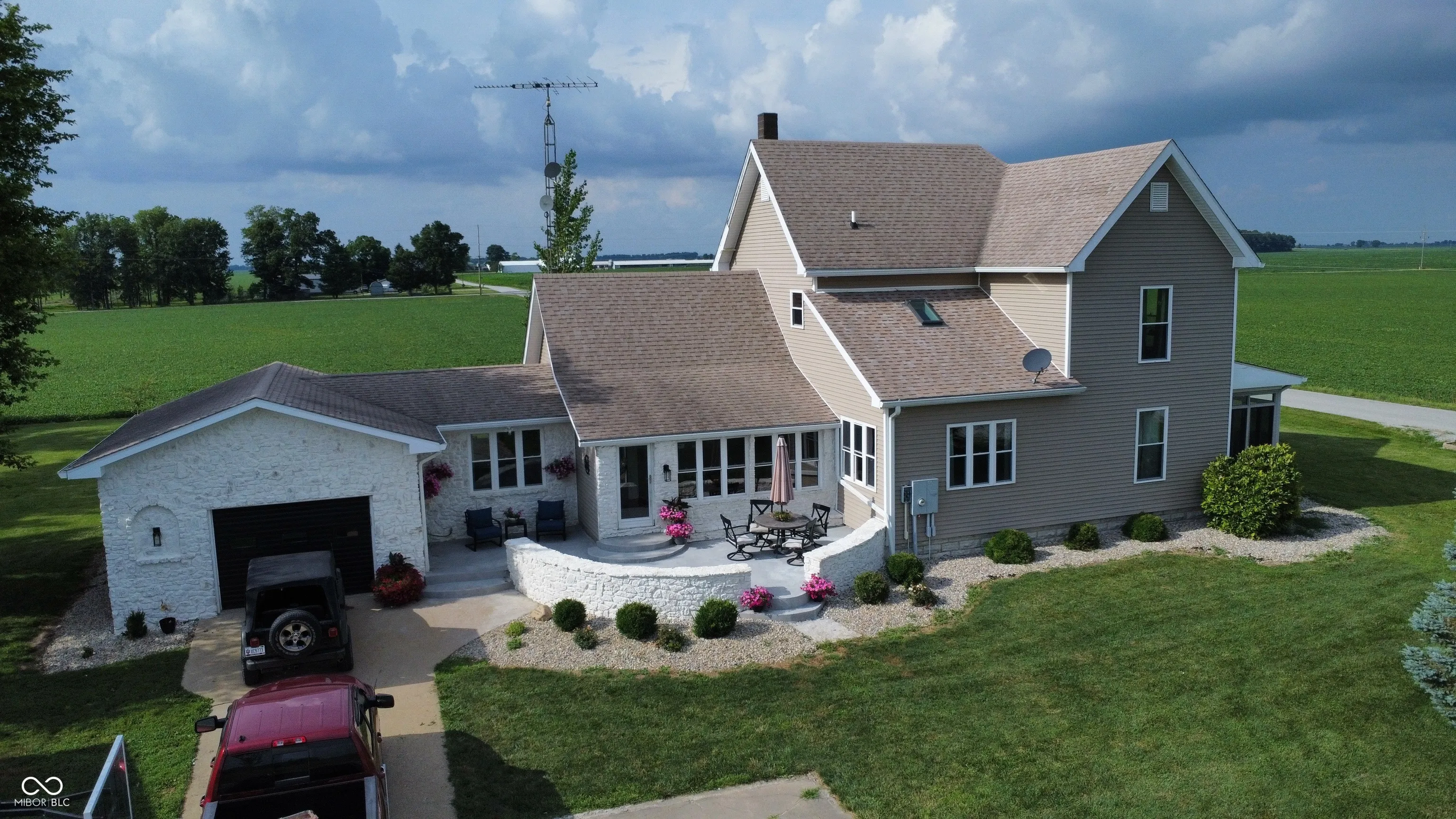 Quiet, Country Living with Modern Comfort, Just Minutes from Town! Enjoy country living in this beautiful 4-bedroom, 2 bath home perfectly situated on 2.34 acres of peaceful countryside! The spacious main-level primary suite offers a private screened-in porch, large walk-in closet, double vanity, and a stunning walk-in tile shower with dual shower heads. The laundry is thoughtfully located inside the master bath for everyday convenience. You’ll love the open-concept, spacious kitchen featuring an island, tons of cabinet space, and a bright dining area perfect for family meals and entertaining. The home also features beautiful hardwood floors in the oversized living room and primary bedroom. Dual-zone HVAC with separate systems for each floor provide energy efficiency and perfectly customized comfort. You’ll find lots of storage with the massive 40X60 pole barn/tool shed – perfect for hobbies or a workshop! This home offers space, privacy, and flexibility–ideal for families, hobbyists, or anyone looking for a little extra room to spread out. Hurry won’t last!