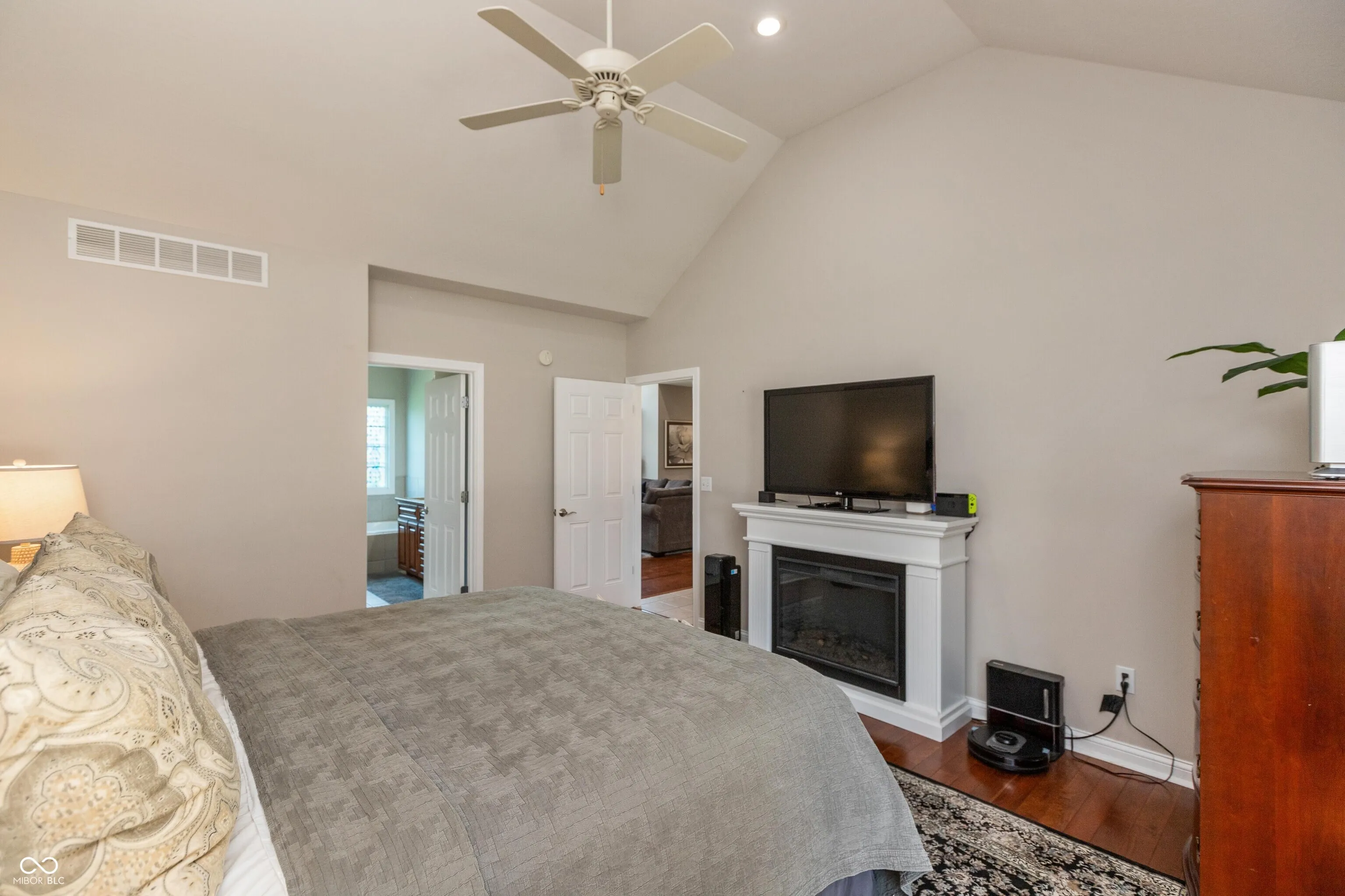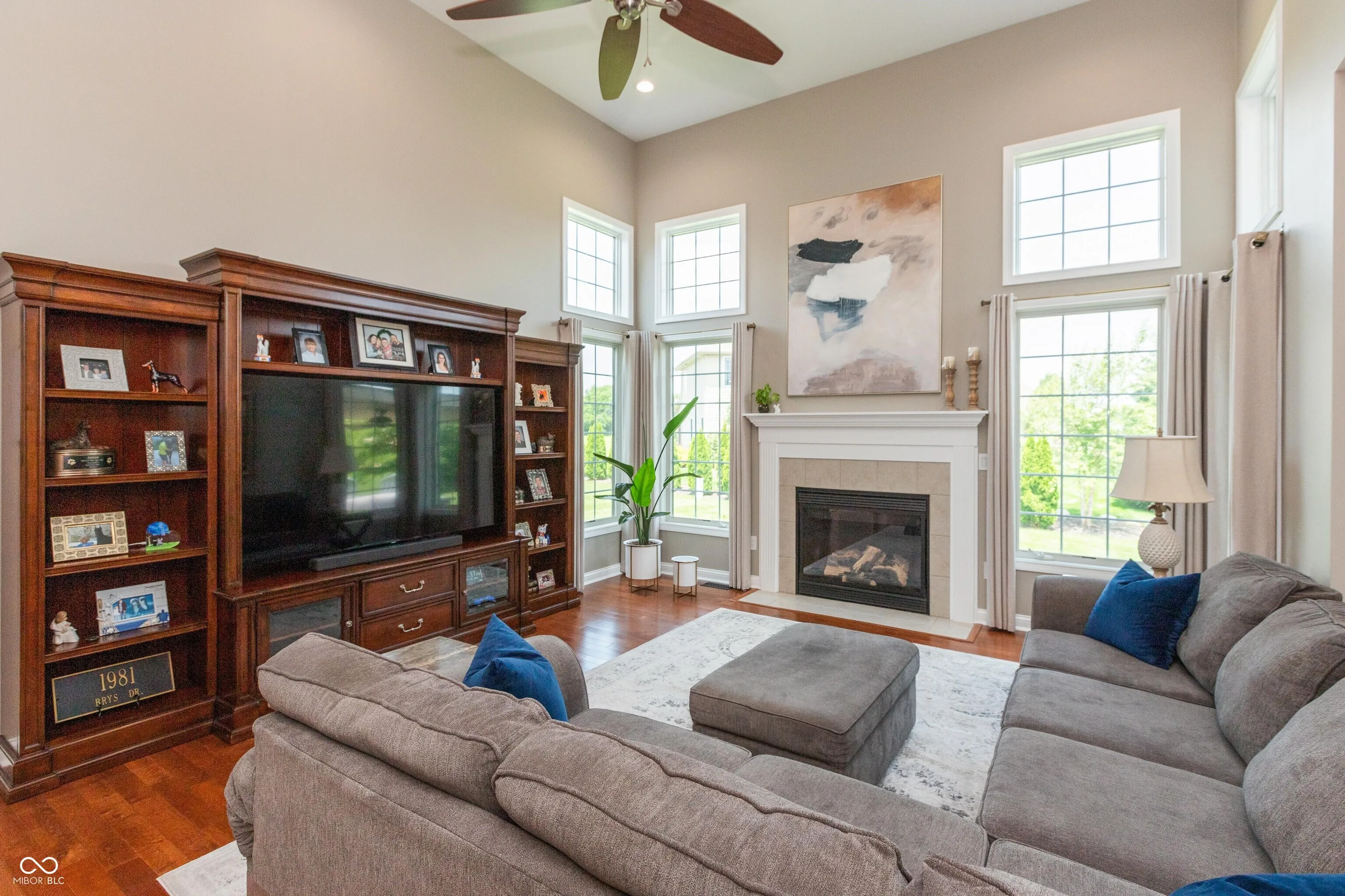 Gorgeous 5 BR, 3.5 BA brick and vinyl home featuring a FINISHED BASEMENT located in the Parkside Elementary School district; tiled entry opens into a spacious living room highlighted by a gas-log fireplace, 14-ft ceiling and beautiful oak engineered hardwood floor; applianced kitchen comes complete with an abundance of cherry-stained maple cabinetry with soft-close drawers, granite countertops, stone backsplash, breakfast bar, built-in planning desk plus breakfast area; formal dining room; main-level primary bedroom with pan-vaulted ceiling, oak hardwood floor and walk-in closet also includes a private bath featuring a double-sink vanity with granite countertops, walk-in shower and whirlpool tub; 2nd level of home offers 3 additional bedrooms and full bath plus a huge 22×22 family room with storage closet; BASEMENT features a 41×12 exercise/game room, full bath plus a 5th bedroom/in-home office; dual heating/cooling systems with gas heat plus electric heat pump for 2nd level of home; Andersen double-pane windows; copper plumbing; poured concrete foundation; roof NEW in 2025; 3-car attached garage; irrigation system; covered front and rear porch areas; conversation area with fire pit in rear yard; possession at closing.