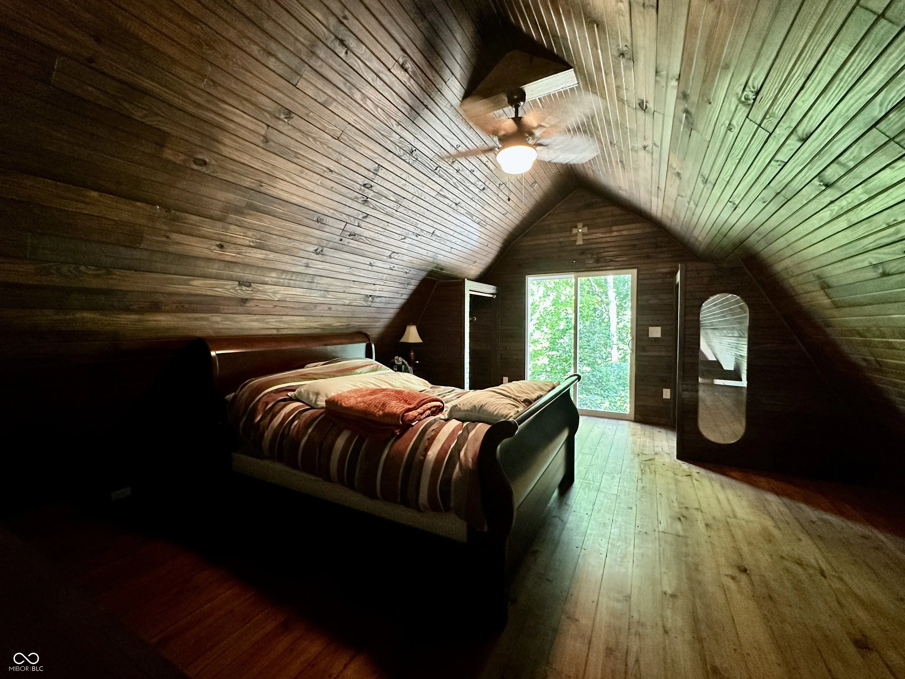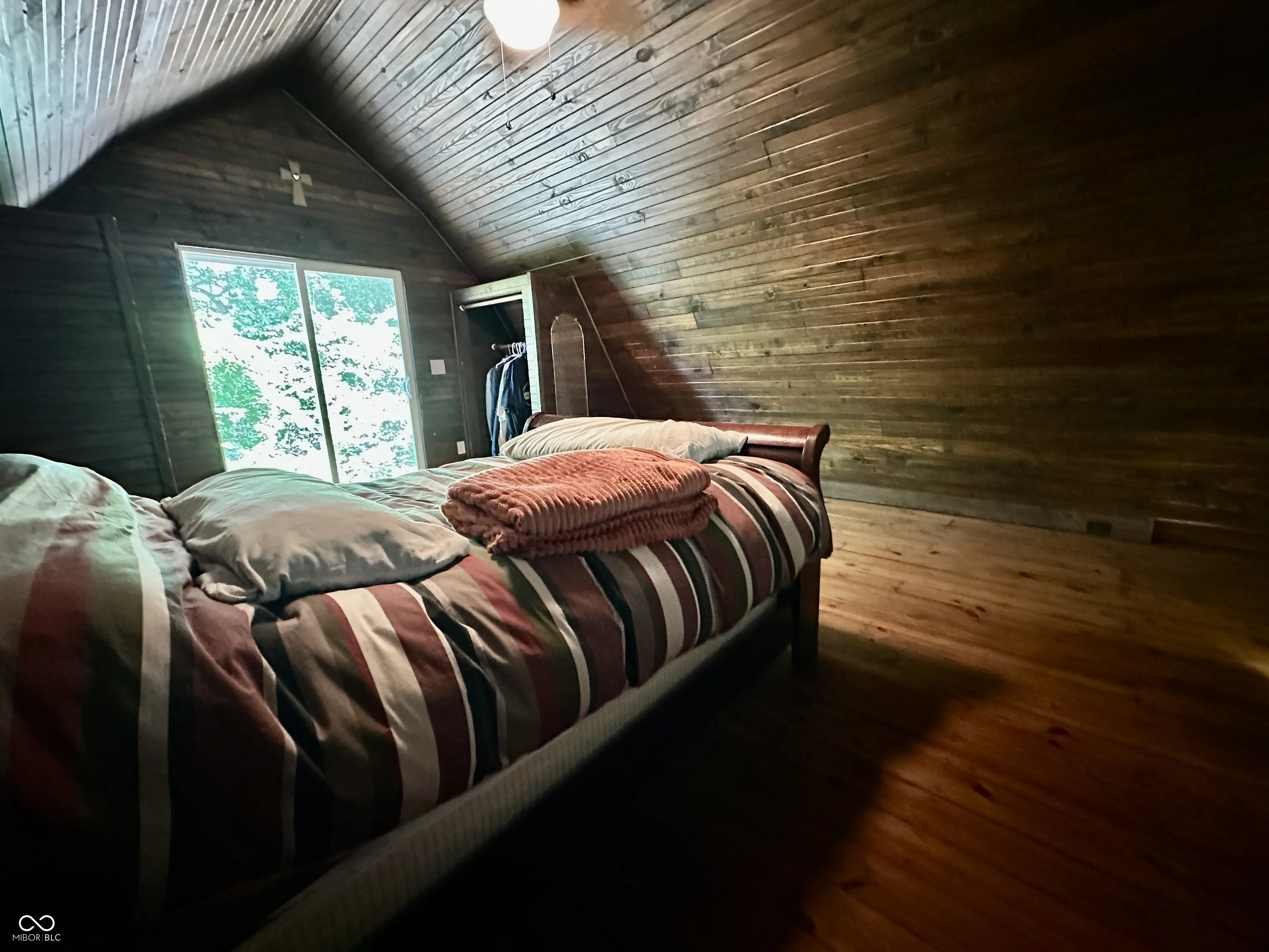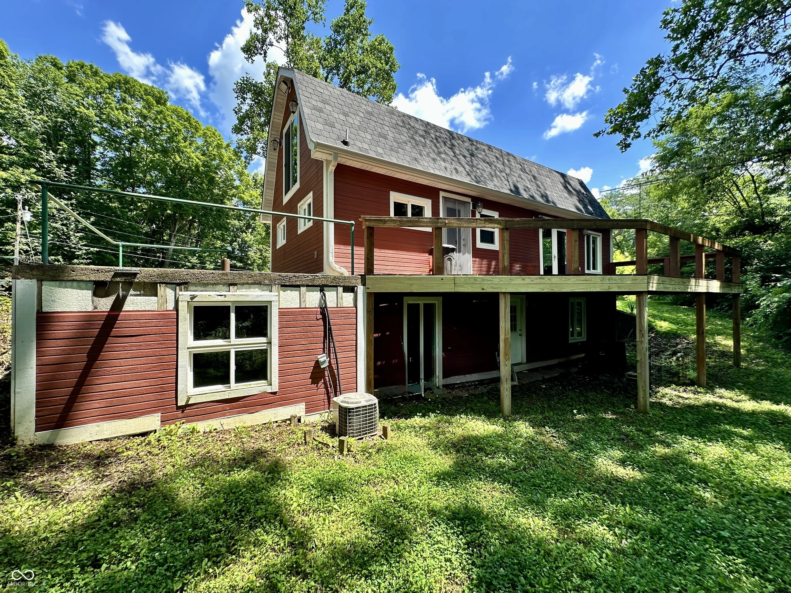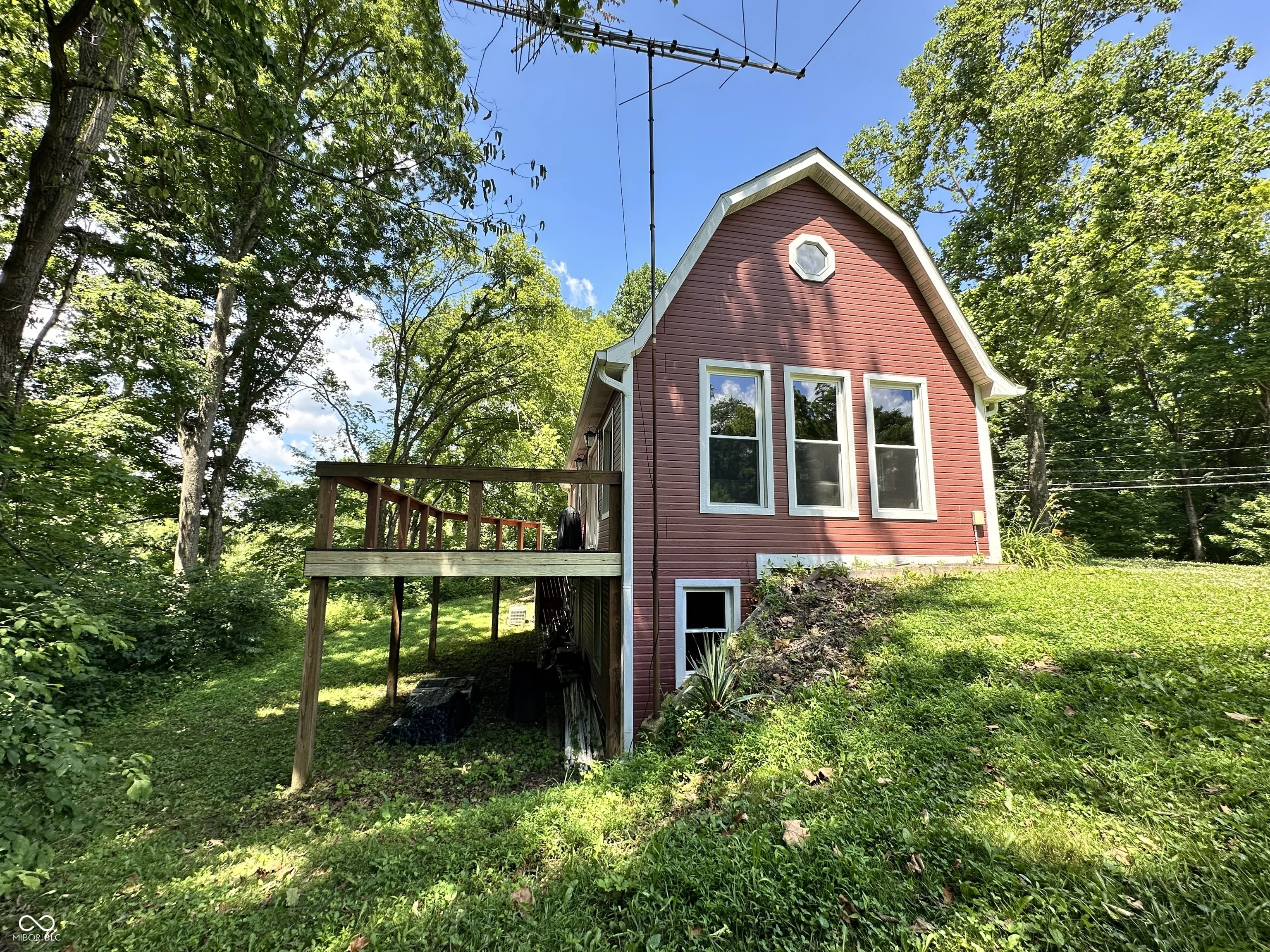 Tucked away on a quiet private lane, this one-of-a-kind home feels like a luxurious treehouse escape. Surrounded by nature and thoughtfully designed to take full advantage of its stunning wooded setting, this home offers peace, privacy, and architectural charm that’s hard to find. Step inside to an airy, open-concept floor plan highlighted by soaring cathedral ceilings, dramatic wood beams, and expansive windows that blur the line between indoors and out. The spacious great room flows effortlessly onto a large deck, perfect for morning coffee, evening sunsets, or simply soaking in the serene forest views. The heart of the home is the beautifully updated kitchen, featuring handcrafted Amish cabinetry, sleek stainless steel appliances, and a cozy dining nook that invites conversation and comfort. Hardwood floors run throughout the main level, adding warmth and continuity to the space. Upstairs, the loft serves as a stunning primary bedroom retreat, complete with custom built-in bookshelves and tree-top views. The main bathroom has been fully renovated with modern finishes, offering a spa-like experience in your own private hideaway. The walkout basement is brimming with potential, ready for your vision, whether it’s additional living space, a studio, or a guest suite. It already includes the second bedroom, laundry area, and a dedicated workshop space for hobbies or storage. Whether you’re looking for a full-time residence or a tranquil getaway, this home offers an unmatched combination of natural beauty, thoughtful updates, and rustic charm. Escape the hustle and bustle and experience life among the trees, you won’t want to leave.