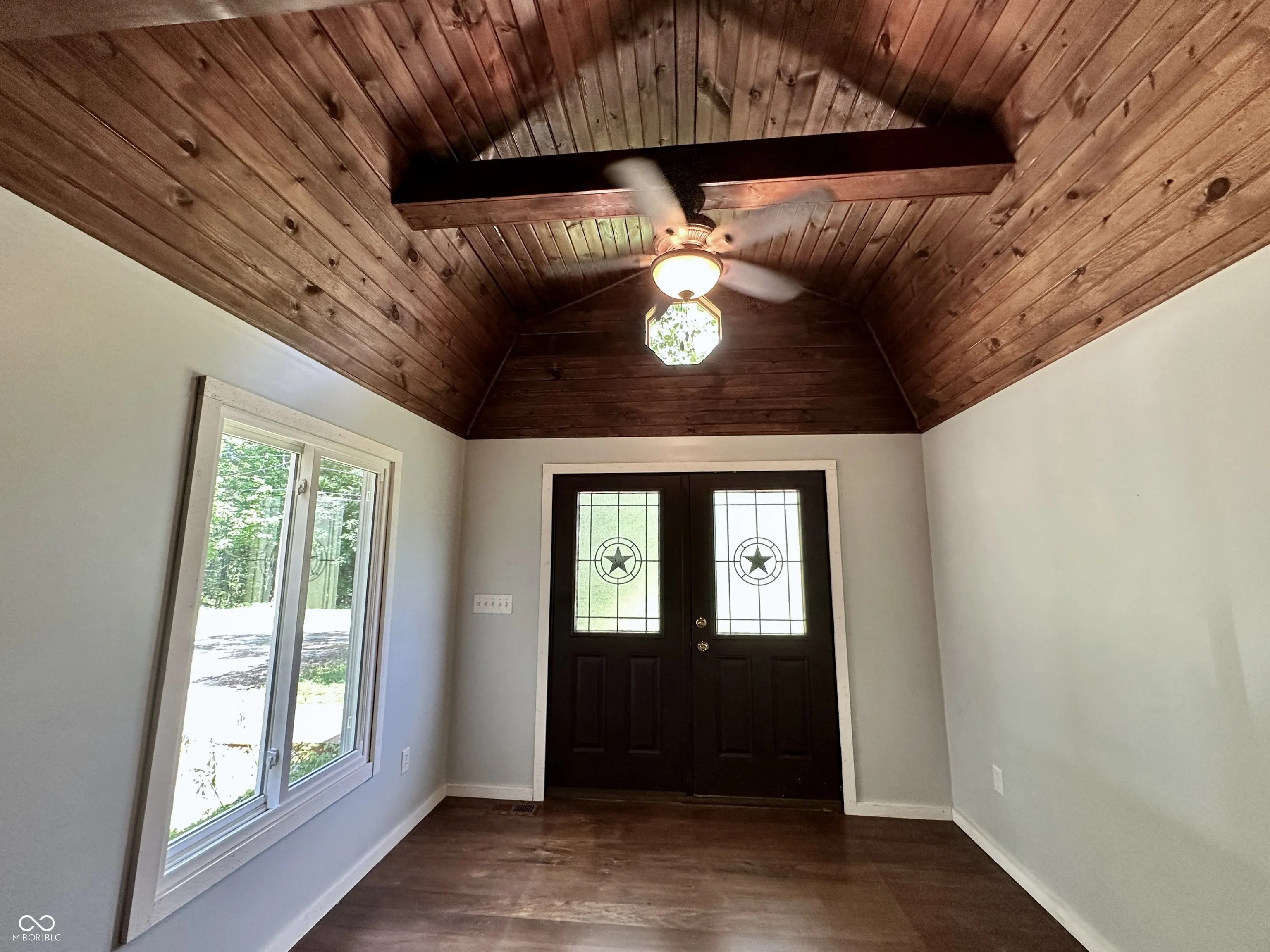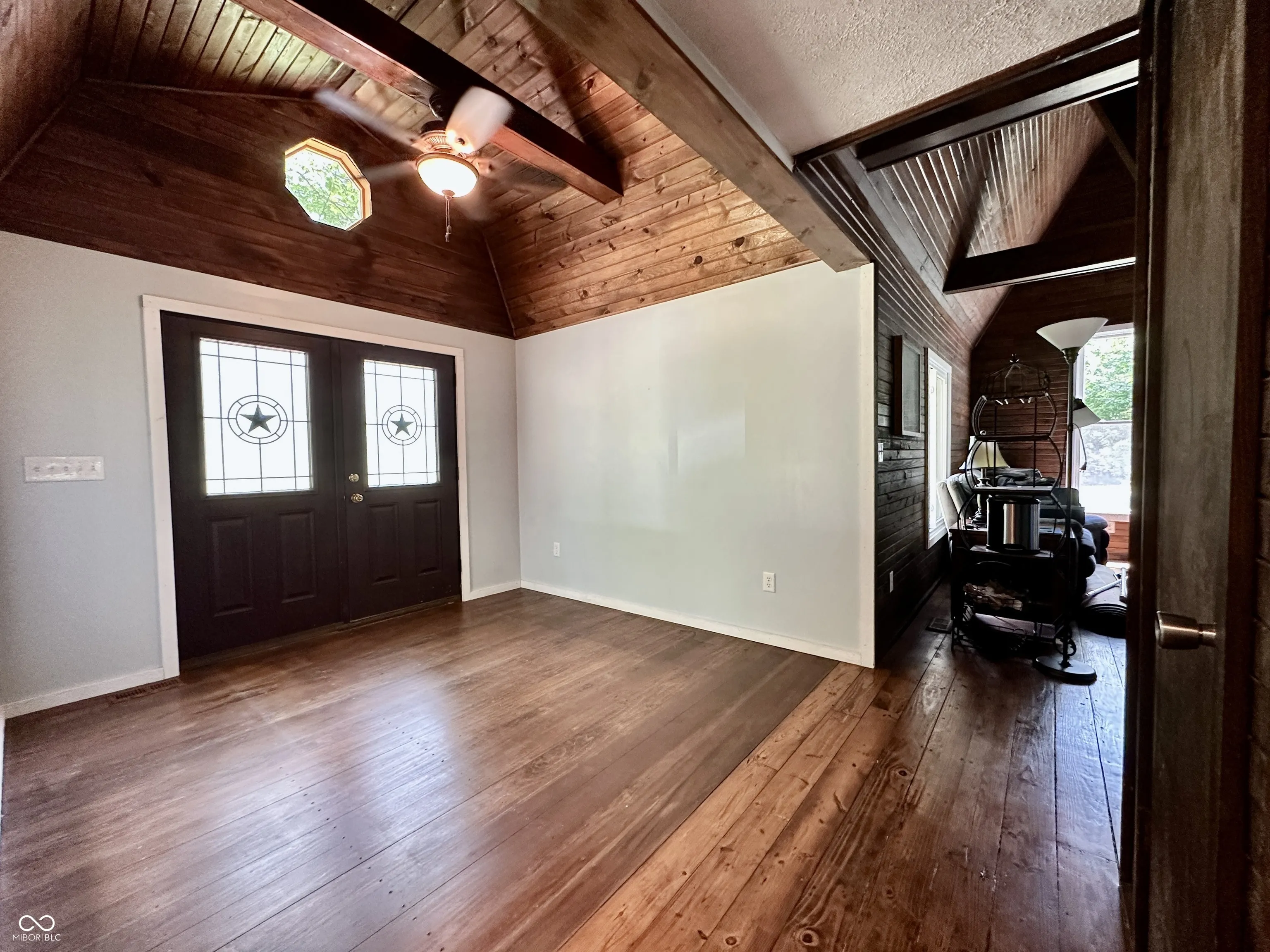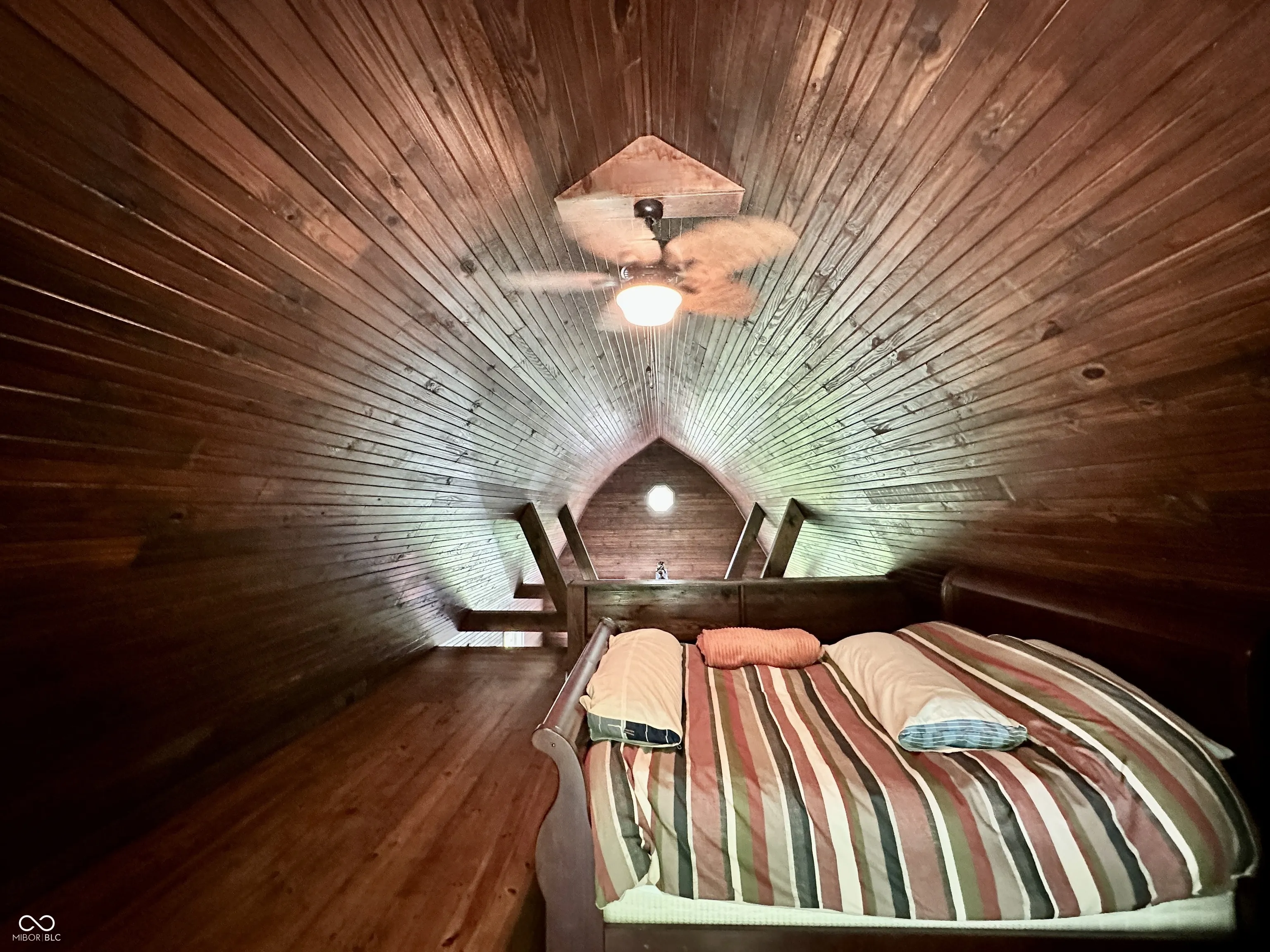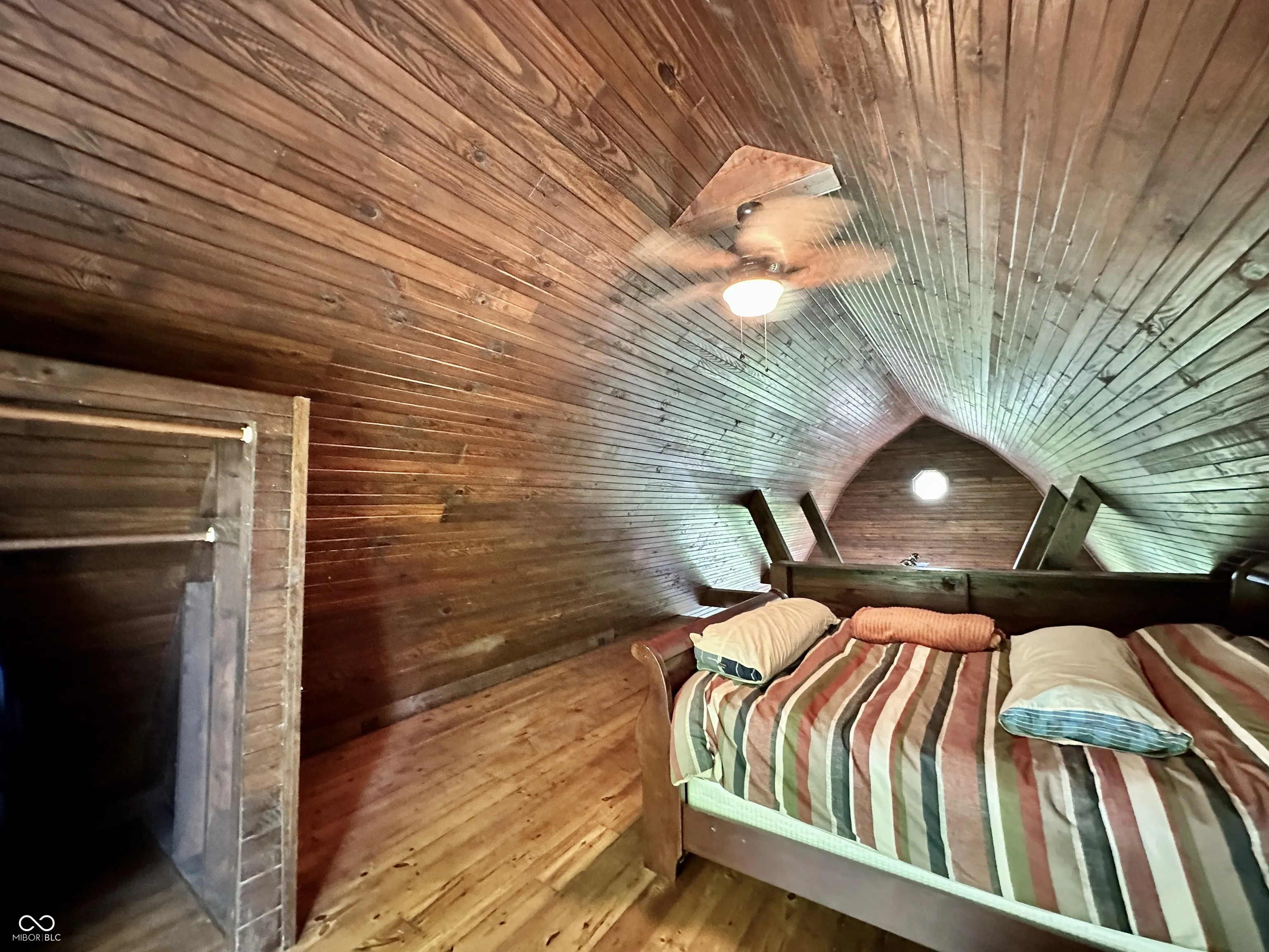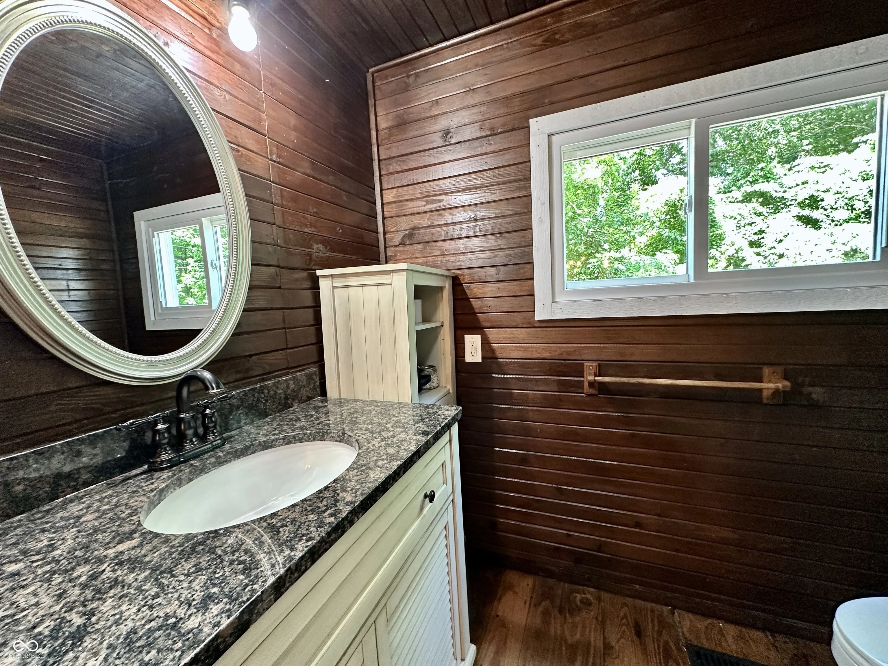 Tucked away on a quiet private lane, this one-of-a-kind home feels like a luxurious treehouse escape. Surrounded by nature and thoughtfully designed to take full advantage of its stunning wooded setting, this home offers peace, privacy, and architectural charm that’s hard to find. Step inside to an airy, open-concept floor plan highlighted by soaring cathedral ceilings, dramatic wood beams, and expansive windows that blur the line between indoors and out. The spacious great room flows effortlessly onto a large deck, perfect for morning coffee, evening sunsets, or simply soaking in the serene forest views. The heart of the home is the beautifully updated kitchen, featuring handcrafted Amish cabinetry, sleek stainless steel appliances, and a cozy dining nook that invites conversation and comfort. Hardwood floors run throughout the main level, adding warmth and continuity to the space. Upstairs, the loft serves as a stunning primary bedroom retreat, complete with custom built-in bookshelves and tree-top views. The main bathroom has been fully renovated with modern finishes, offering a spa-like experience in your own private hideaway. The walkout basement is brimming with potential, ready for your vision, whether it’s additional living space, a studio, or a guest suite. It already includes the second bedroom, laundry area, and a dedicated workshop space for hobbies or storage. Whether you’re looking for a full-time residence or a tranquil getaway, this home offers an unmatched combination of natural beauty, thoughtful updates, and rustic charm. Escape the hustle and bustle and experience life among the trees, you won’t want to leave.