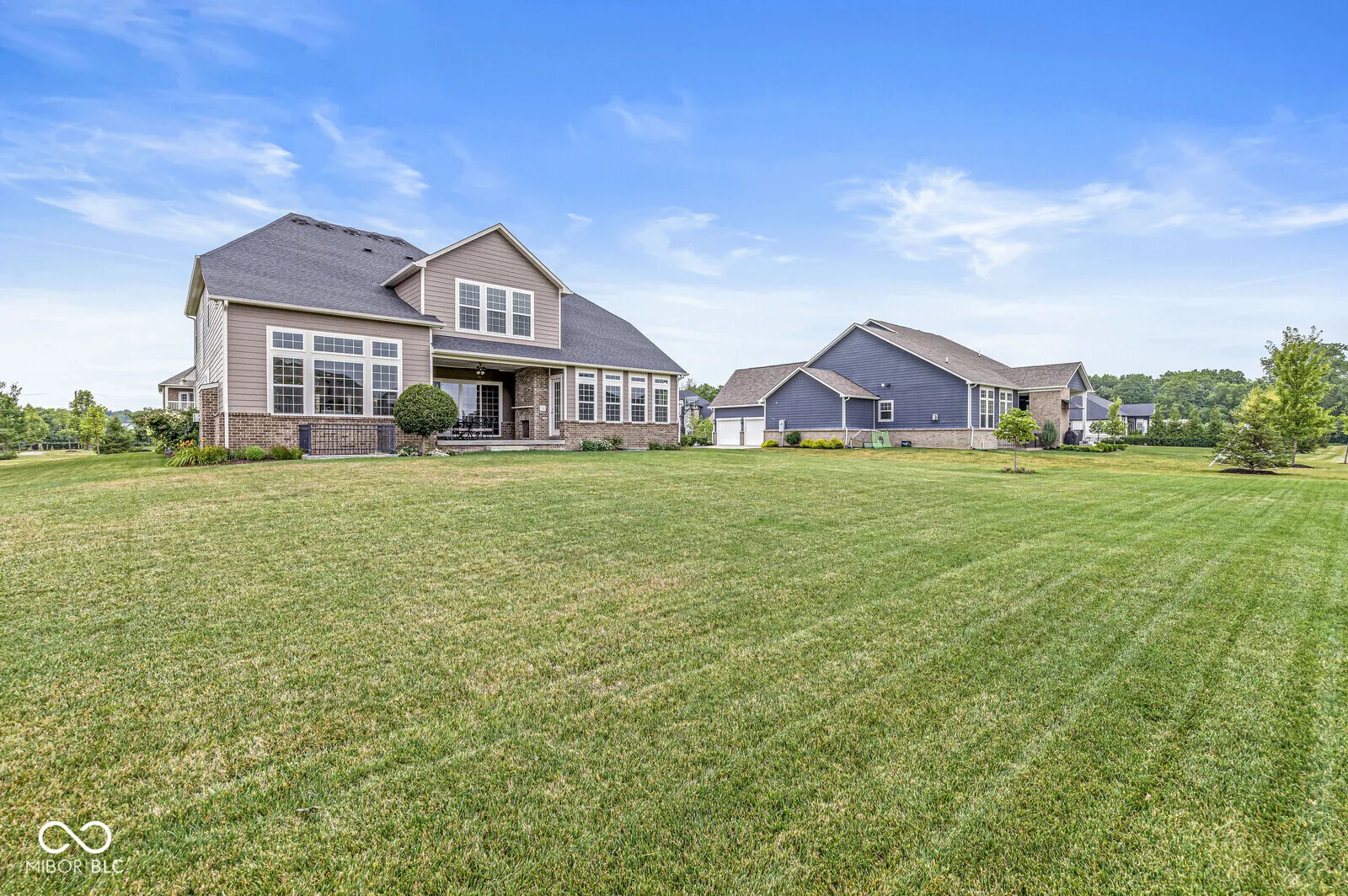 Impressive home with open floor plan & soaring ceilings. Deluxe Gourmet kitchen w/ brand new Wolf appliance including Subzero refrigerator, double ovens & 36 inch gas cooktop, in addition to a large island, walk in pantry, quartz tops, back splash & butler pantry. Expansive great room with cozy gas fireplace. Sunroom has lots of natural light, office on main level with french doors. Luxurious Primary suite has his & her closets, custom tile shower, free standing tub. Additional bedrooms have walk in closets & their own baths. Finished basement with family room/Game area, bar for entertaining, tons of storage, full bath & additional bedroom. Great outdoor space with covered patio & gas fireplace to enjoy your evenings or your morning cup of coffee overlooking the prof landscaped yard w/ irrigation. Home is located on a private cul-de-sac. Exterior was just painted in 2024. Spacious 3 car garage. This home has a lot of upgraded features throughout.