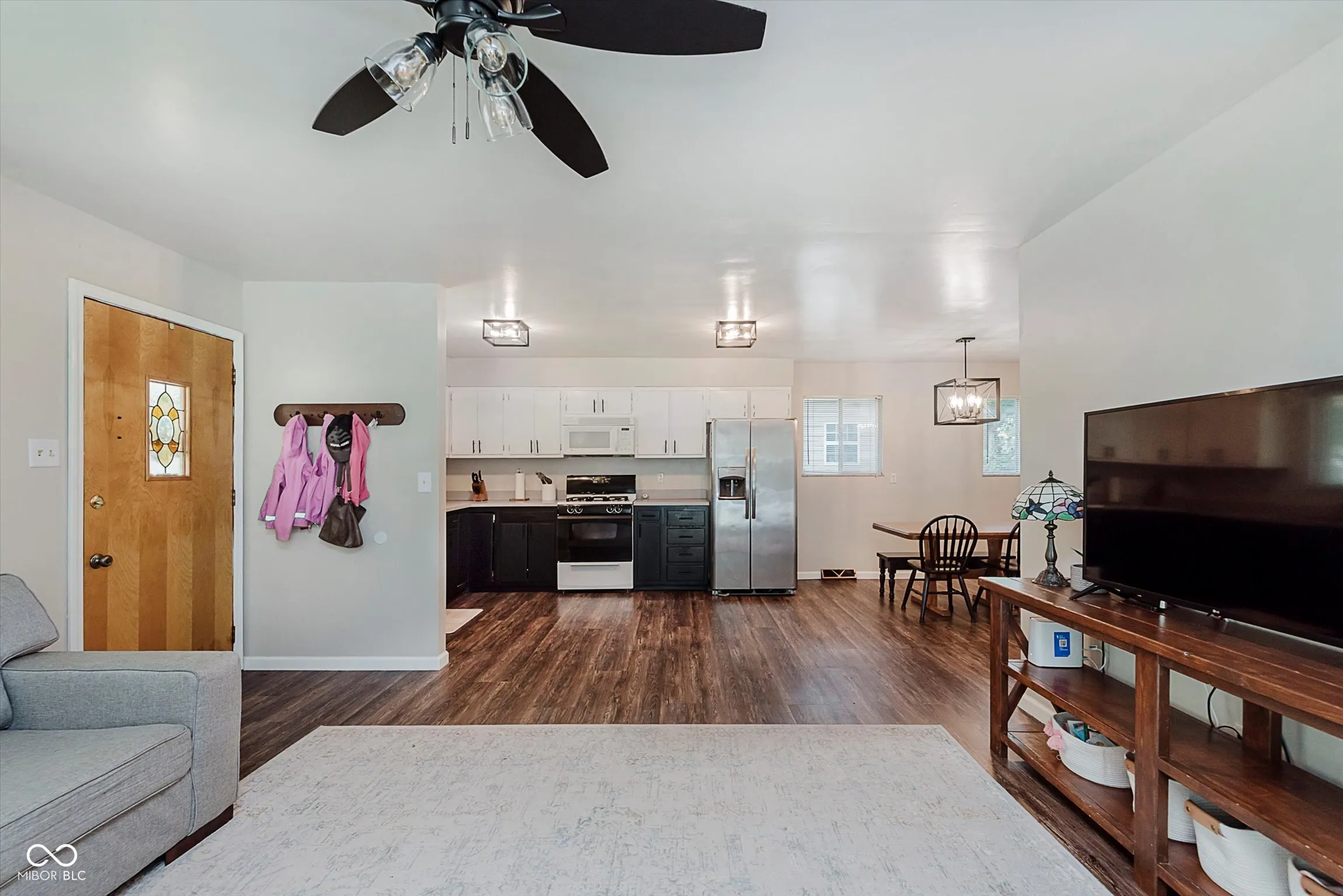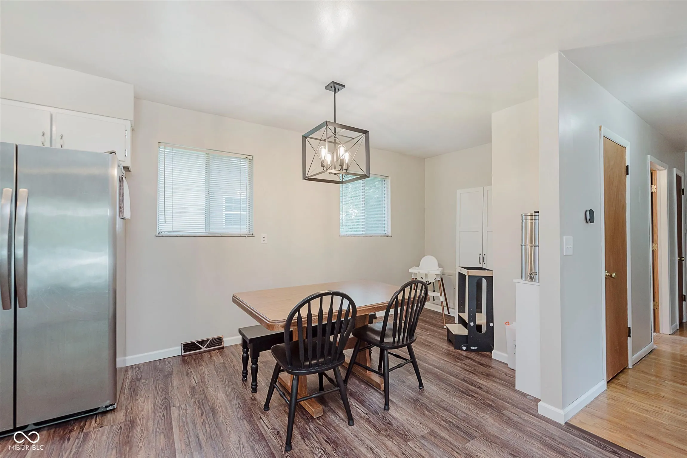 Welcome to your private .75-acre retreat in Perry Township! Step onto the spacious front porch-perfect for morning coffee or evenings with friends-then flow into an open, sun-filled living room ideal for entertaining. The kitchen offers generous counter space, updated lighting, and a cozy dining area for memorable gatherings. Three main-level bedrooms feature hardwoods and serene views, while the upstairs suite is a flexible haven: office, playroom, or guest quarters-you choose! Imagine hosting backyard bonfires, gardening, or relaxing in your fully fenced yard with mature trees. Need storage? The dry, full basement offers endless possibilities for hobbies or home gym. Detached two-car garage and extra shed for all your tools and toys. Quiet street, no HOA, Perry Township Schools-move in and make it your own. Schedule your showing and discover the space, privacy, and lifestyle you deserve!