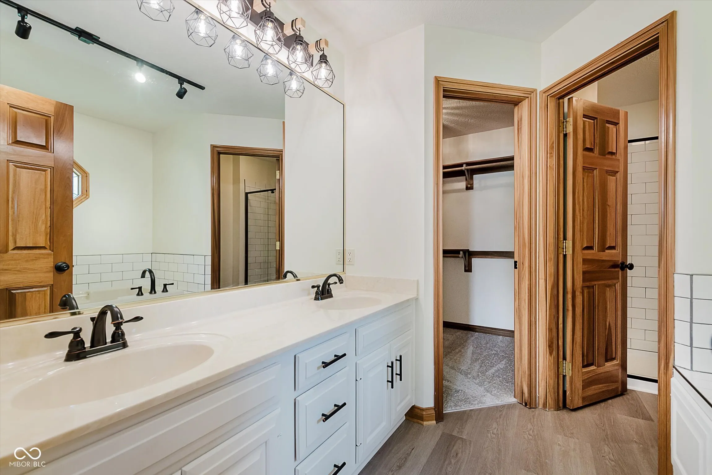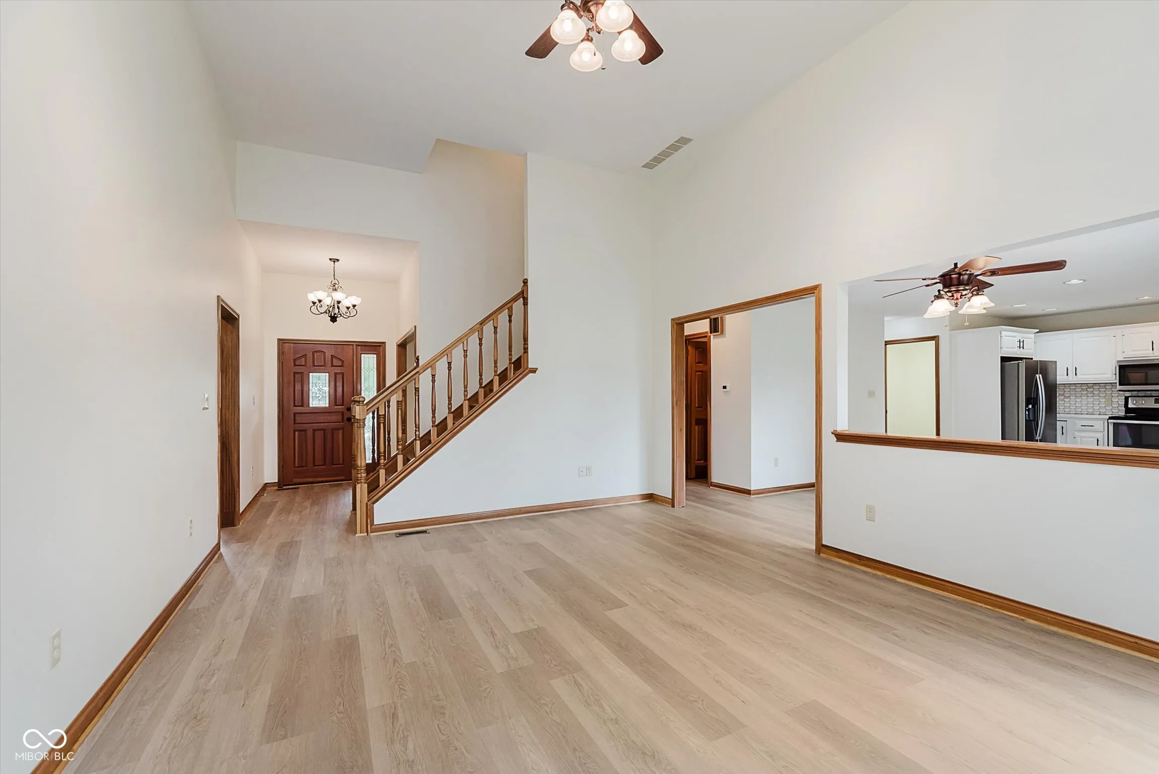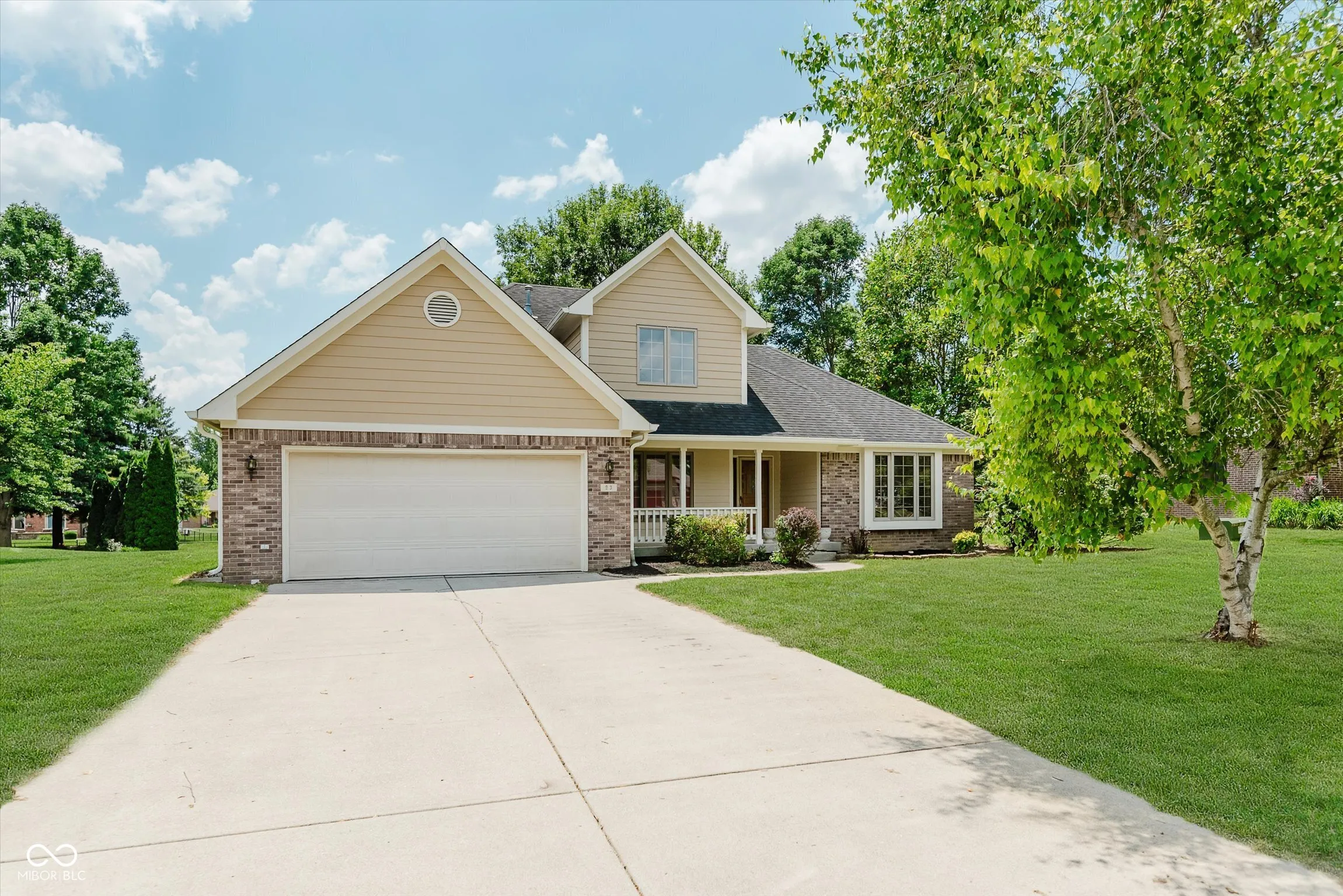 Beautifully updated 3BR, 2.5BA custom built home in Park Forest. This home is freshly updated and move-in ready! Two story great rm with brick front fireplace. Kitchen with new quartz countertops, new tile backsplash, new reclaimed barn wood shelves, painted cabinets & stainless appliances. Formal dining rm with view of covered front porch. Split bedroom floorplan with owner’s suite on main, offering tray ceiling, recessed lighting, large walk-in closet with wood shelving, and updated private bath with double sink vanity, whirlpool tub with subway tile surround & separate subway tile walk-in shower with new glass door enclosure. Laundry rm conveniently located on the main level. Bedrooms 2 & 3 located upstairs with updated full bath offering new tub with subway tile surround and new sliding glass door. Two car attached garage is finished. This home offers brand new LVP flooring in main living areas & baths, and new carpet in all bedrooms. Custom built features throughout including solid core 6 panel doors, stained wood trim, wood casement windows and much more. Sitting on nearly half acre lot with paver patio area, this home is a great find in a highly sought after neighborhood. Clark-Pleasant Schools.