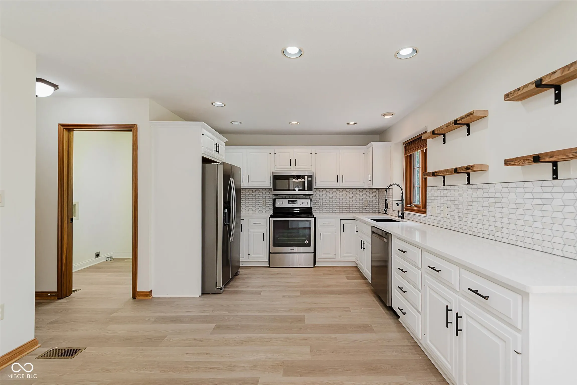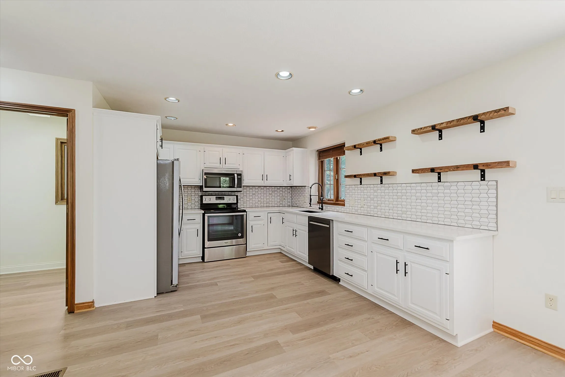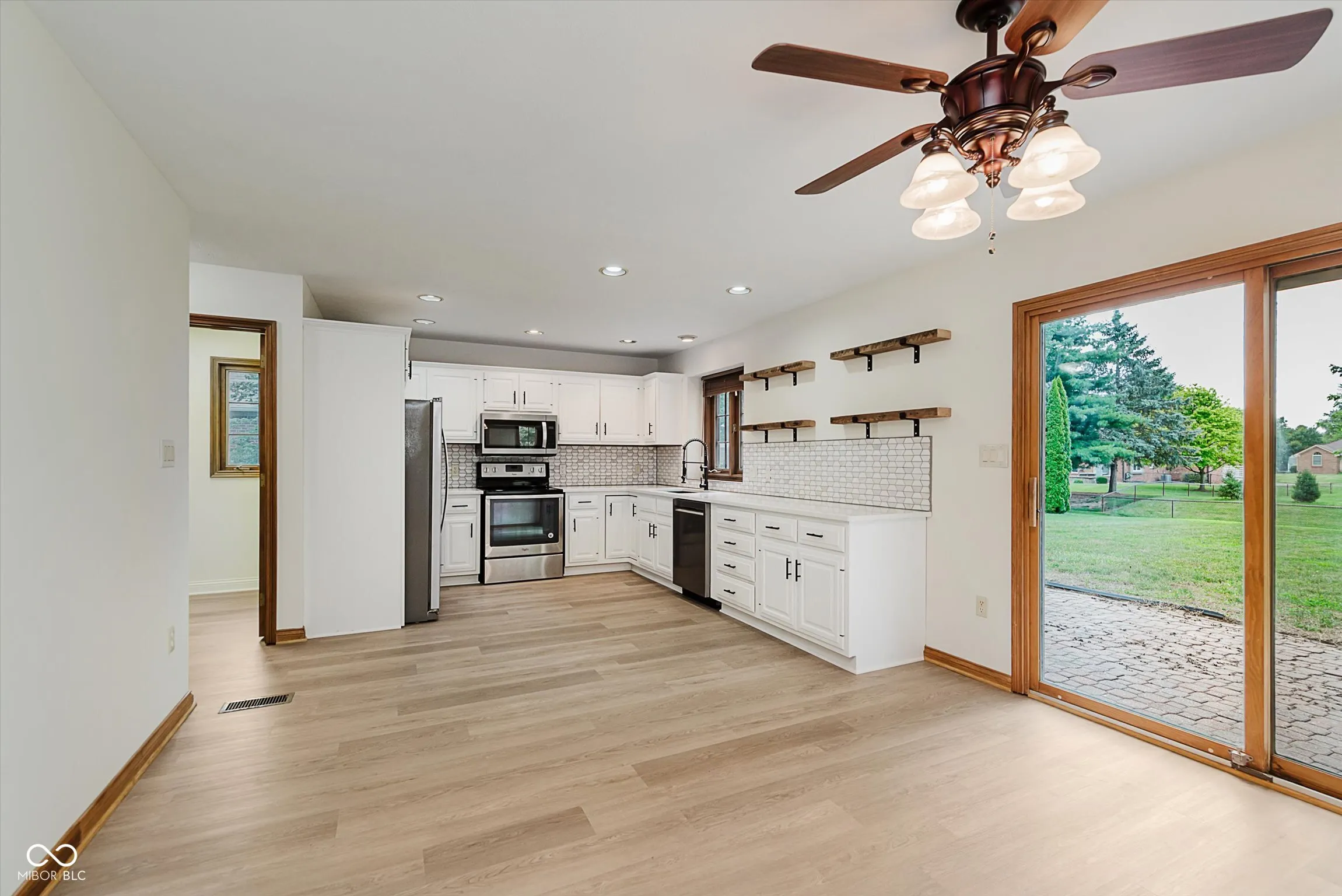 Beautifully updated 3BR, 2.5BA custom built home in Park Forest. This home is freshly updated and move-in ready! Two story great rm with brick front fireplace. Kitchen with new quartz countertops, new tile backsplash, new reclaimed barn wood shelves, painted cabinets & stainless appliances. Formal dining rm with view of covered front porch. Split bedroom floorplan with owner’s suite on main, offering tray ceiling, recessed lighting, large walk-in closet with wood shelving, and updated private bath with double sink vanity, whirlpool tub with subway tile surround & separate subway tile walk-in shower with new glass door enclosure. Laundry rm conveniently located on the main level. Bedrooms 2 & 3 located upstairs with updated full bath offering new tub with subway tile surround and new sliding glass door. Two car attached garage is finished. This home offers brand new LVP flooring in main living areas & baths, and new carpet in all bedrooms. Custom built features throughout including solid core 6 panel doors, stained wood trim, wood casement windows and much more. Sitting on nearly half acre lot with paver patio area, this home is a great find in a highly sought after neighborhood. Clark-Pleasant Schools.
