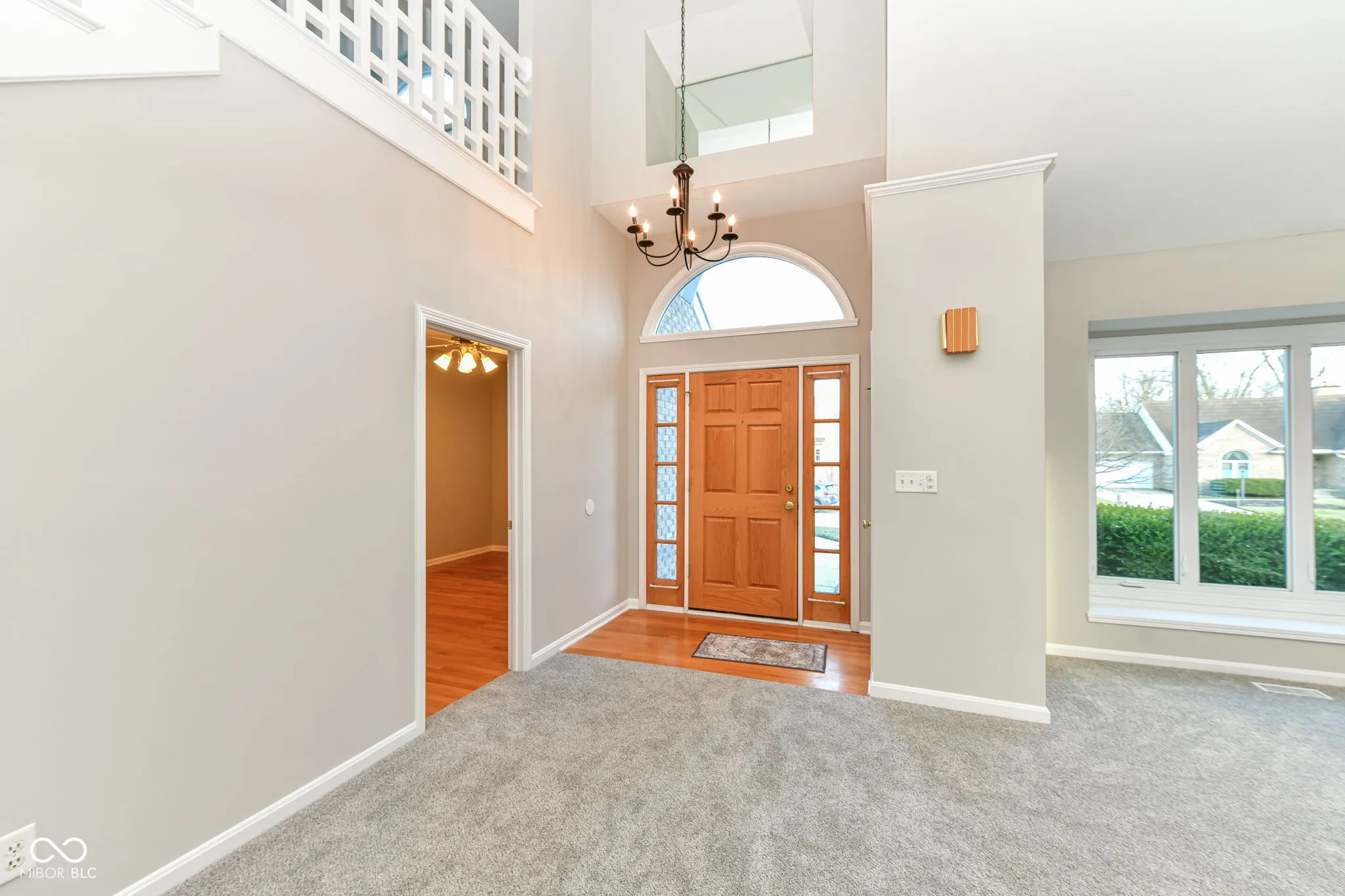Custom Built 1.5 story almost 3,000 sq ft home in Lawrence Township. Pine Ridge Estates is a terrific location just off 96th st and 69. All single family homes built with the true character in mind. As you enter this home you will notice the wide open spaces and look up to see duel skylights bringing in open sunlight. Nice open kitchen with cook top gas range and plenty of room for the top chef. Great room with gas fired fireplace, family room with lots of windows. Main floor Primary bedroom and a large closet and bath suite. Upstairs the 2nd bedroom with full bath. Large Loft with bar high this area. The 3rd bedroom on the main level could also be a perfect office. Main floor laundry and a 3 car garage for all your storage needs. (This home was just freshly painted, cleaned, new pad and carpet installed) Very private back yard with large wooden deck. FYI this home could be a perfect home for In-law quarters.
