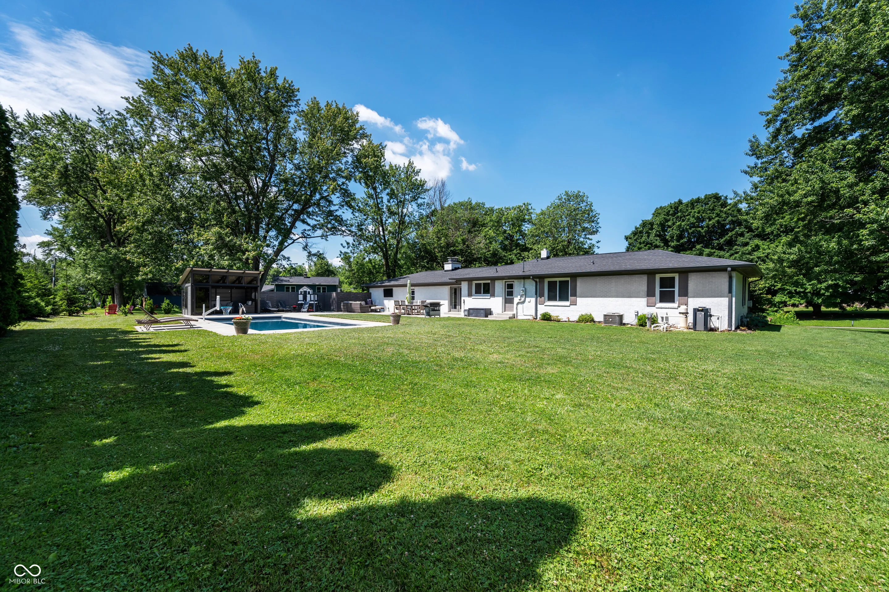 Welcome to 217 West Dr. where you’ve found one of the hidden gems within the Hamilton Southeastern School district! This 4 bed/2bath ranch home with in ground pool sits on a beautiful .66 acre lot with great mature trees. Upon walking in you love the bright and open look of this 1950’s built all brick ranch. Newer LVP runs through out the main areas of this home as you walk through the living room and kitchen. You’ll love the wood burning fireplace in the family room. Step out on to the large back patio where you private oasis awaits! There’s all kinds of space to entertain. Back patio space is set up to have 2 great outdoor living spaces as one is covered by the pool and another is uncovered with an outdoor TV set up. Bedrooms have have all been remodeled and with a newer primary bathroom added. All of this is available in a great older neighborhood with no HOA. This one won’t last long!