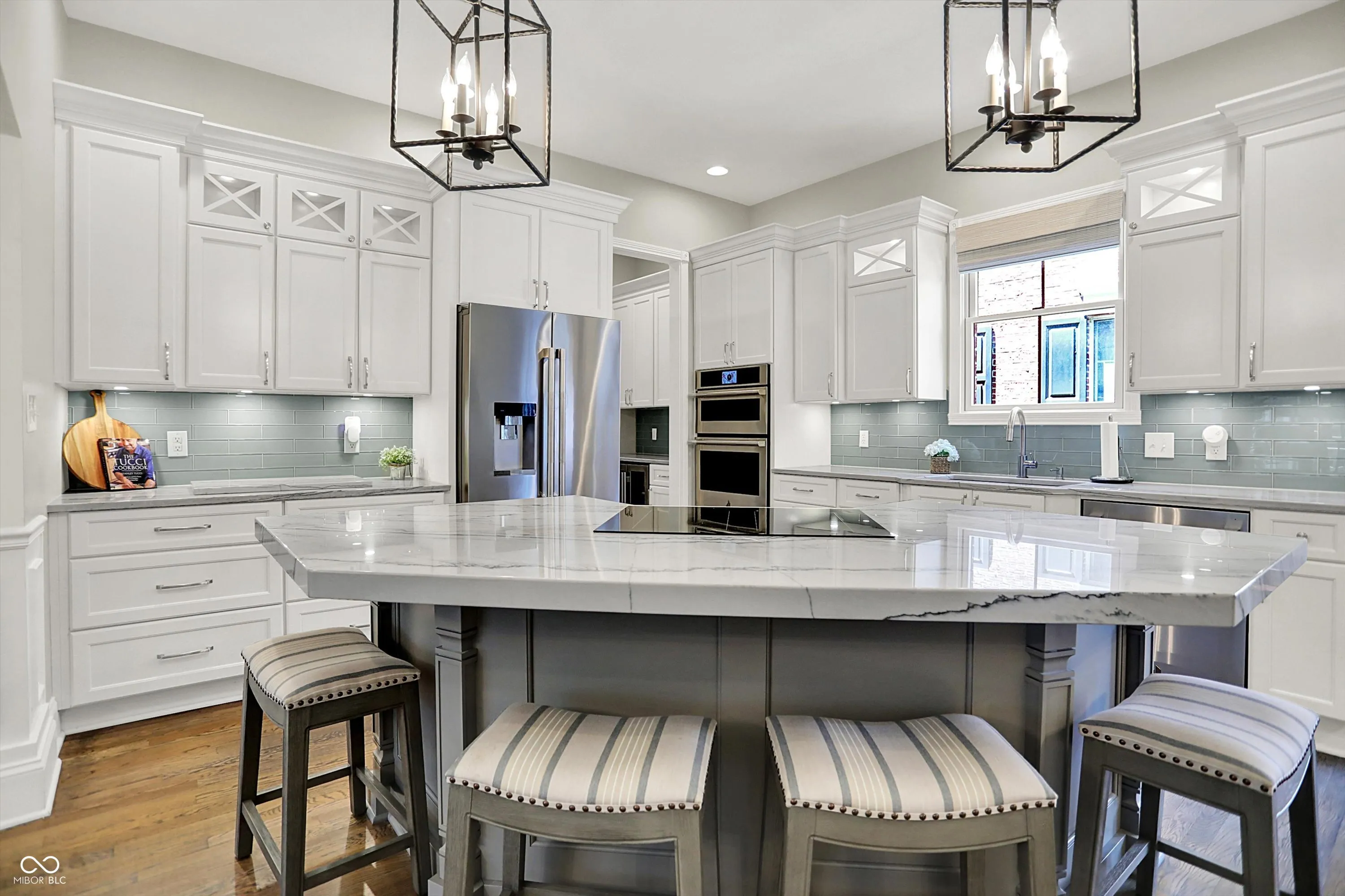 Welcome to this exceptional home in the highly desirable Stonegate neighborhood, where charm, functionality, and location come together seamlessly. From the moment you arrive, the large covered front porch invites you to relax and connect with neighbors as they stroll by. Directly across from the neighborhood pool and clubhouse and just a short walk to local shops and restaurants, this home offers the ultimate in walkable community living. Inside, tall ceilings and elegant rounded archways define the first floor. A dedicated office with built-in bookcases and oversized windows provides a bright and inspiring workspace. The formal dining room features rich trim detail and leads into a butler’s pantry with a beverage refrigerator and an oversized walk-in pantry. The updated kitchen is a chef’s dream, boasting gorgeous quartzite countertops, an induction cooktop, and a large center island, all open to the breakfast area and great room with gas fireplace. Step outside to your private outdoor oasis, featuring a covered back porch, a paver patio, a small grassy area, and a privacy wood fence-perfect for relaxing or entertaining in style. Upstairs, you’ll find the primary suite, complete with a tray ceiling, private second-floor balcony, and a spa-like bath with a walk-in tiled shower, garden tub, and a custom California Closet system that connects directly to the upstairs laundry room. Two additional large bedrooms share a convenient Jack and Jill bathroom. The finished basement features wide stairs, 9-foot ceilings, and abundant living space, including a dedicated exercise room, a bedroom, and a full bathroom. The expansive family room includes a wet bar, beverage fridge, and a freestanding gas fireplace-ideal for cozy nights and entertaining. A spacious 3-car garage with extra storage area completes this thoughtfully designed home. This gem has timeless details, unbeatable location, and top rated Zionsville Schools!