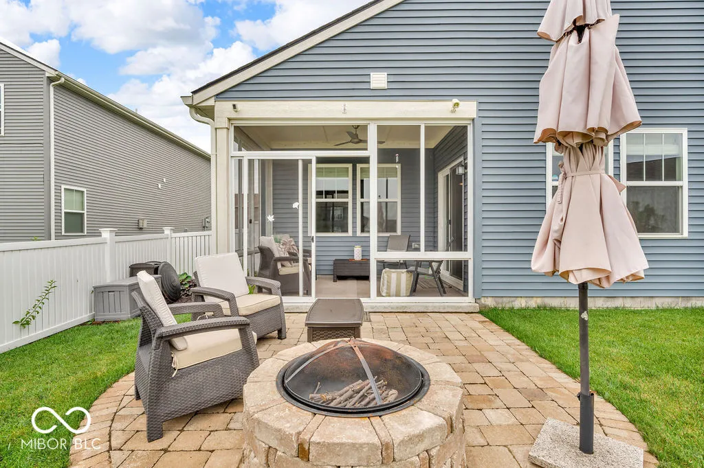 This young, single-story home is ready for its next chapter. The heart of this home is undoubtedly its open floor plan, encouraging a natural gathering space for entertainment and relaxation. The living room features a fireplace, a focal point that promises warmth and ambiance during the cooler months. A large kitchen island anchors the kitchen, providing ample space for meal preparation and casual dining. The kitchen also features shaker cabinets and a backsplash, offering a blend of classic design with modern functionality along with quartz countertops. The primary bathroom features a double vanity and walk in shower, designed for streamlined mornings and peaceful evenings. Enjoy the outdoors on the patio, ideal for dining al fresco or simply unwinding after a long day. The fenced backyard offers privacy and security, while the fire pit sets the stage for memorable evenings under the stars. The screened in porch bathes the home in natural light, creating a tranquil space for reading, relaxation, or cultivating your favorite plants. Residents also have access to a community pool, perfect for summertime enjoyment. Ideally situated with quick access to I-465, I-70, and I-74, this property offers unbeatable convenience for commuters. Just minutes from the Indianapolis International Airport, IU Hospital West, and the iconic Indianapolis Motor Speedway, you’ll enjoy both easy travel and proximity to top local destinations.