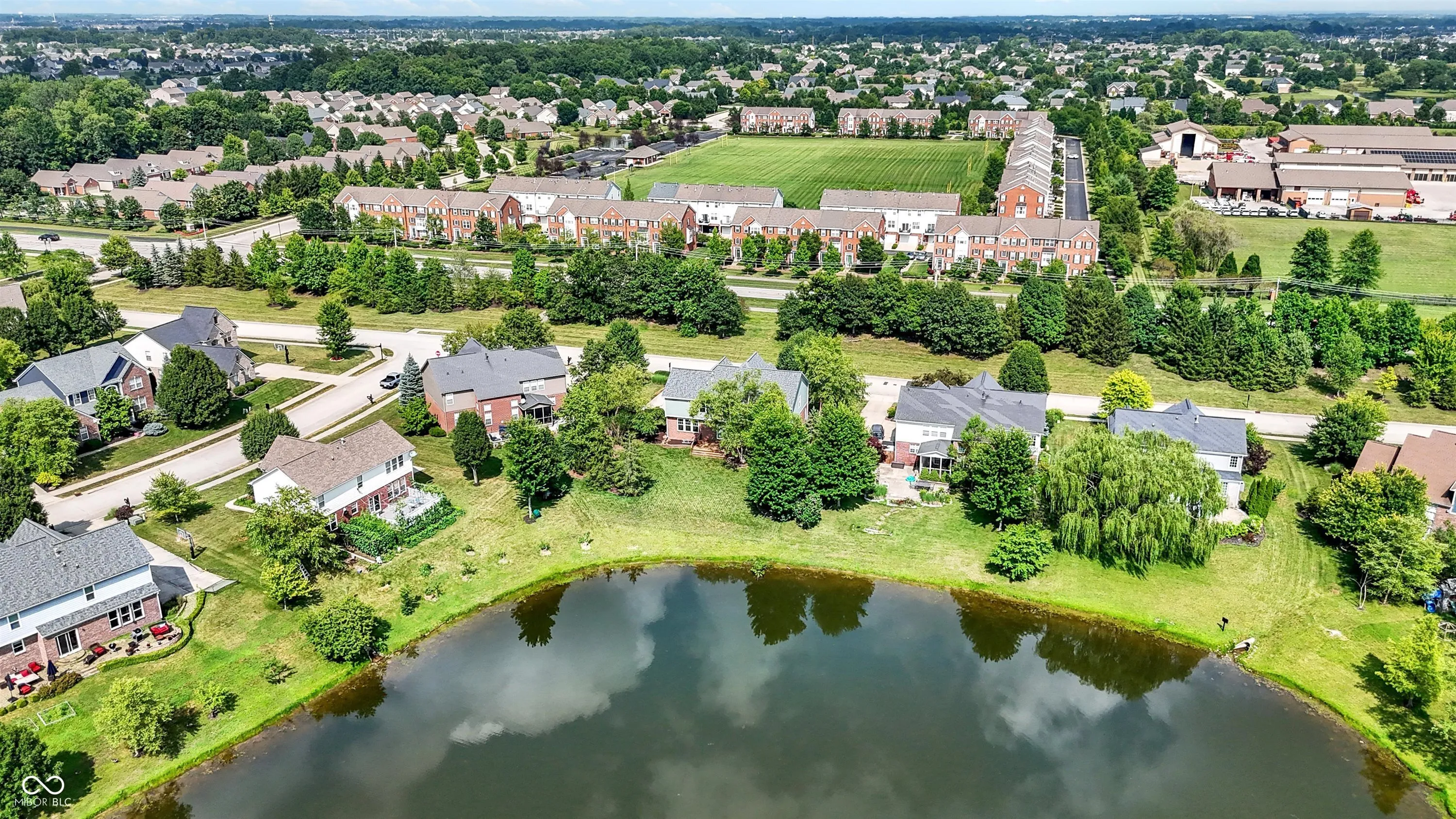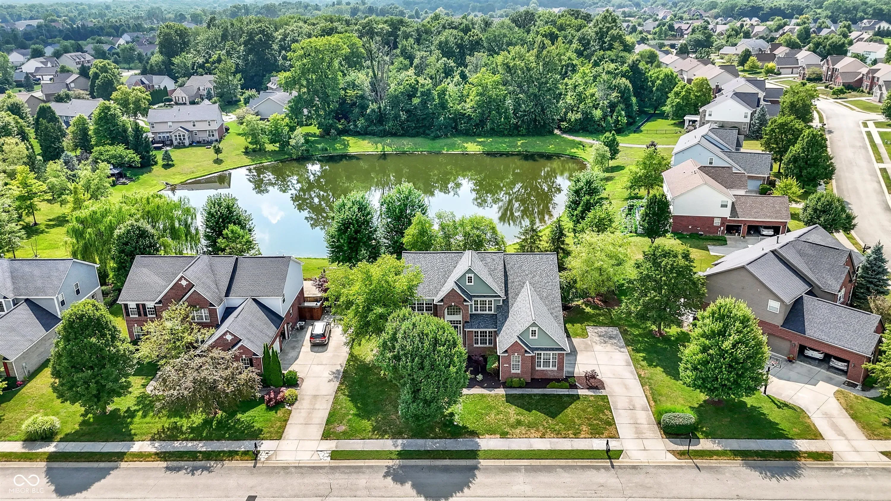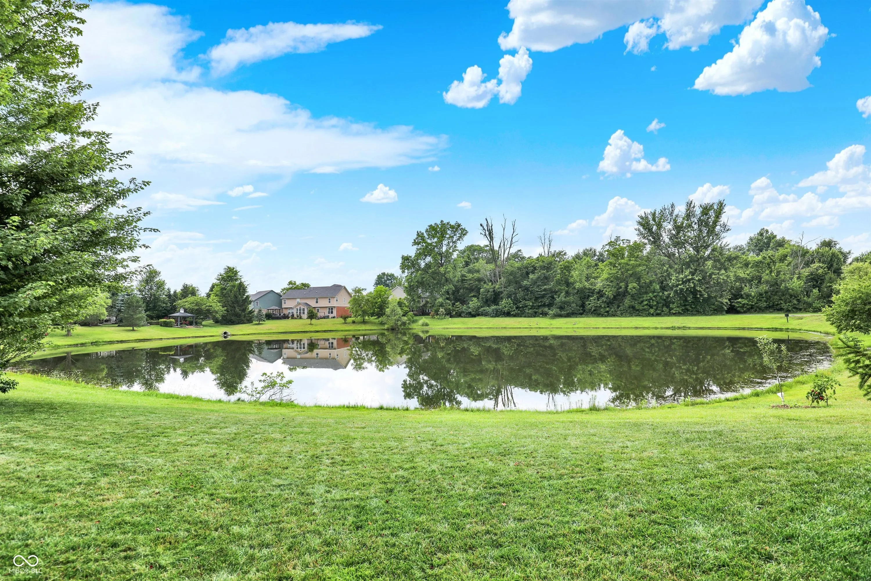 Immaculate and spacious 6-bedroom, 4.5-bath home in the highly sought-after Claybourne neighborhood of West Carmel, perfectly situated on a picturesque pond lot. This beautifully maintained residence offers an open-concept layout with refinished hardwood floors and major mechanical updates, including a new A/C, furnace, and water heater-all less than a year old. The stunning renovated kitchen is a chef’s dream, featuring elegant quartz countertops, tile backsplash, a large waterfall island, brand-new custom slow-close cabinetry with slide-out drawers and pantry shelving, reverse osmosis system, and newer stainless steel appliances-including an induction oven and wine cooler. Upstairs, you’ll find five spacious bedrooms and three full baths. The luxurious owner’s suite boasts vaulted ceilings and a completely remodeled en-suite bath. The finished lower level includes a sixth bedroom, full bath, generous recreation area, and is pre-plumbed for a wet bar-ideal for entertaining or multi-generational living. A wall of windows across the back of the home frames year-round sunset views of serene water and wooded landscape, creating a peaceful retreat just minutes from Carmel’s top schools, shopping, and dining.