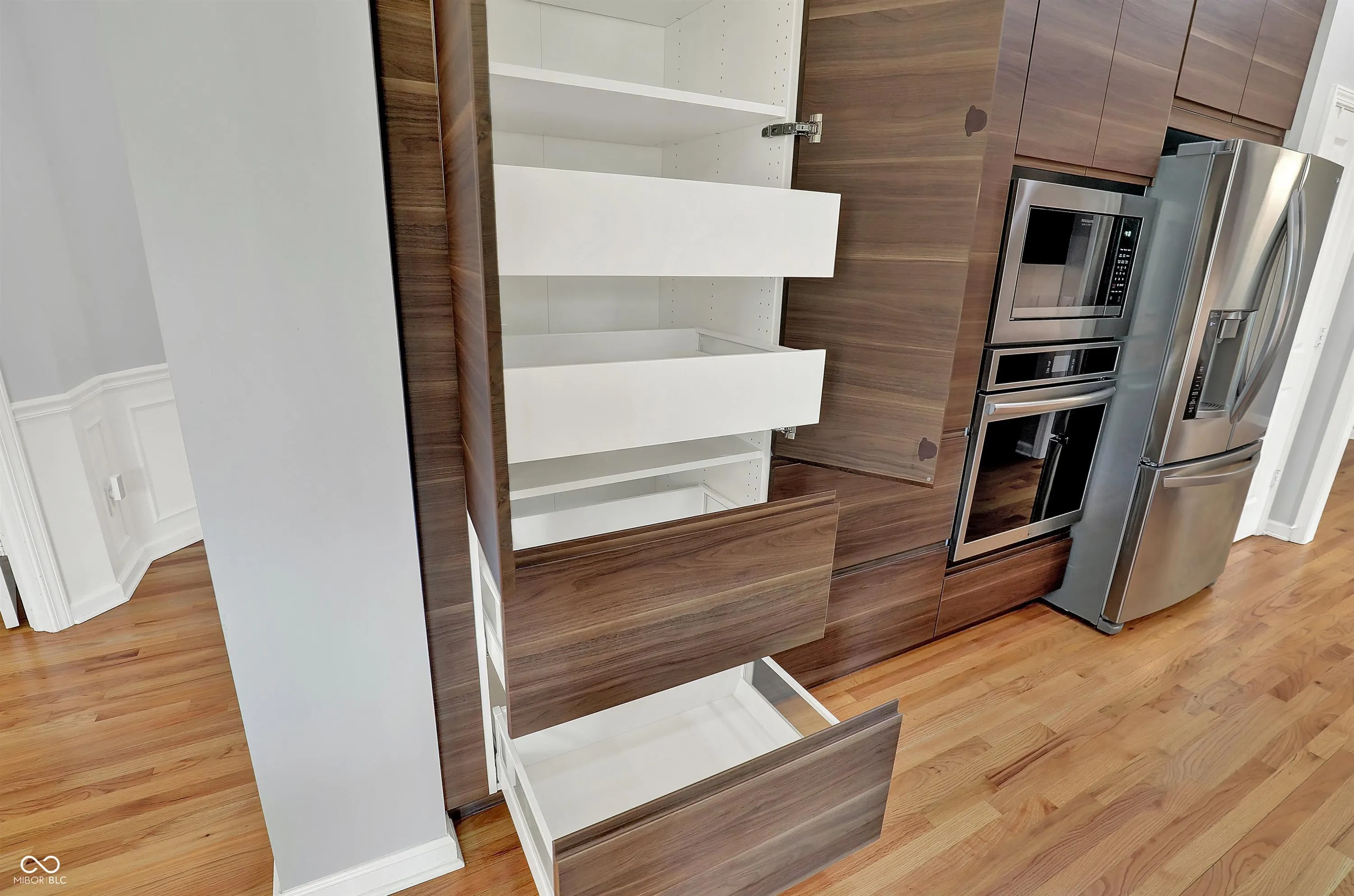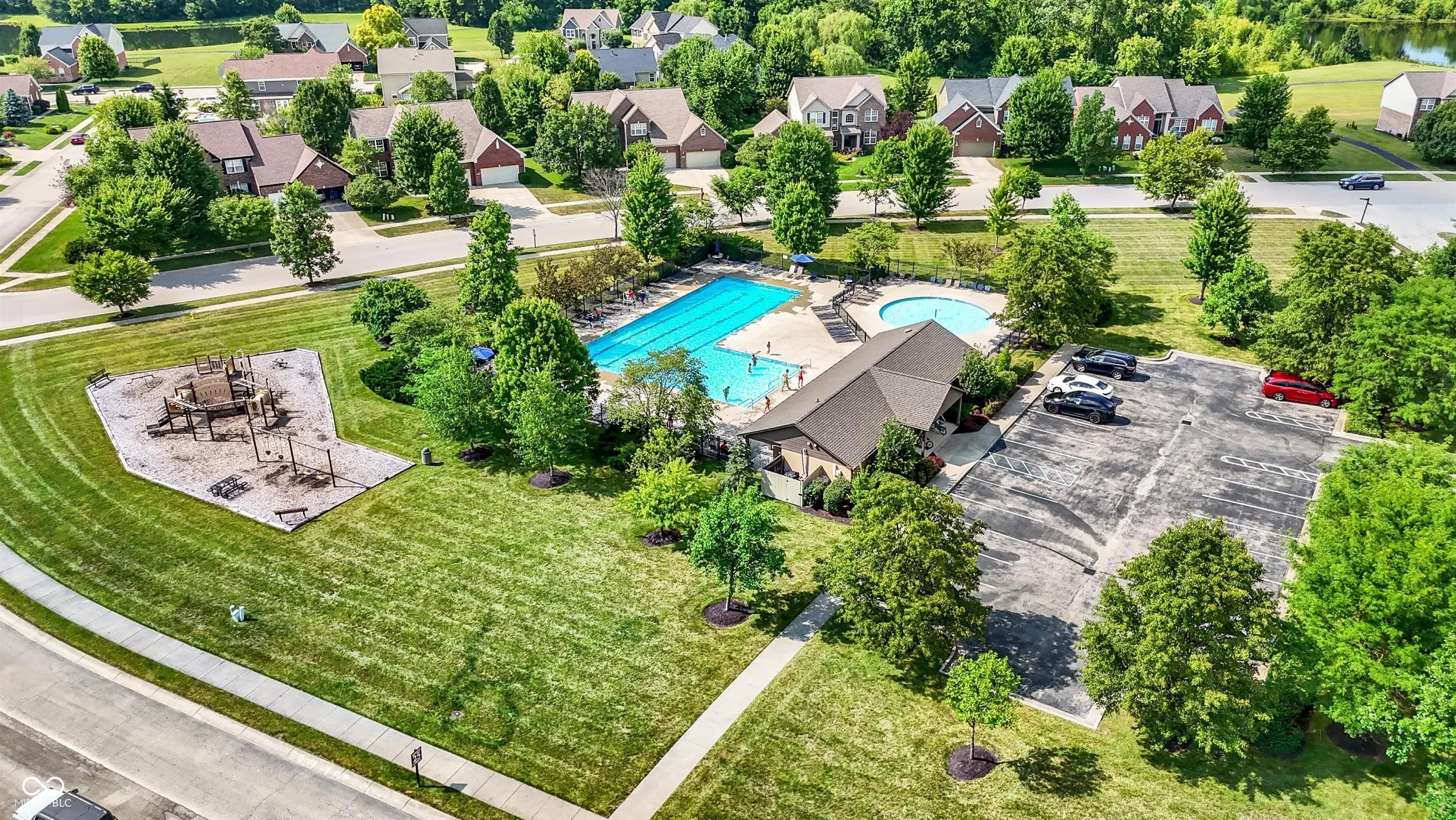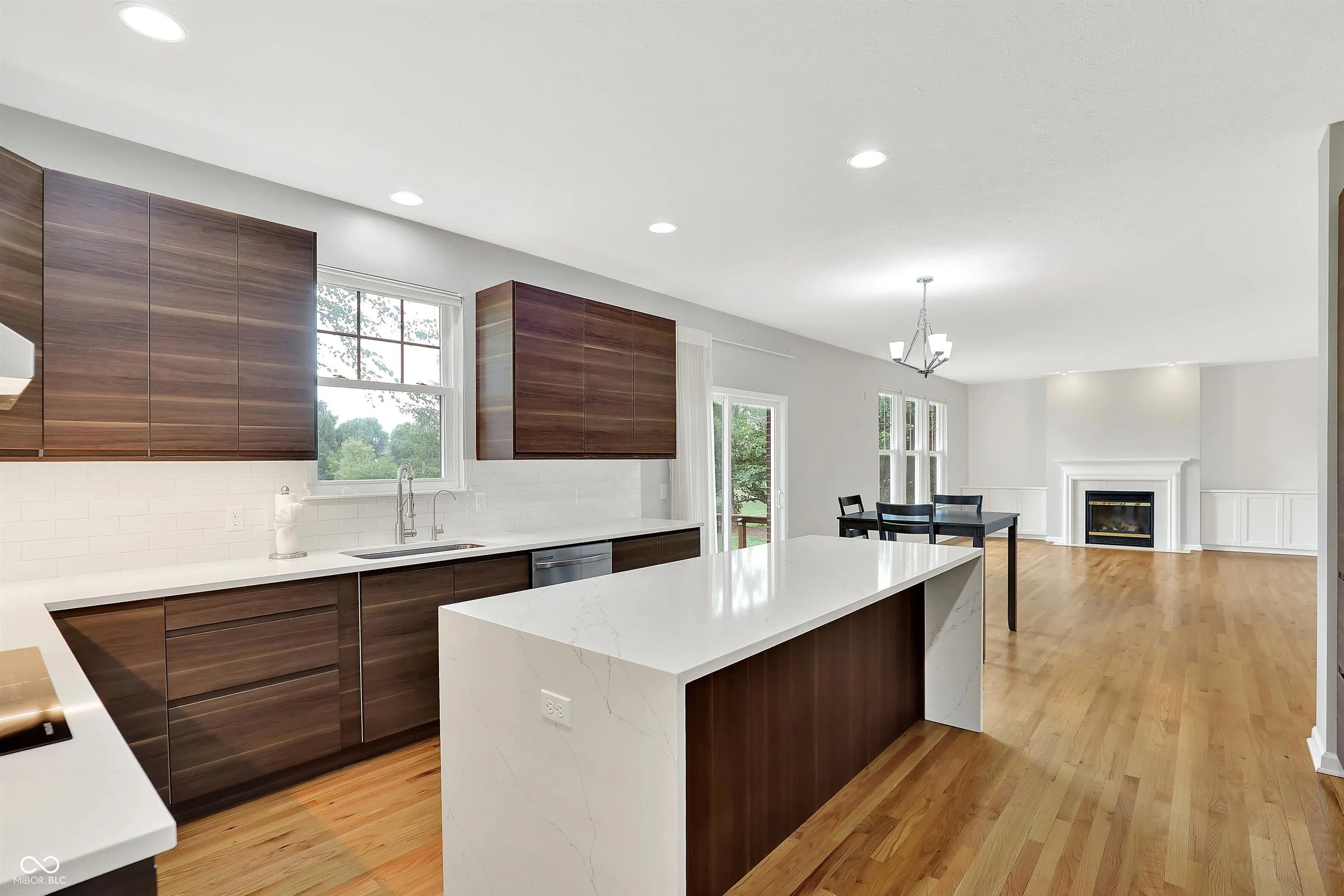 Immaculate and spacious 6-bedroom, 4.5-bath home in the highly sought-after Claybourne neighborhood of West Carmel, perfectly situated on a picturesque pond lot. This beautifully maintained residence offers an open-concept layout with refinished hardwood floors and major mechanical updates, including a new A/C, furnace, and water heater-all less than a year old. The stunning renovated kitchen is a chef’s dream, featuring elegant quartz countertops, tile backsplash, a large waterfall island, brand-new custom slow-close cabinetry with slide-out drawers and pantry shelving, reverse osmosis system, and newer stainless steel appliances-including an induction oven and wine cooler. Upstairs, you’ll find five spacious bedrooms and three full baths. The luxurious owner’s suite boasts vaulted ceilings and a completely remodeled en-suite bath. The finished lower level includes a sixth bedroom, full bath, generous recreation area, and is pre-plumbed for a wet bar-ideal for entertaining or multi-generational living. A wall of windows across the back of the home frames year-round sunset views of serene water and wooded landscape, creating a peaceful retreat just minutes from Carmel’s top schools, shopping, and dining.