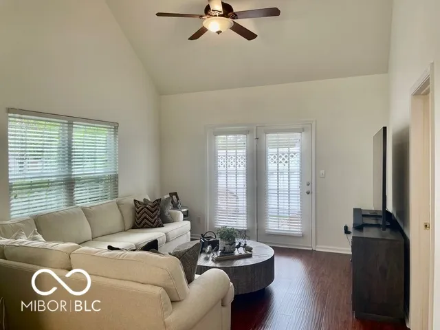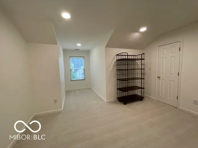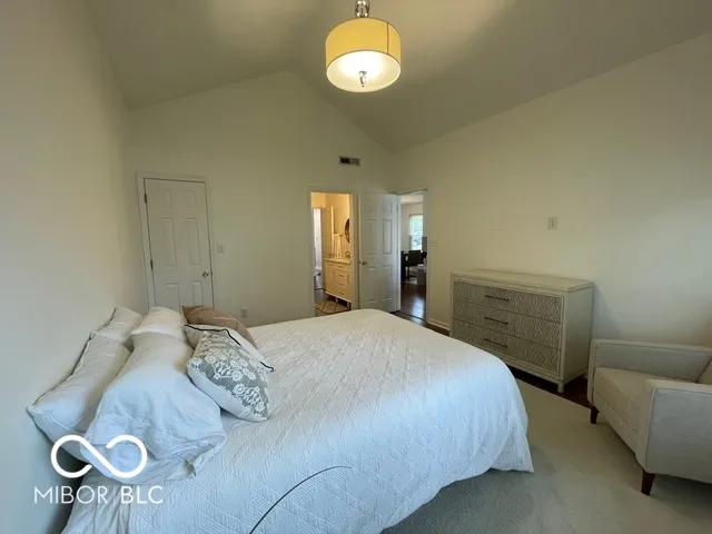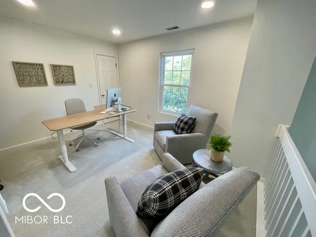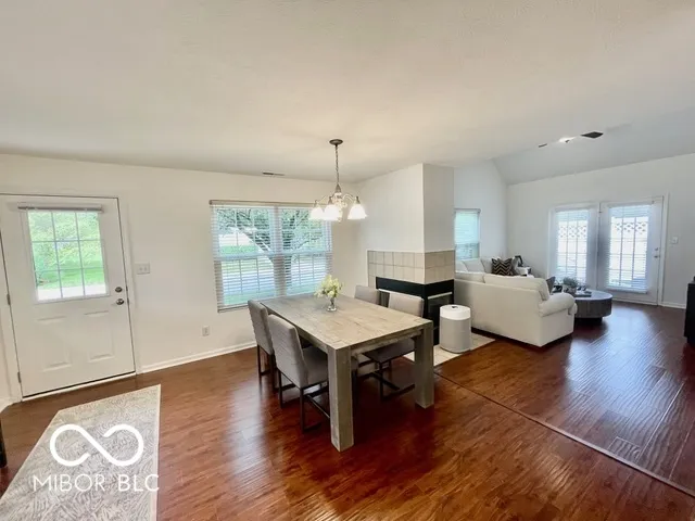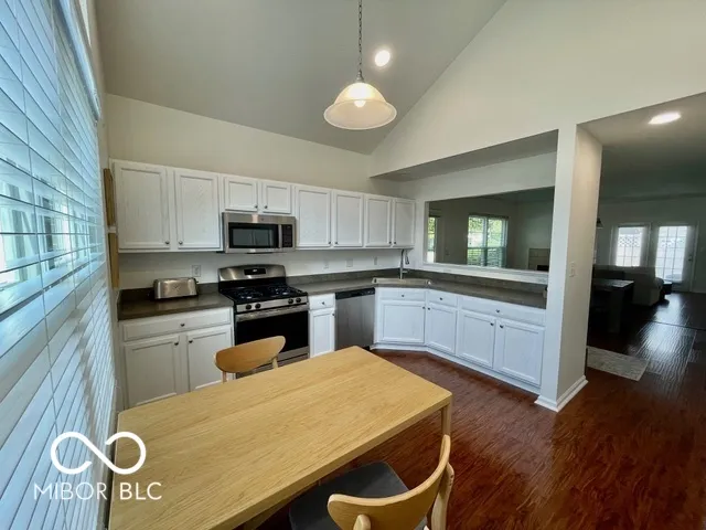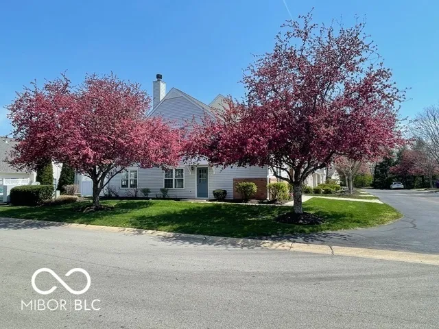 Welcome to this beautiful home with natural light at every turn! Cathedral ceilings in the kitchen and main-floor owner’s suite, plus a vaulted ceiling in the family room create an airy, open feel. The main floor owner’s suite includes a full bath and a walk-in closet with a newly installed custom organizer. Fresh, neutral white paint throughout – every wall, ceiling, and trim, even the garage in 2023! New recessed can lighting in the kitchen and upstairs bedrooms. Brand new, high-end neutral carpet upstairs in 2023. (Invoices & Pics of updates in Supplements) The third bedroom is currently open as a loft/office overlooking the family room. Seller is willing to enclose it into a private bedroom before closing if desired. The kitchen features a new large sink and faucet, plus a lower cabinet converted into a pull-out trash can. Additional updates include new smoke detectors, a tankless water heater, and all new windows. This end unit offers abundant natural light with extra windows and peaceful views of trees and green space from your private patio! Location is ideal – just minutes to downtown Fishers and with quick access to the highway. A truly happy and comfortable place to call home! **note tax exemption has been filled but not yet attached so tax amt. is higher until attached.