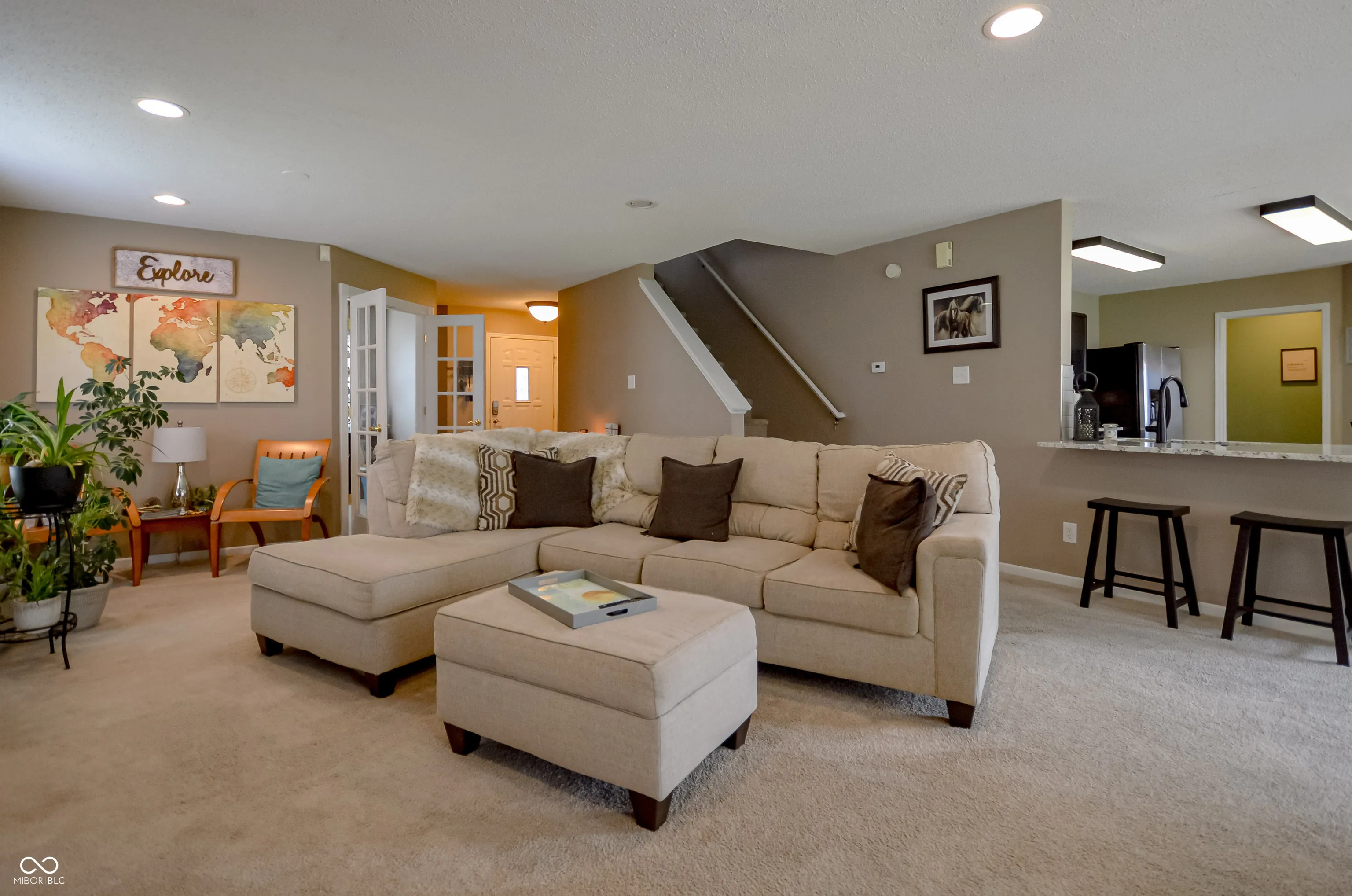NICE!!!! Check out this fantastic 3 bedroom, 2.5 bath home situated on a corner lot in Fishers! On the main level, a welcoming living room greets you, featuring a beautiful fireplace that is a natural focal point. The well appointed kitchen is both stylish and functional, featuring gorgeous granite countertops that provide ample workspace and a touch of elegance. Plentiful cabinets offer abundant storage, while the backsplash adds style and visual interest. A pantry area with shelving off the kitchen adds additional storage. Also on the main level, you’ll enjoy and half bath as well as a cozy den featuring french doors. This is the perfect space for your home office. Upstairs you’ll find the spacious primary bedroom and bath as well as two additional bedrooms. You’ll also find a second story loft area that provides additional casual living space and a convenient upstairs laundry room! Built in 2001, this home also boasts a 2 car garage and a fully fenced backyard, perfect for outdoor activities, and relaxation.