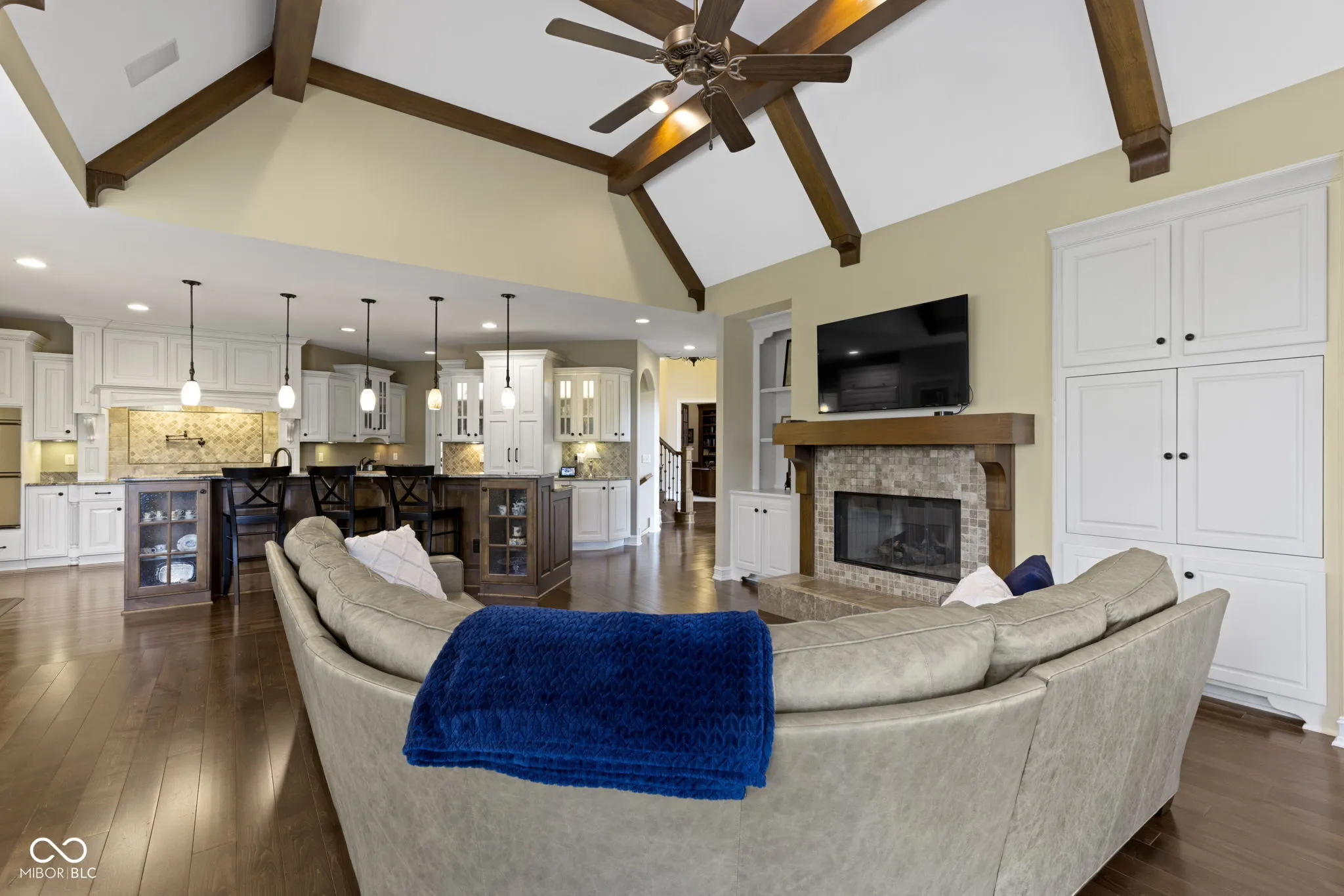 Stunning Windsor Grove Custom Home. Beautifully appointed and well cared for. The grand entry opens to an expansive great room featuring an impressive fireplace and soaring floor-to-ceiling windows that frame serene pond views. Just off the foyer, you’ll find a richly paneled office with custom millwork and built-in cabinetry, as well as a generously sized dining room-perfect for hosting holidays and special occasions. The cozy hearth room, with fireplace flows seamlessly into the chef’s dream kitchen. Here, you’ll find a large center island, large dining area, and a sizable walk-in pantry. In warmer months, the screened-in sunporch will become your favorite space for relaxing or dining al fresco, offering peaceful views of the pond. The main-level primary suite is a private and spacious retreat, featuring a spa-like bath and custom his-and-her walk-in closets. Two laundry areas include: a spacious main-level laundry room with additional desk area ideal for hobbies or homework, and an upstairs laundry closet ready for a stackable or all-in-one unit. 4+ car heated garage. Oversized mudroom with abundant built-in storage, perfect for busy households. Upstairs are 4 generously sized bedrooms with walk in closets, three full baths, and a desk nook with built-ins-perfect for study. The lower level features a large family room with brick fireplace, a pub-style bar with dishwasher and full-sized refrigerator, space for a pool table, and a separate library/game area. There’s also a dedicated office or workout room and a large unfinished space for storage. And to boot there is a spacious ensuite 6th bedroom. With a private access staircase from the garage to this level it makes this setup perfect for visiting guests, a caretaker, or a potential in-law suite. Beautiful backyard with a paver patio, built-in fire pit, and hot tub. See attachments for full list of updates/features. And dont miss the 360 tour link here to virtually walk through this beautiful home now!