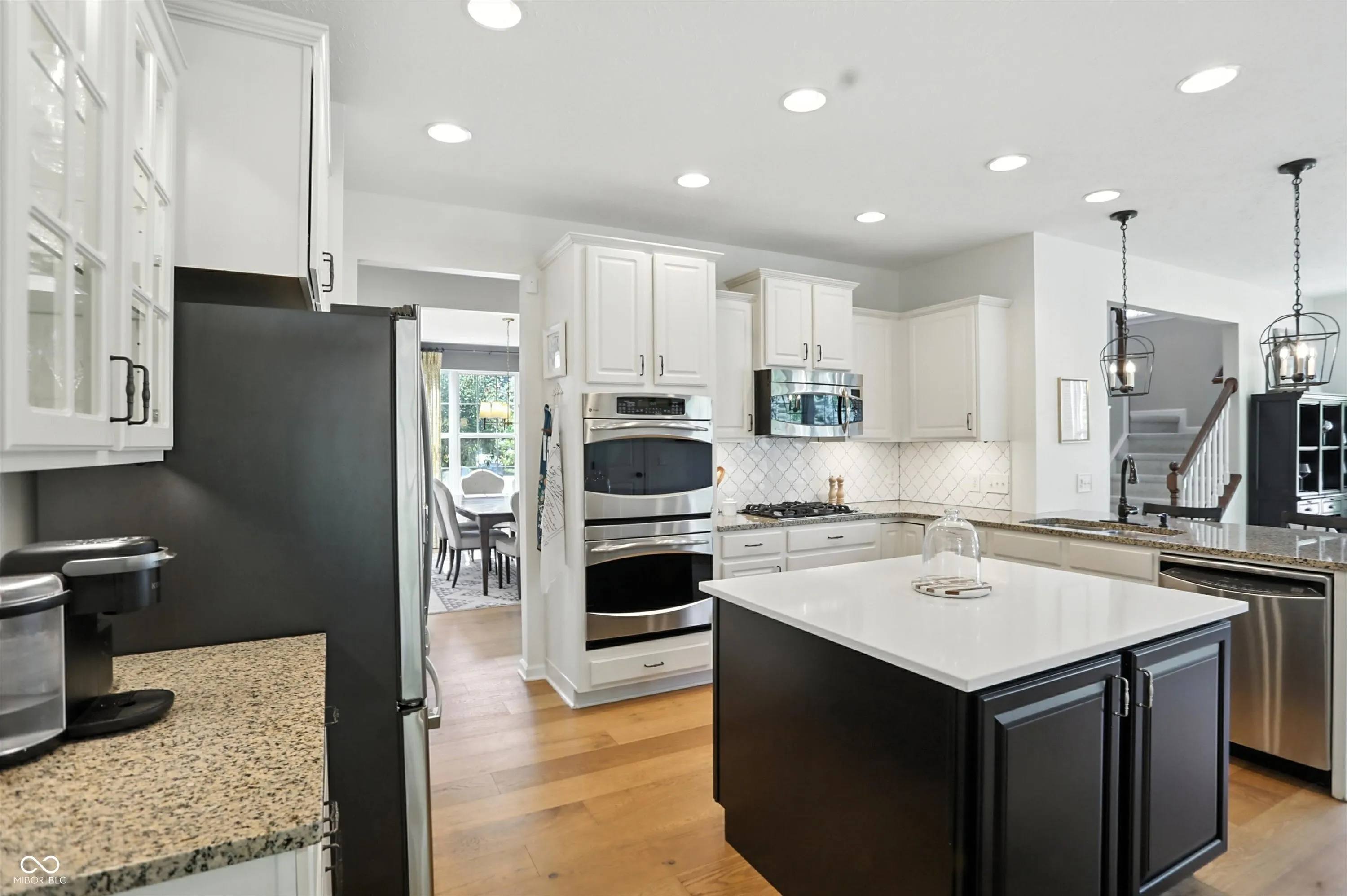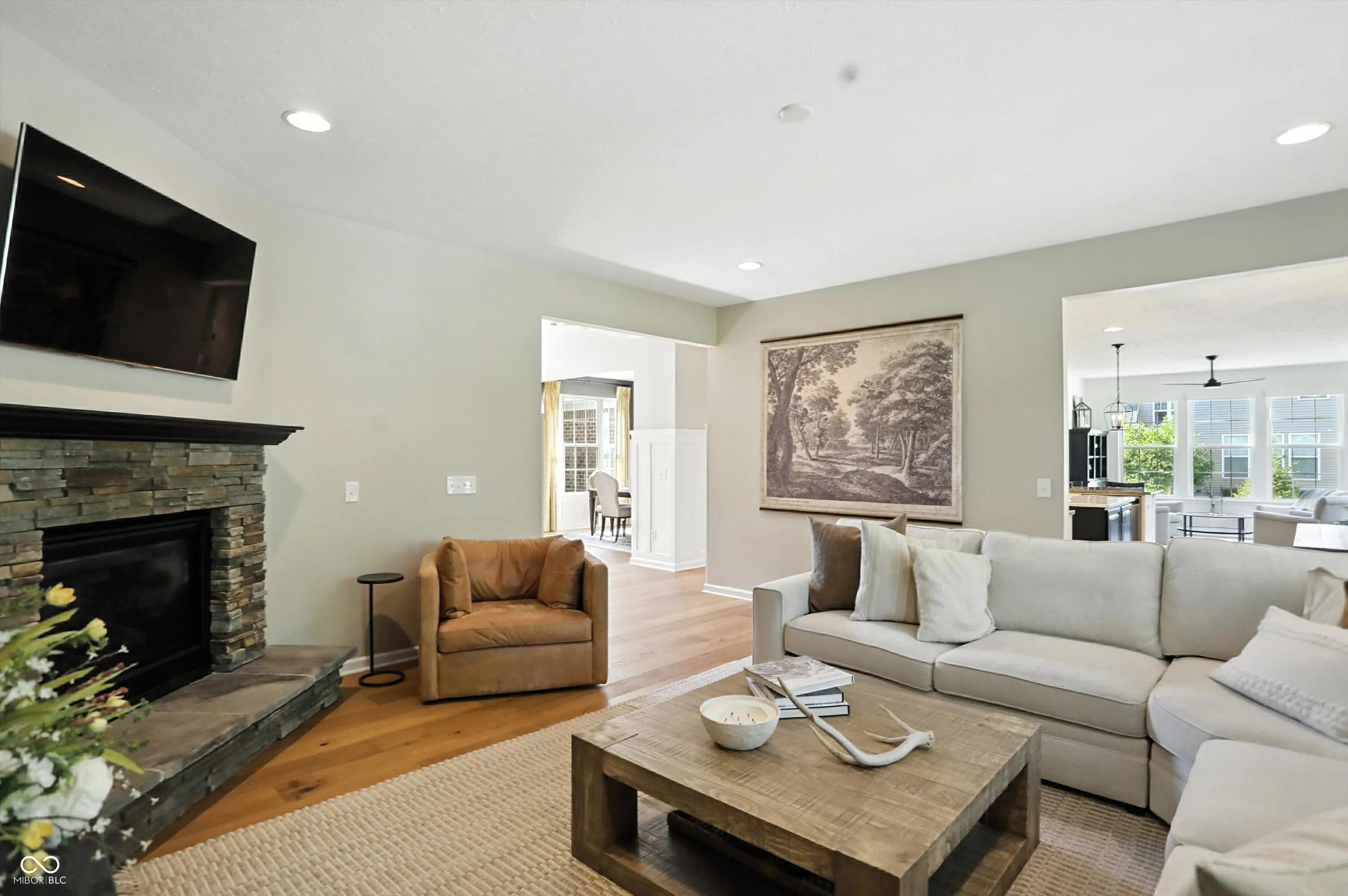 Welcome to this impeccably maintained one-owner home, now transformed into a stunning retreat on a spacious corner lot in Tanglewood. The property offers exceptional curb appeal as well as a private, beautifully landscaped backyard oasis featuring a decorative concrete patio, hot tub, professional landscaping, irrigation system, and screened areas for enhanced relaxation and privacy. Inside, guests are greeted by a grand two-story foyer, bordered by a distinguished study and an large formal dining room. The inviting great room, complete with a fireplace and built-in shelving, creates a comfortable setting ideal for cooler evenings or holiday entertainment. Modern hardwood floors extend throughout the main level, contributing to the home’s refined aesthetic. The fully renovated kitchen is equipped with premium stainless-steel appliances, a double oven, gas cooktop, and a spacious center island-ideal for culinary pursuits and social gatherings. Adjacent to the kitchen, a bright sunroom provides a serene environment for morning coffee, quiet reading, or entertaining friends. Upstairs, the primary suite features a tray ceiling and a luxurious en suite bath. Three additional bedrooms offer ample closet space and lots of natural light. New carpeting was installed on the upper level in 2024. The finished basement is designed for entertainment, boasting a wet bar, built-ins, and versatile space for movies or gaming. A fifth bedroom and a full bathroom are perfectly suited for teens or extended family, while an extra room may serve as a bedroom, workout area, or game room. Additional storage is available within the basement’s unfinished spaces. Recent updates include a new water heater (2024) and HVAC system (2025). This prime Fishers location provides convenient access to shopping, dining, medical facilities, The Yard, the new Fishers event center, Hamilton Town Center, and downtown attractions including the Amp.