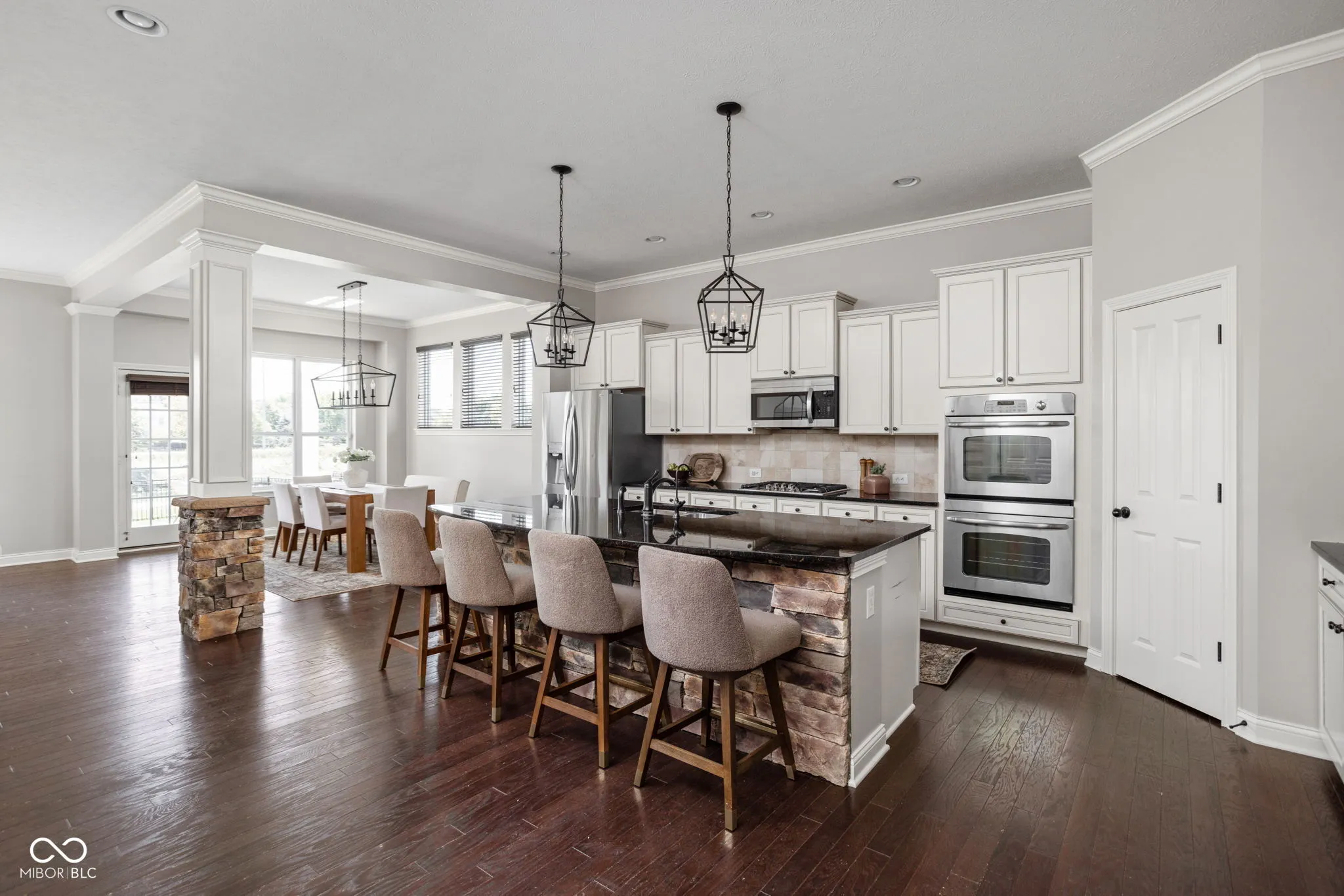 Welcome to this so-very-special 5 bedroom, 4 bath home in Zionsville’s popular Rock Bridge neighborhood! With nearly 5,000 sq ft of beautifully designed living space, this home pairs practical luxury w/functional family living. Soaring 10-foot ceilings create a sense of elegance the moment you step inside. The open main level is anchored by a gourmet kitchen and spacious great room, while a private MAIN FLOOR secondary suite (bed & full bath) offers flexibility for guests, nannies, 2nd private office or multigenerational living. Upstairs, the serene primary suite features a spacious & spa-inspired bath plus upper-level laundry, adding ease to everyday life. The finished basement is a true retreat with 9-foot ceilings, full bath, abundance of built-in shelving, ample storage, play area & theater system – perfect for family movie nights or entertaining friends. A covered porch and patio overlook the fully-fenced backyard & water views, creating a private oasis for play and relaxation. Amenities are literal steps away, including a pool, playground, basketball court & walking trails, all within one of Indiana’s most sought – after school districts. Just minutes from charming downtown Zionsville and easy I-65 access, this home is the perfect blend of luxury, lifestyle, and location. See you soon!