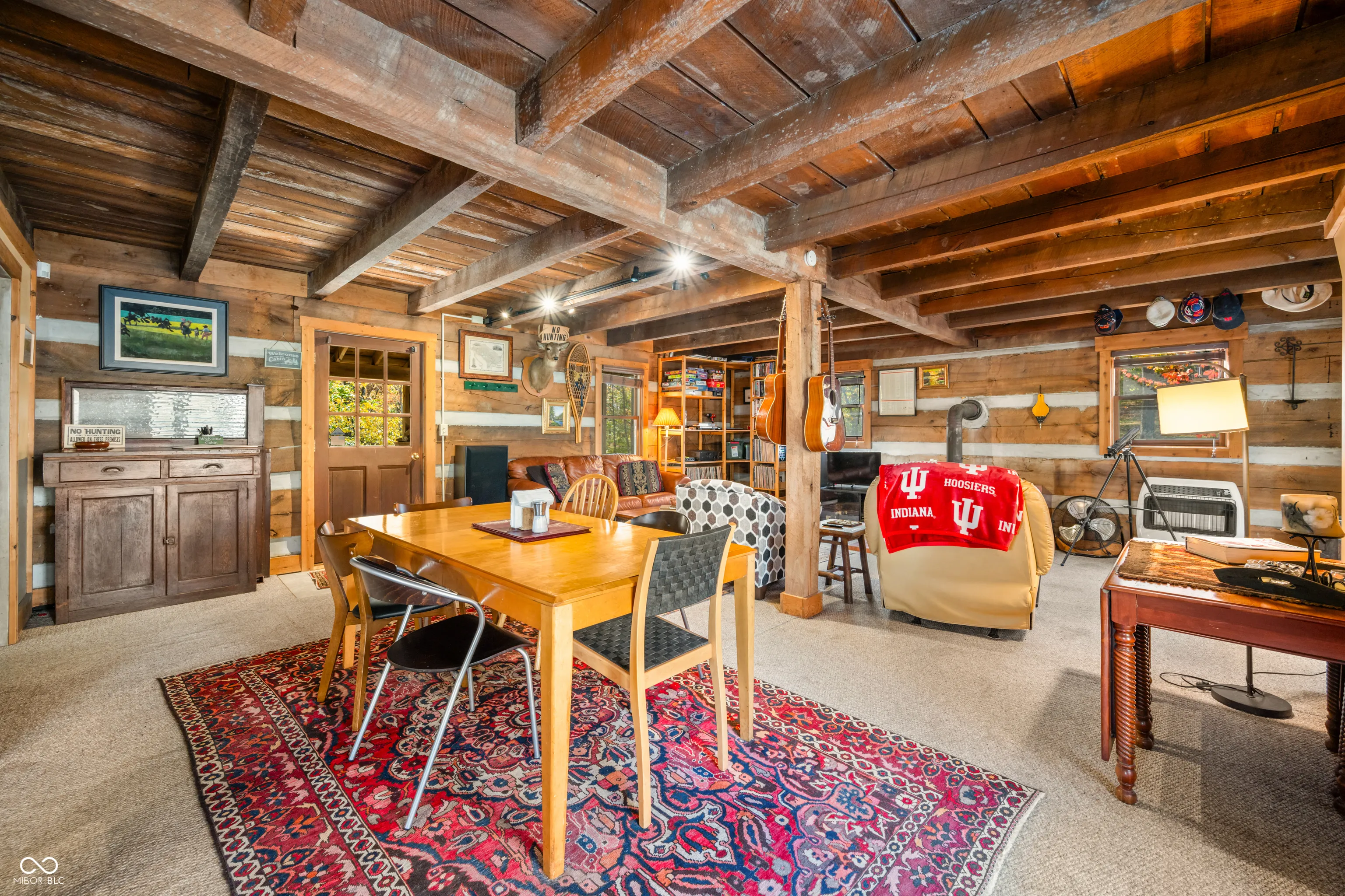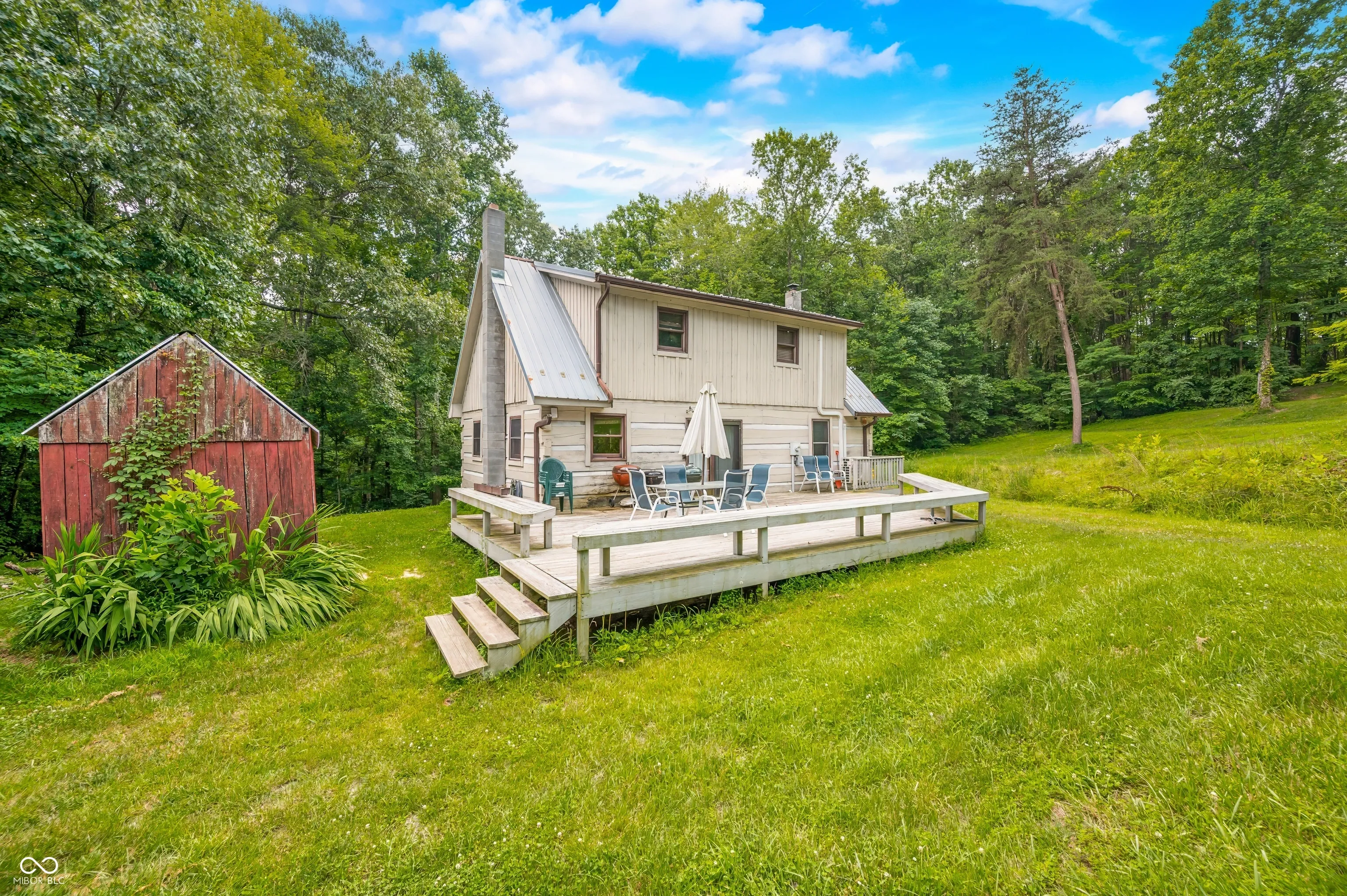 Welcome to Cottonwood Cabin Vacation Rental! Highly functional, utilitarian rustic cabin Amish-built, from a Helmsburg Sawmill design and lumber situated on 16 rolling acres. County approved Short Term Vacation Rental for [the past] 10 years, the current owner has had this property since 2000 and made it a unique, and comfortable escape. It’s ready for your inspired continuation of its journey. Located on a corner lot with frontage on two different roads, the plot allows for a separate drive and development site on gorgeous cleared back acreage if desired. Large two story 30×40 pole barn and five amish style out buildings – chicken coop, manger, outhouse, canning shed plus a back structure. A small pond and a couple of sites available for a much larger pond. Property has not been timbered in 25+ years. The wood stove, back deck and killer front porch are just a few reasons to fall in love with this Brown County Log Cabin.